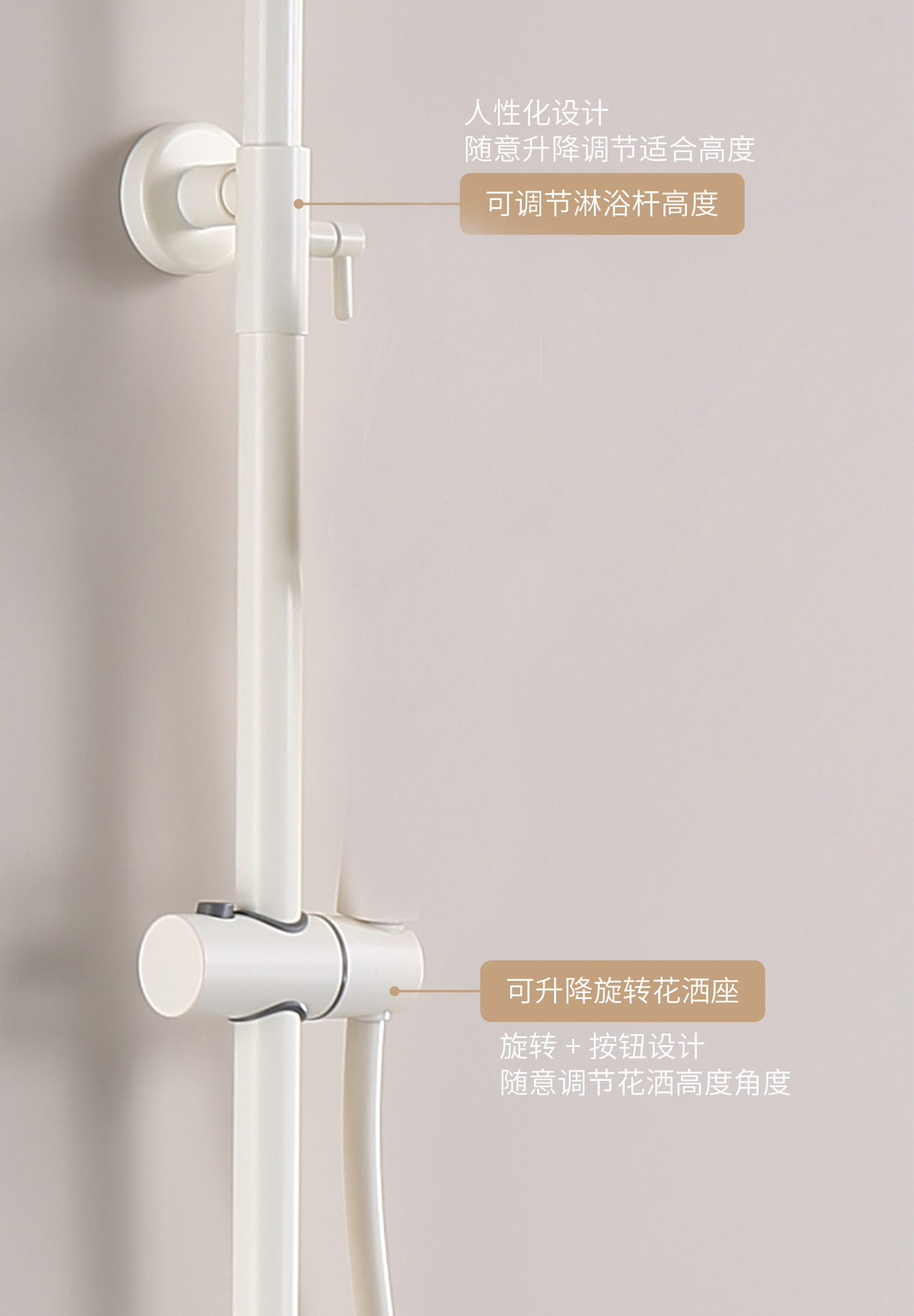 大牌同款奶油风白色儿童淋浴花洒套装增压无顶喷家用肩喷背喷沐浴