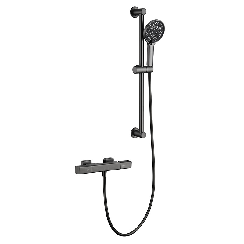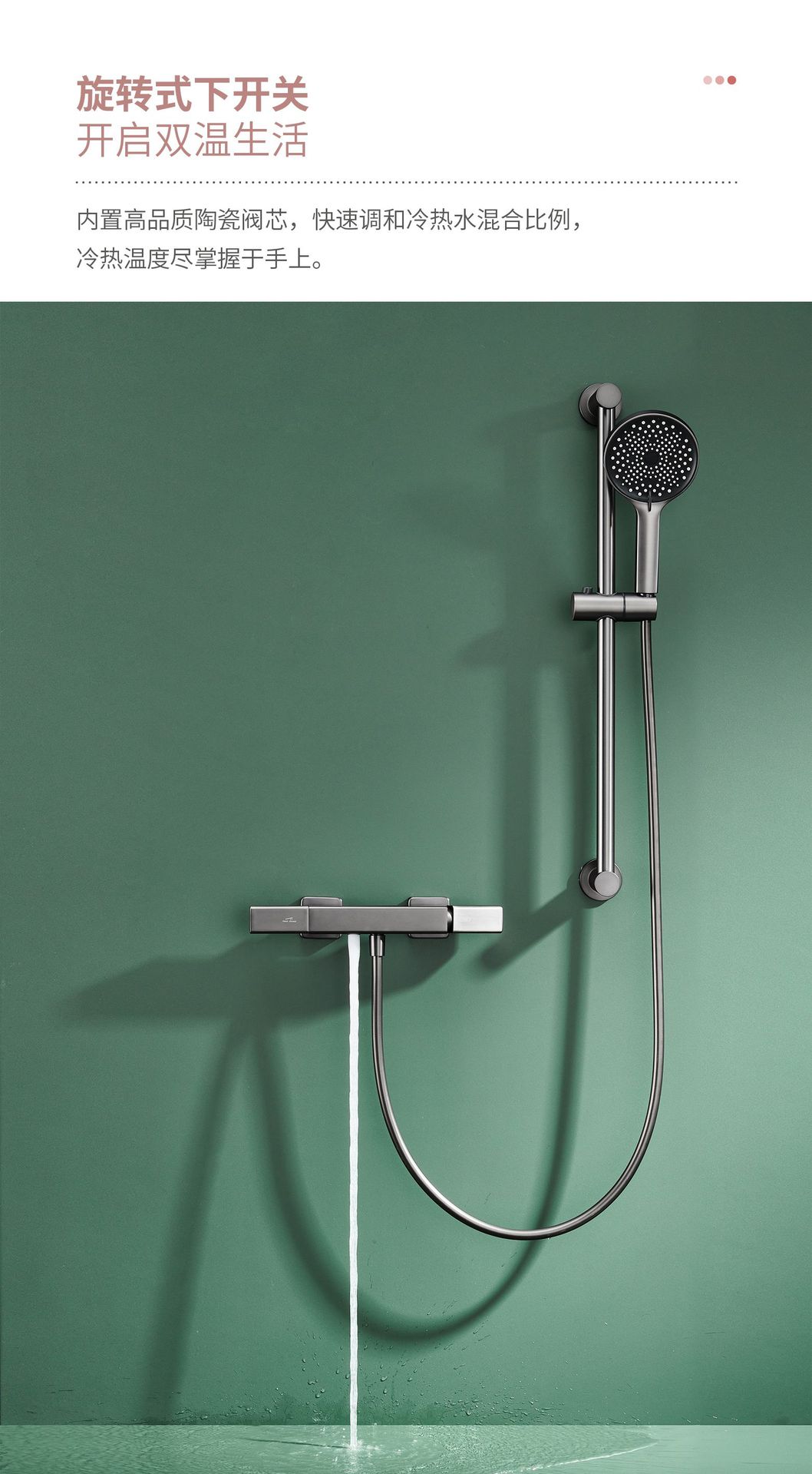 德国枪灰色增压花洒套装浴室全铜冷热水升降沐浴洗澡拉丝金大花洒