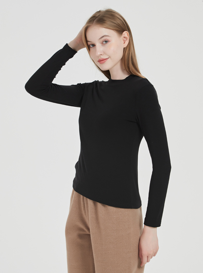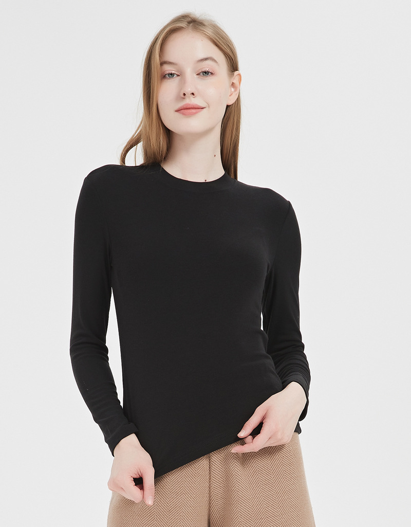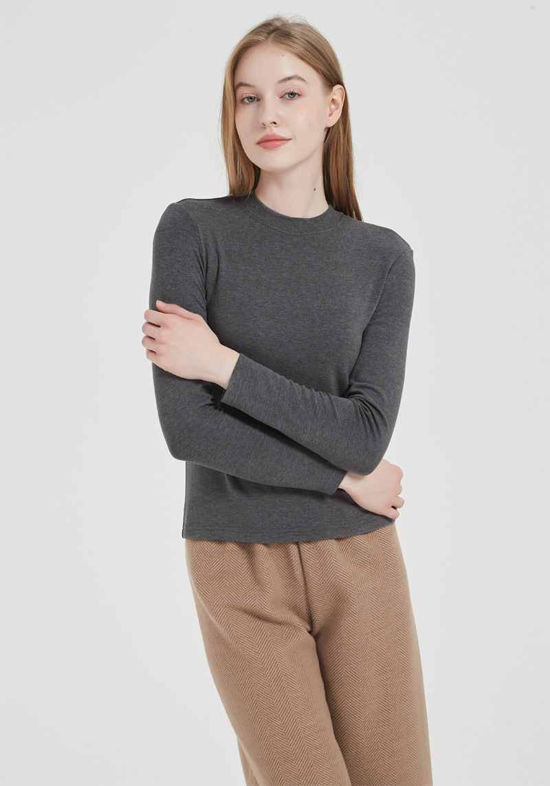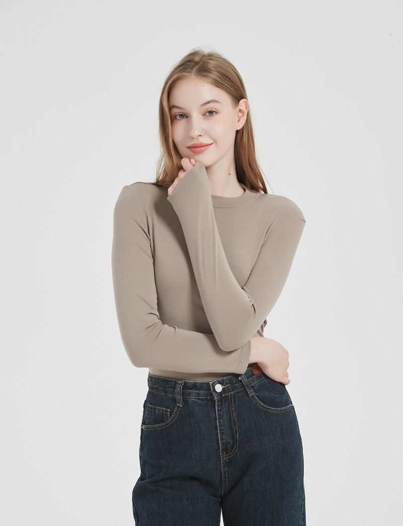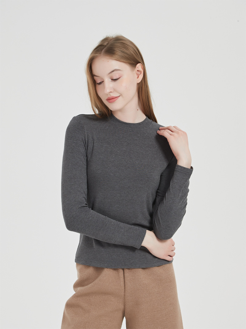 Maillard 하이 엔드 긴팔 티셔츠 여성용 크루넥 이너웨어 여성용 가을과 겨울 하프 하이 칼라 모조 캐시미어 웜베이스 셔츠 여성스토어 가기