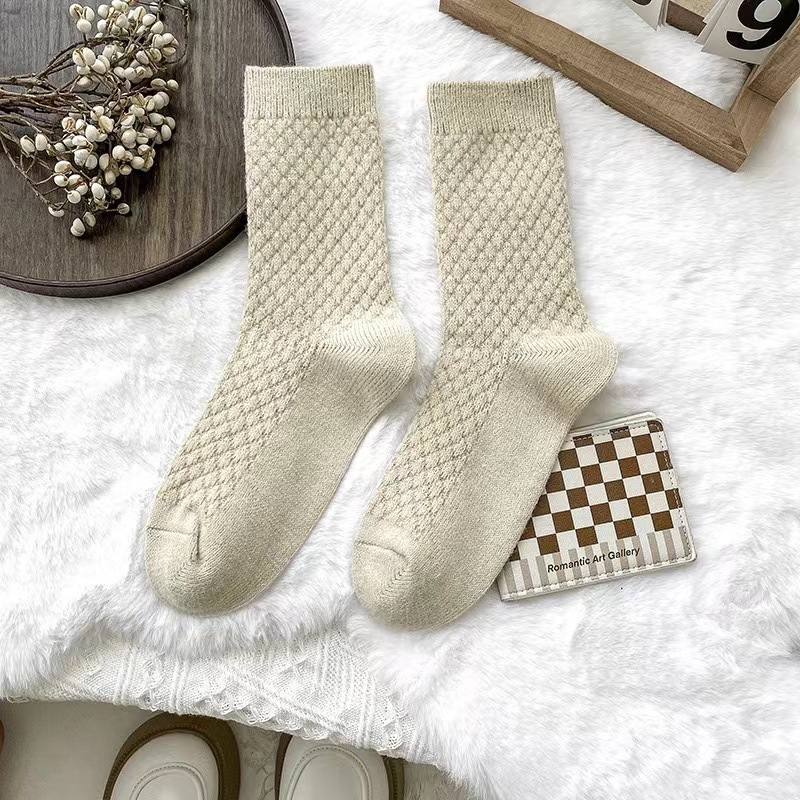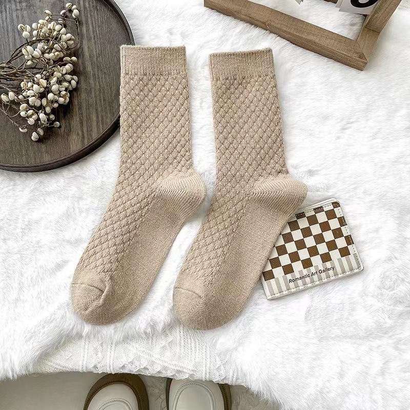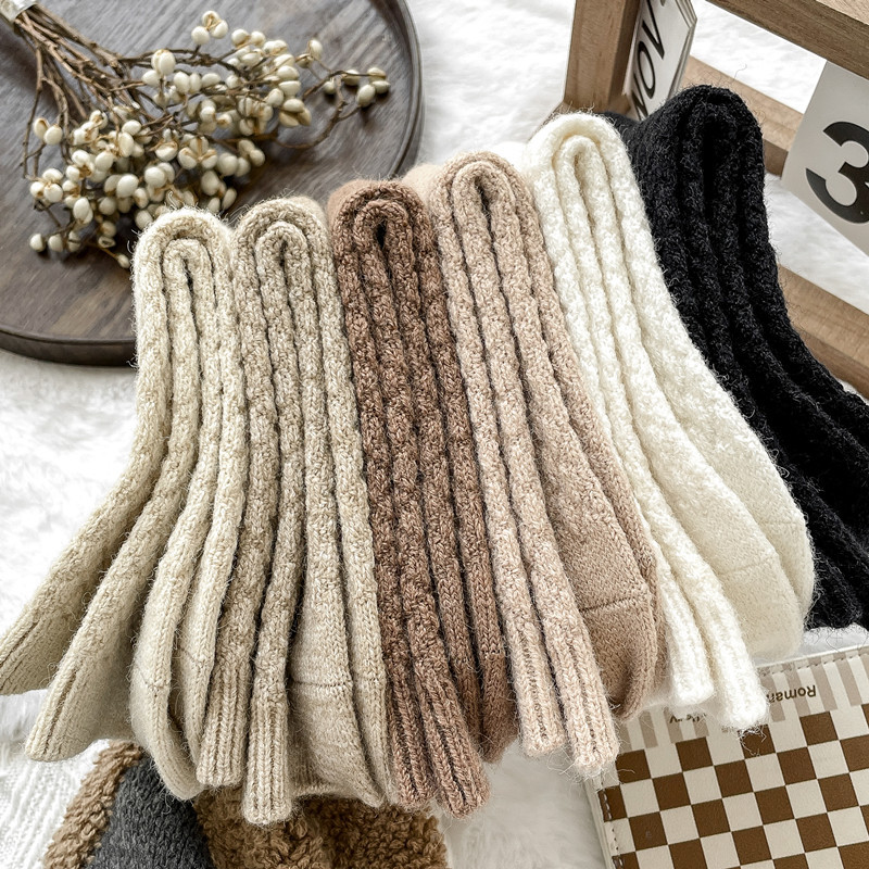 양말 여자의 가을과 겨울 두꺼운 따뜻한 양말 단색 간단한 가정 바닥 양말 긴 양말의 모든 일치 다크 브라운 스타일스토어 가기