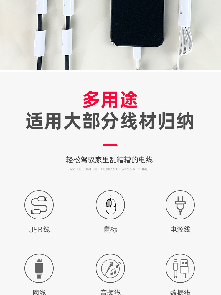免打孔理线器墙面贴数据线电线固定器自粘线卡子卡扣网线走线神器