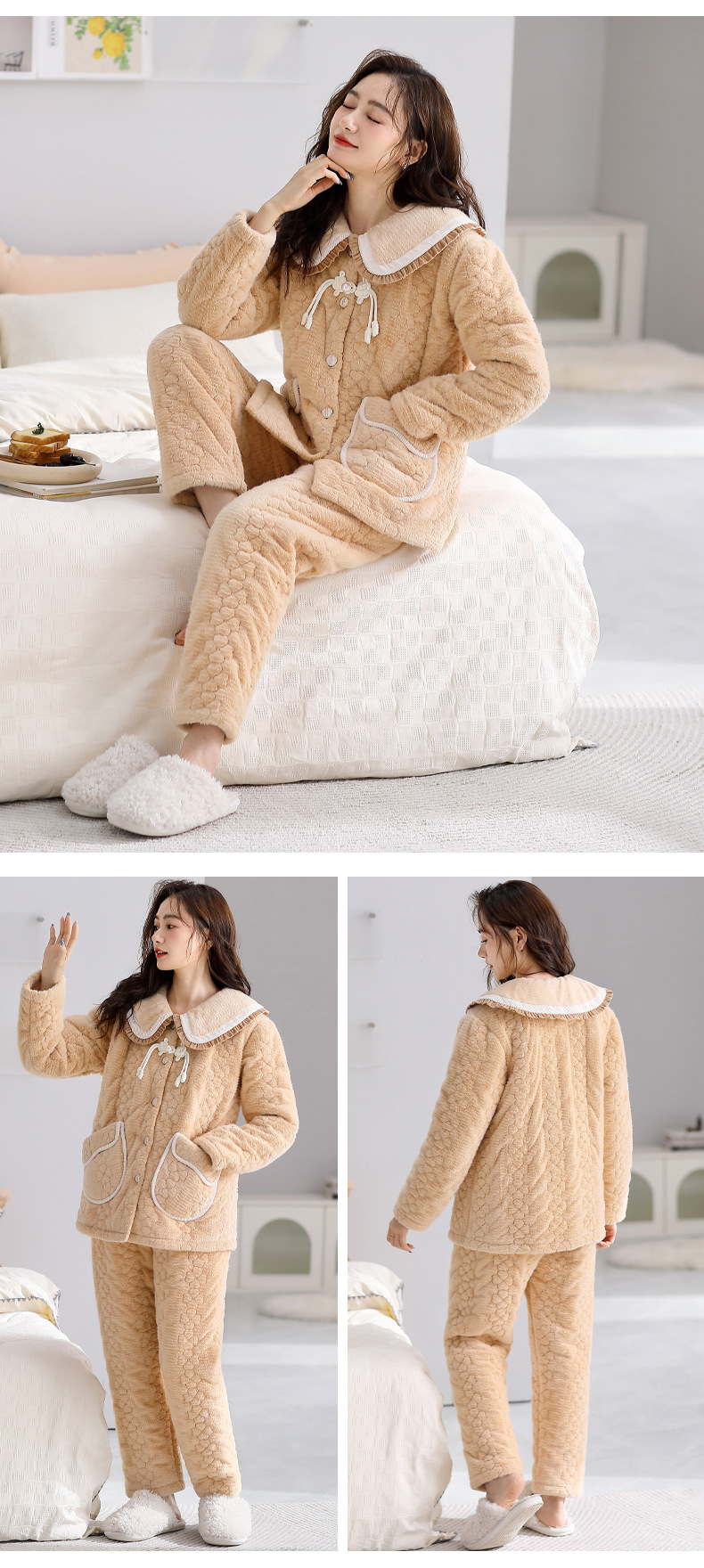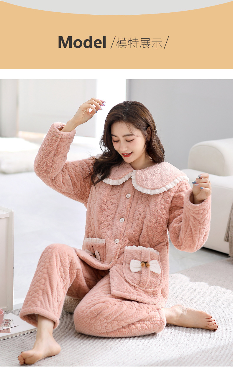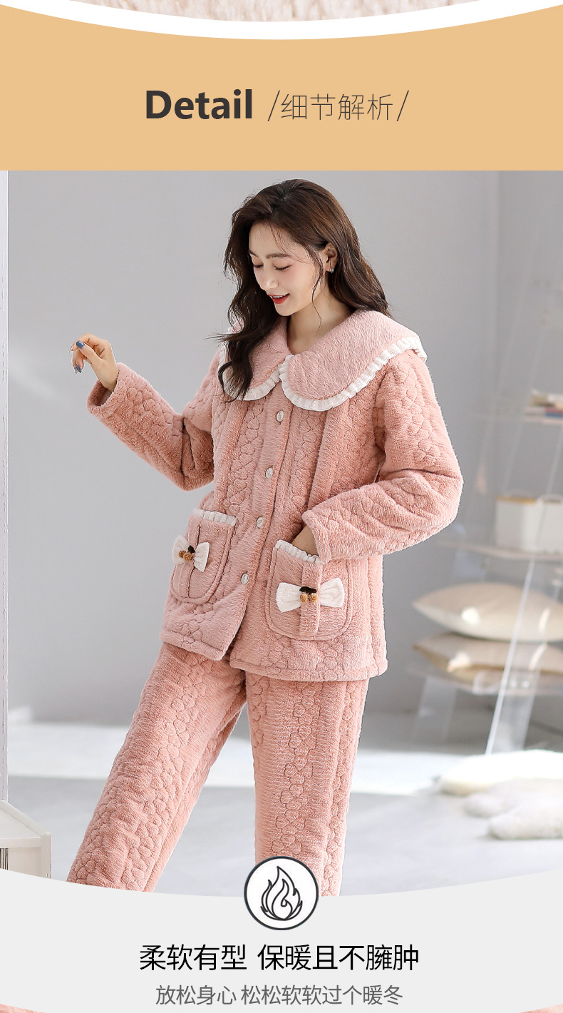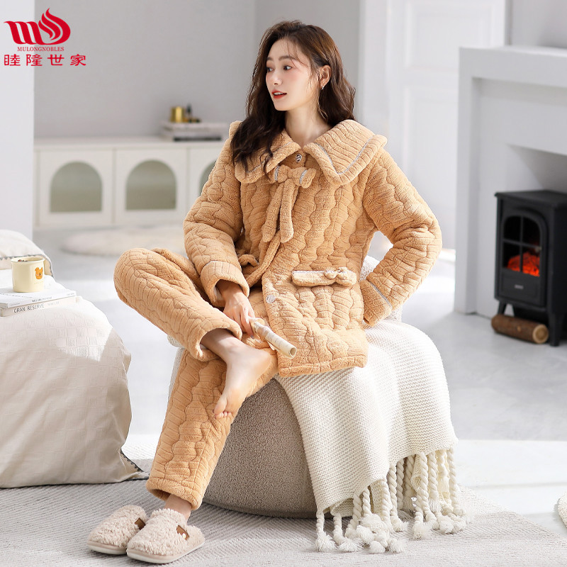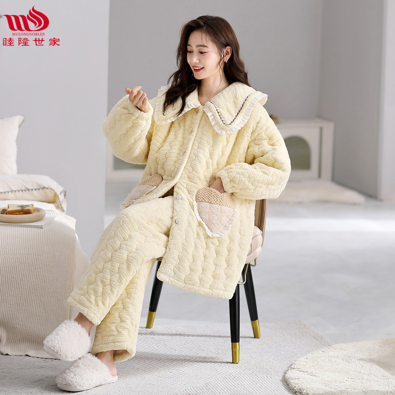 Mulong 귀족 가족 잠옷 여자의 겨울 3 층 두꺼운 기모 산호 양털 누비 이불 가을과 겨울 느슨한 플러스 사이즈 가정 옷스토어 가기