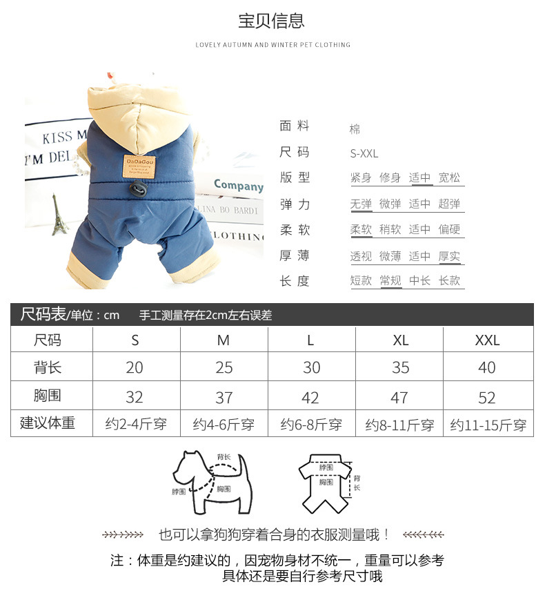 개 옷 가을과 겨울 옷 두꺼운 한국 네 발 면 패딩 옷 견인 패션 따뜻한 작은 개 테디 애완 동물 5437스토어 가기
