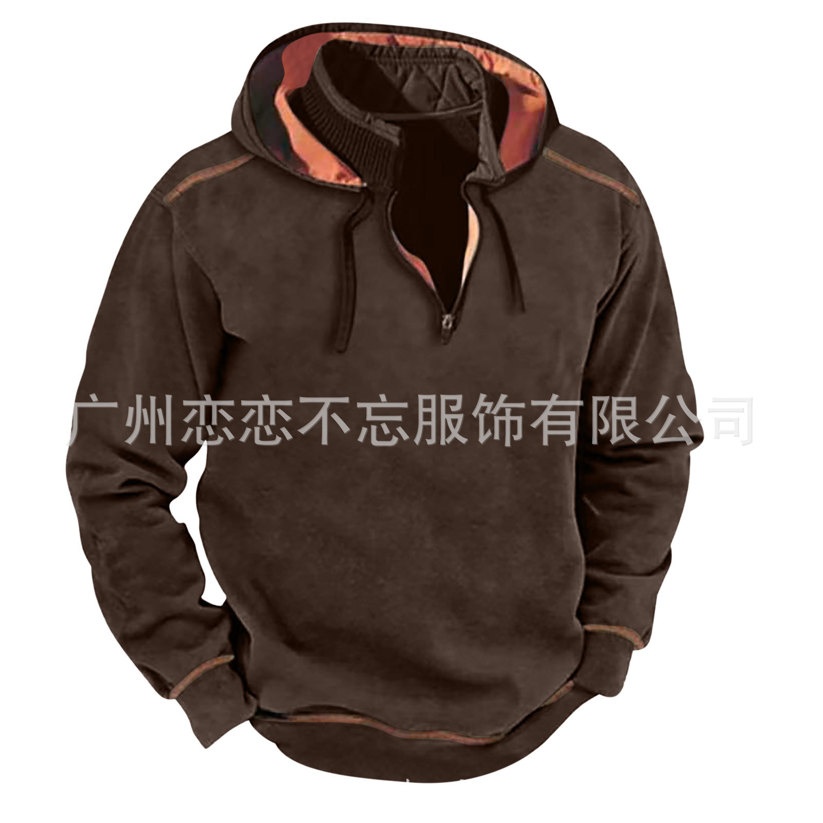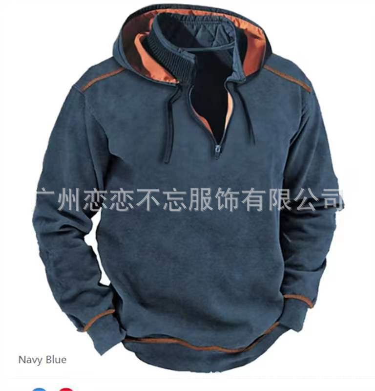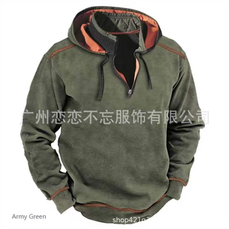 아마존 가을과 겨울 새로운 전면 중간 지퍼 스탠드 칼라 긴 소매 대비 색상 폭발 남성 스웨터 스트리트 패션 남성 후드
