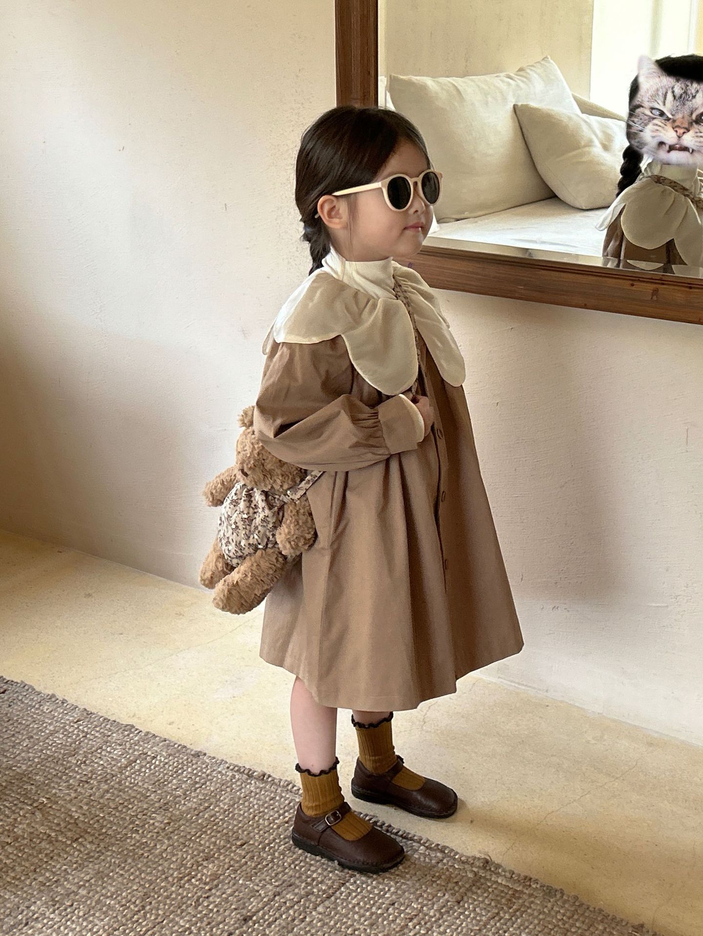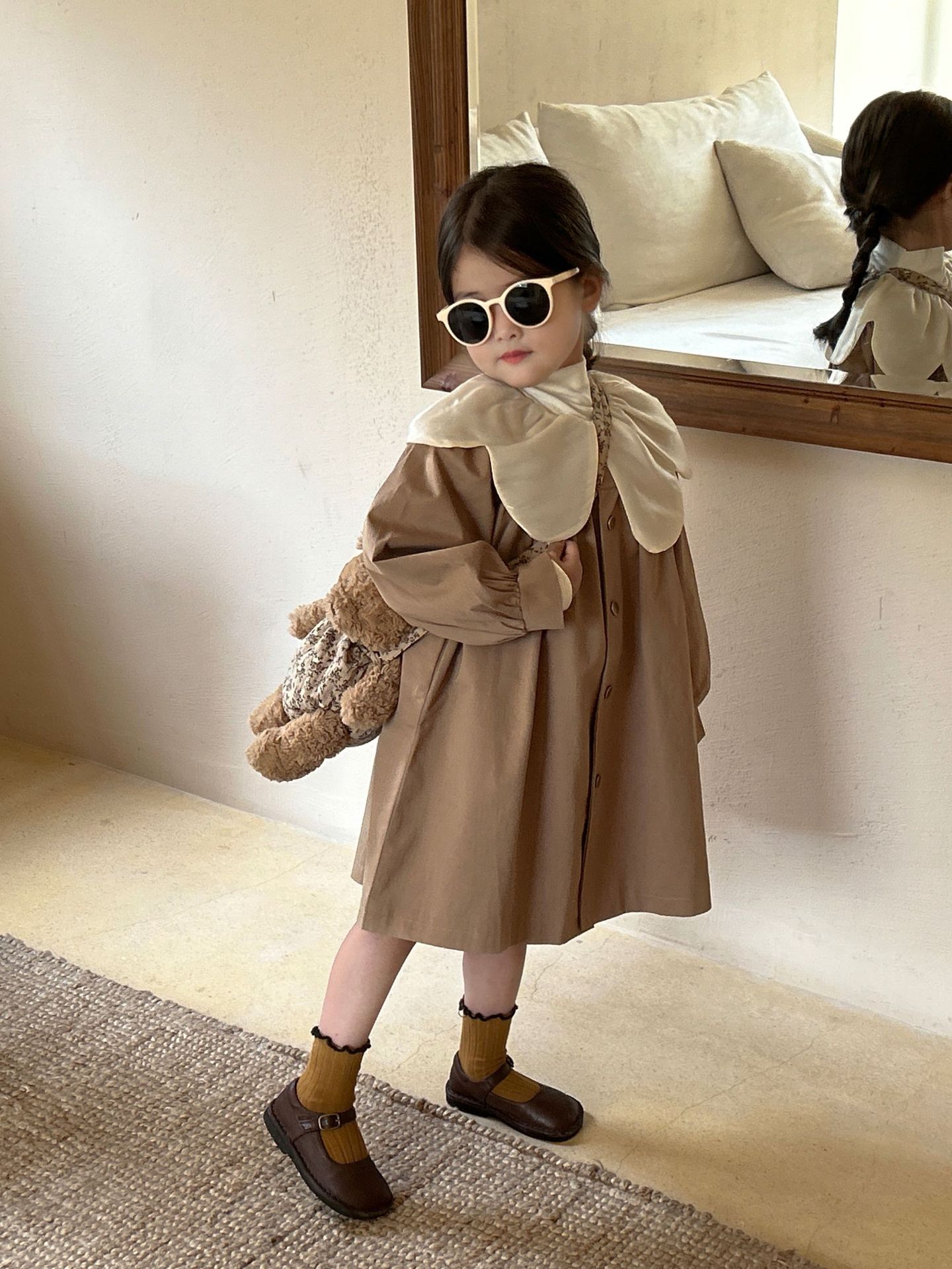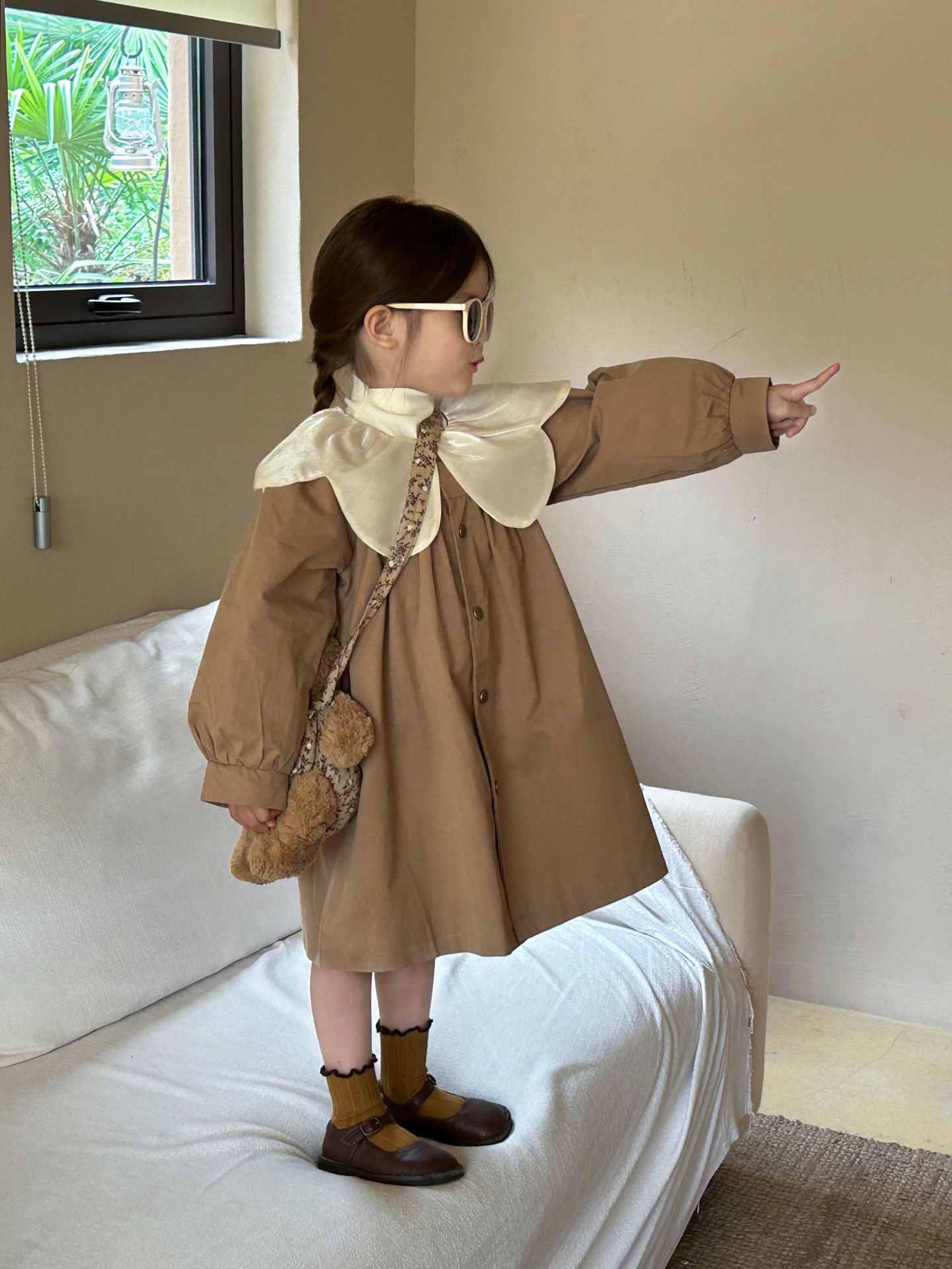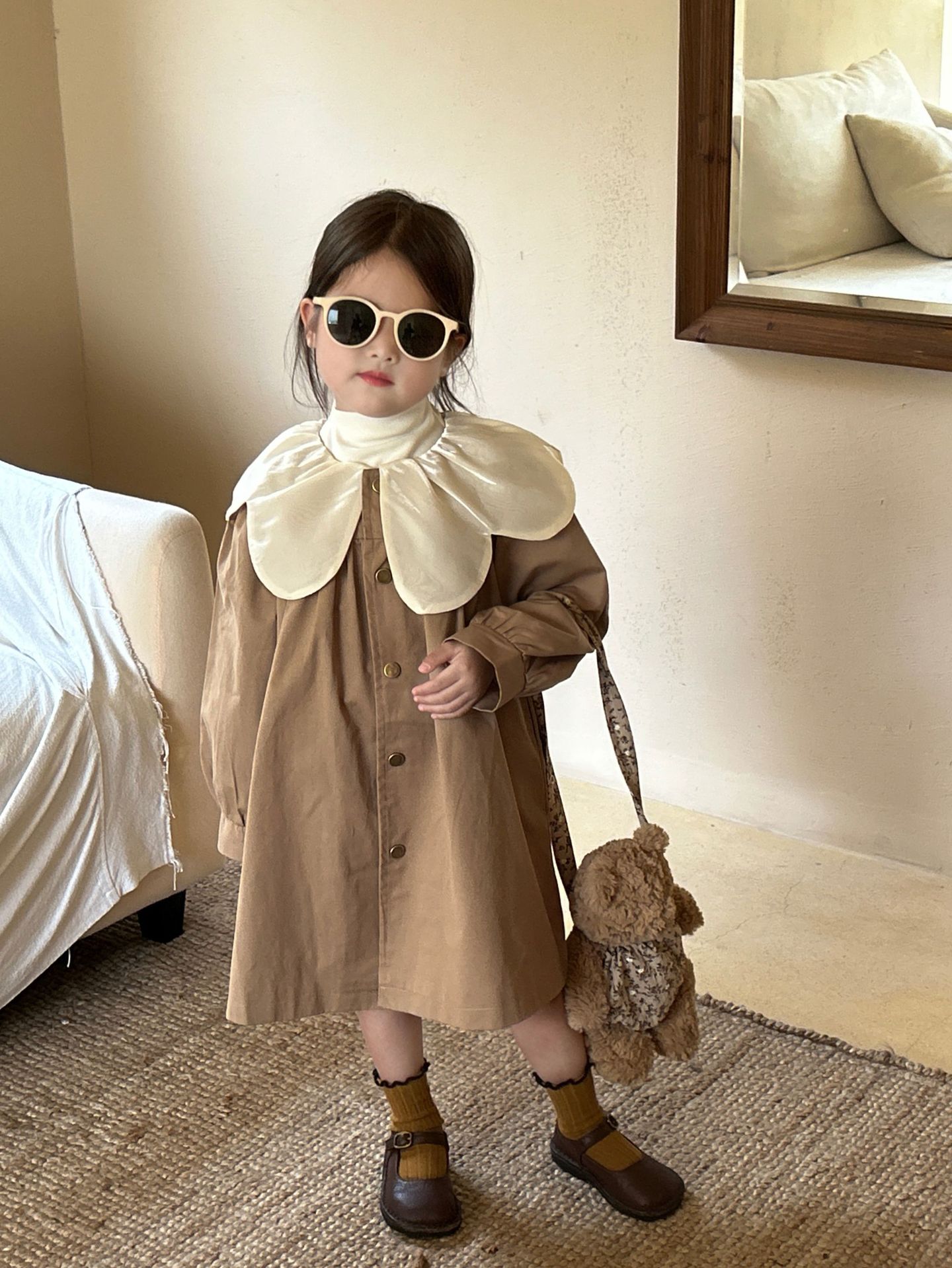 소녀 달콤한 꽃잎 칼라 코트 가을 어린이 긴 트렌치 코트 조수 3-8 세 어린이 의류 머리카락의 세대스토어 가기