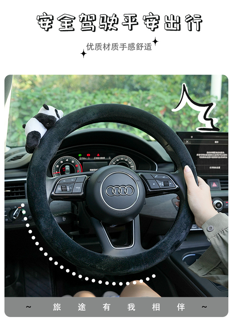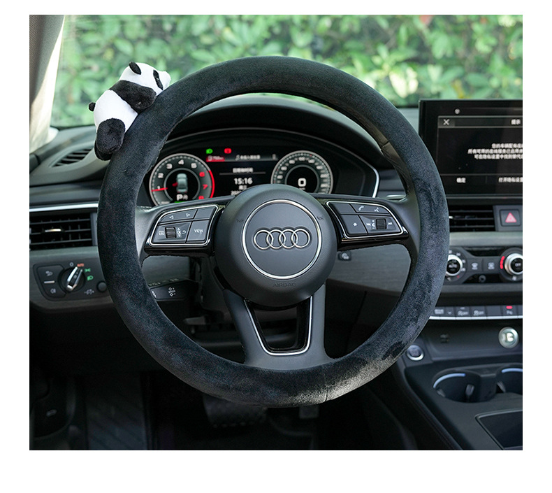 • 플러시 블랙 스티어링 휠 커버 페이스트 팬더