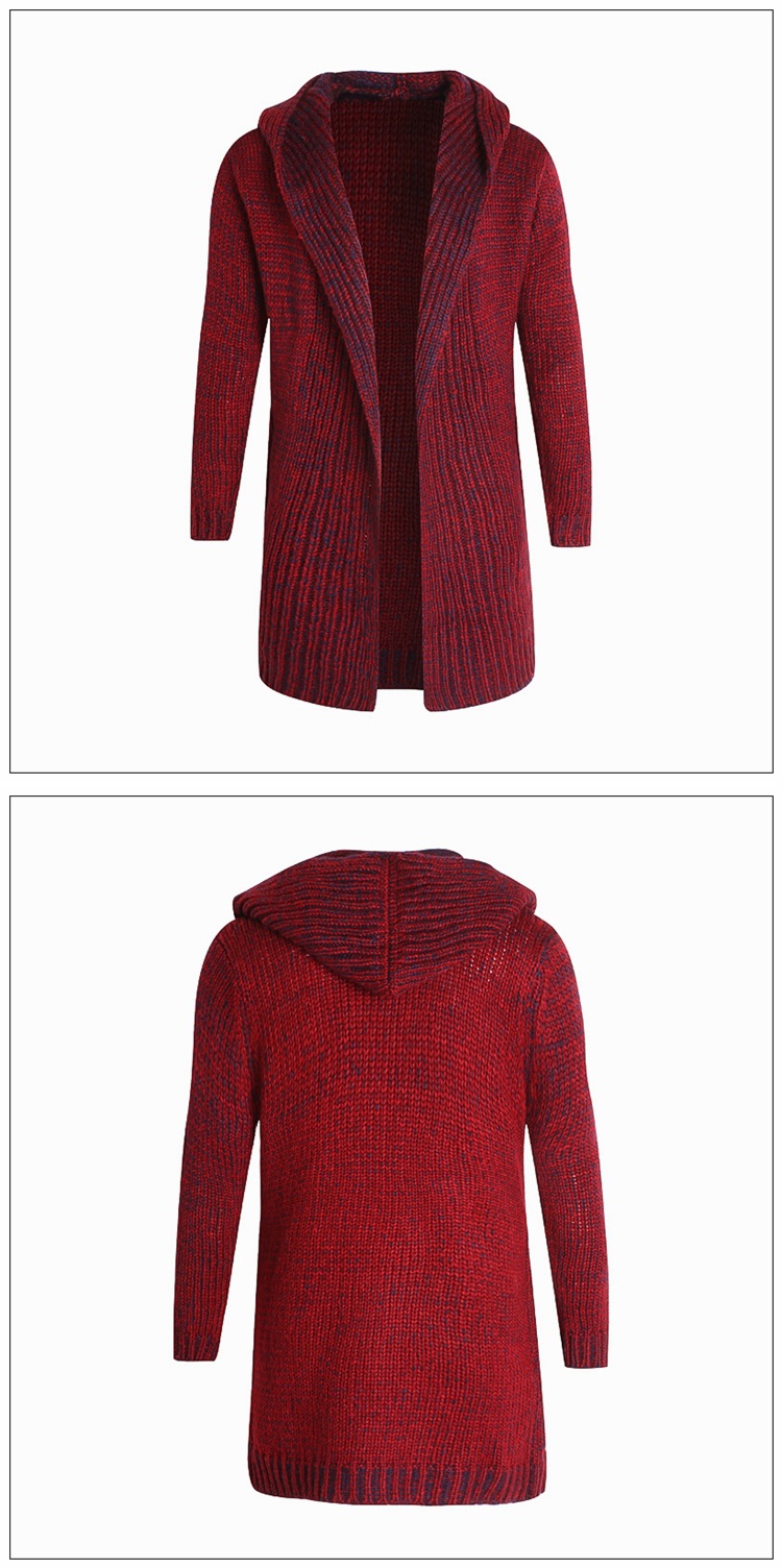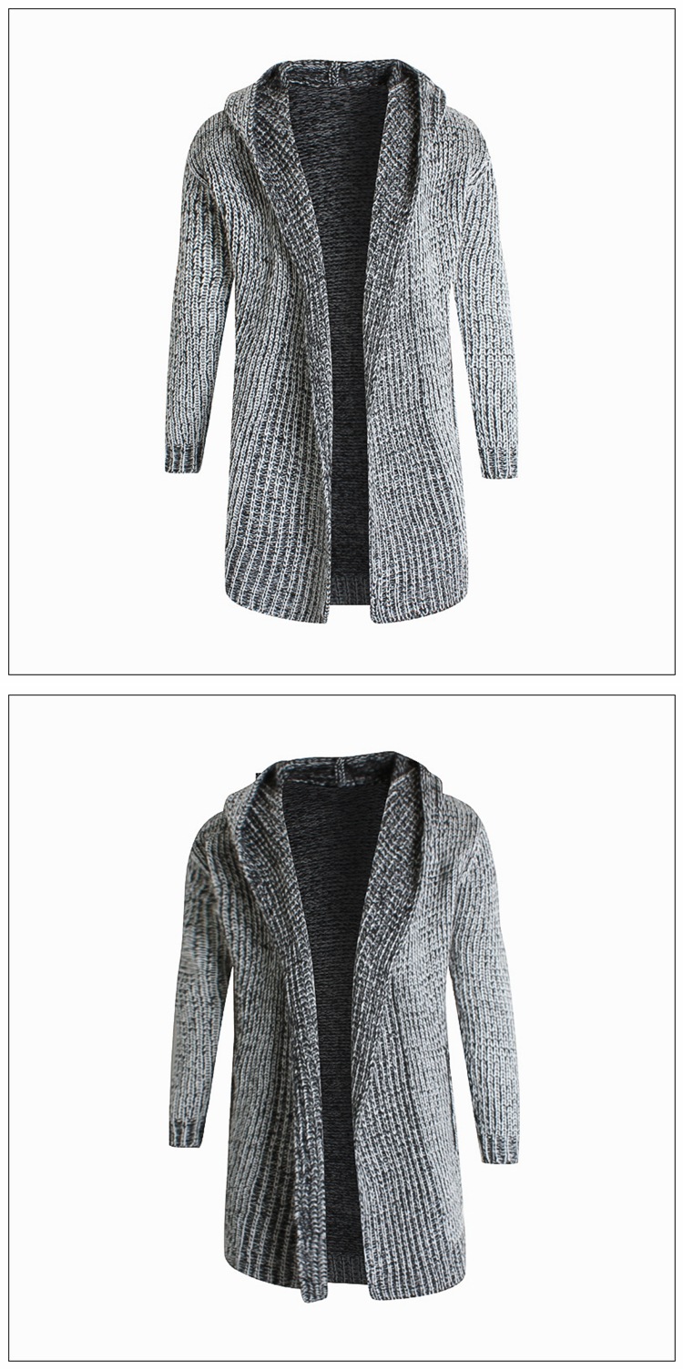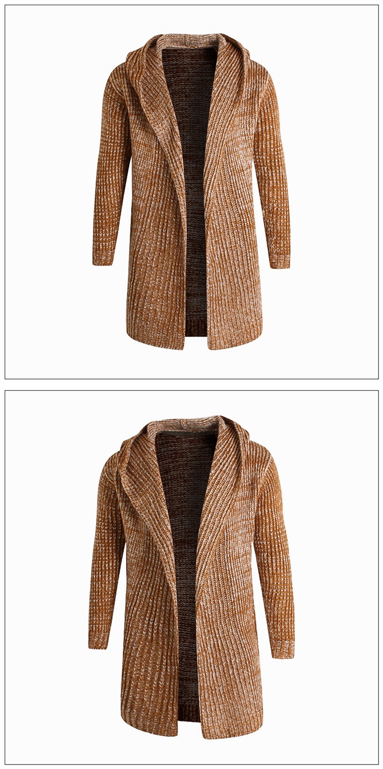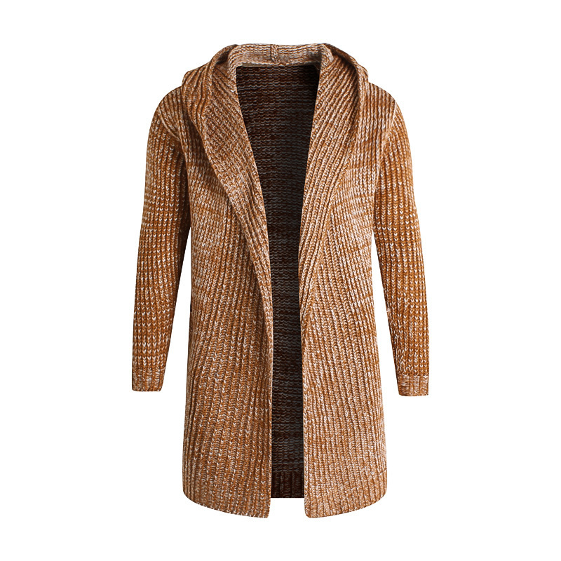 대외 무역 남성 가을과 겨울 새로운 중간 길이 카디건 스웨터 재킷 남성용 한국식 슬림핏 후드 단색 스웨터