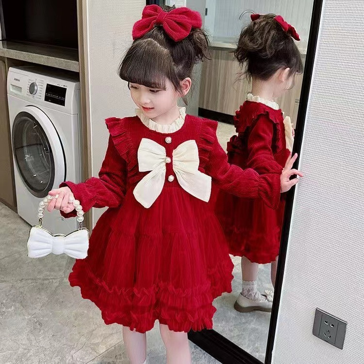 소녀 공주 원피스 가을 2023 새로운 소녀 세련된 아기 푹신한 원피스 가을과 겨울 어린이 원피스스토어 가기
