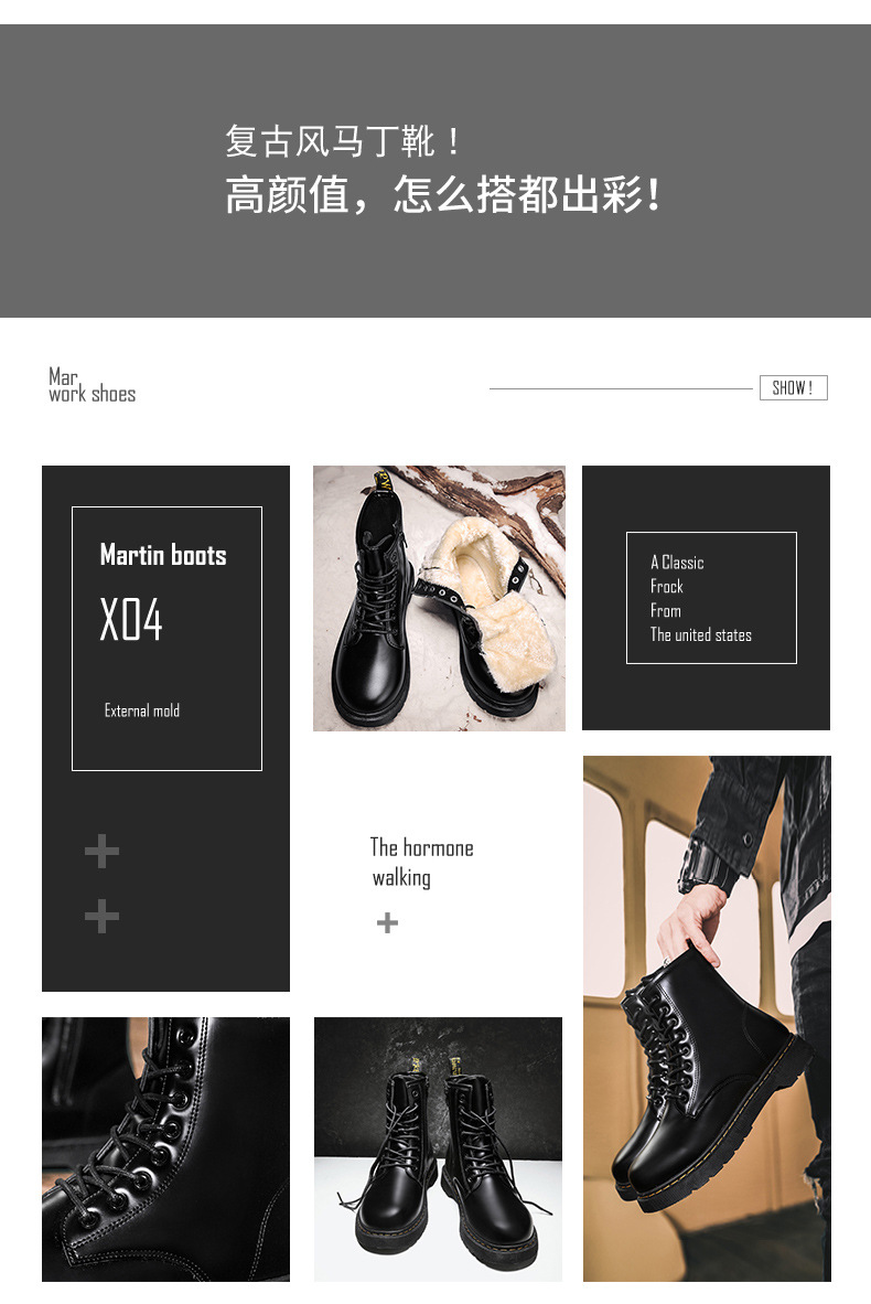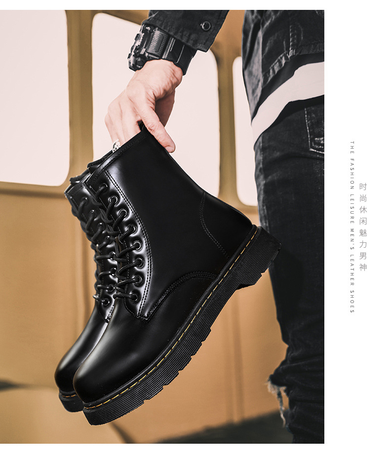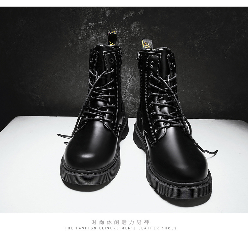인터넷 연예인 폭발적인 남자의 푹신한 블랙 마틴 부츠 영국 하이 탑 오토바이 부츠 유행 사이드 지퍼 영국 유행 신발