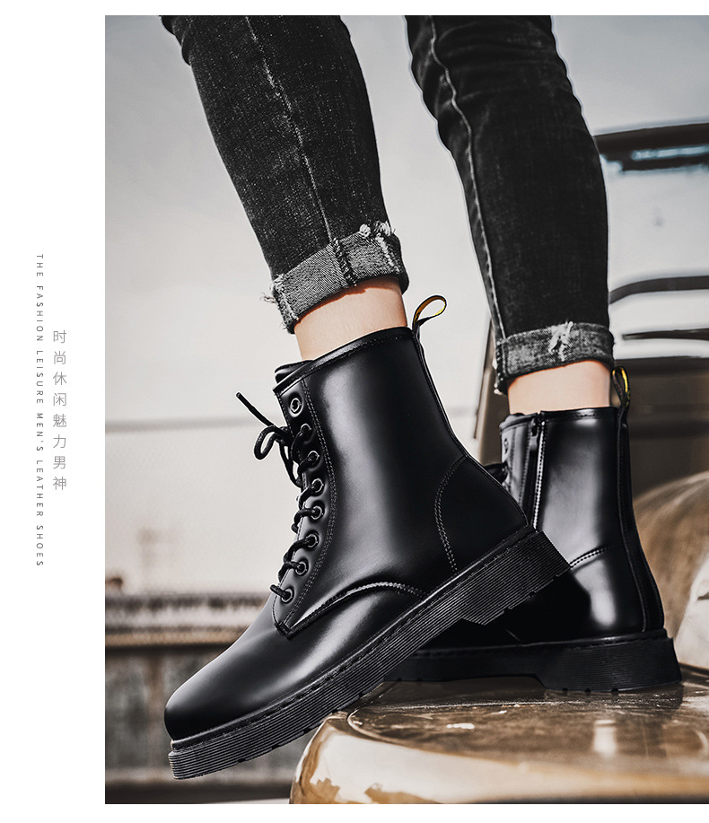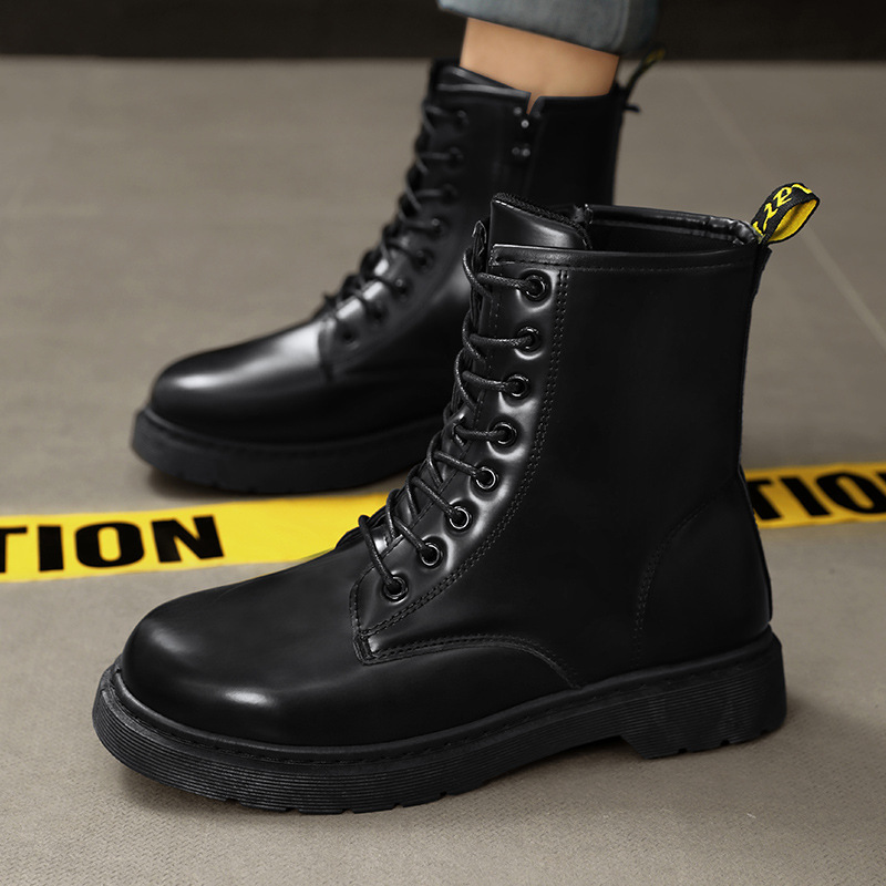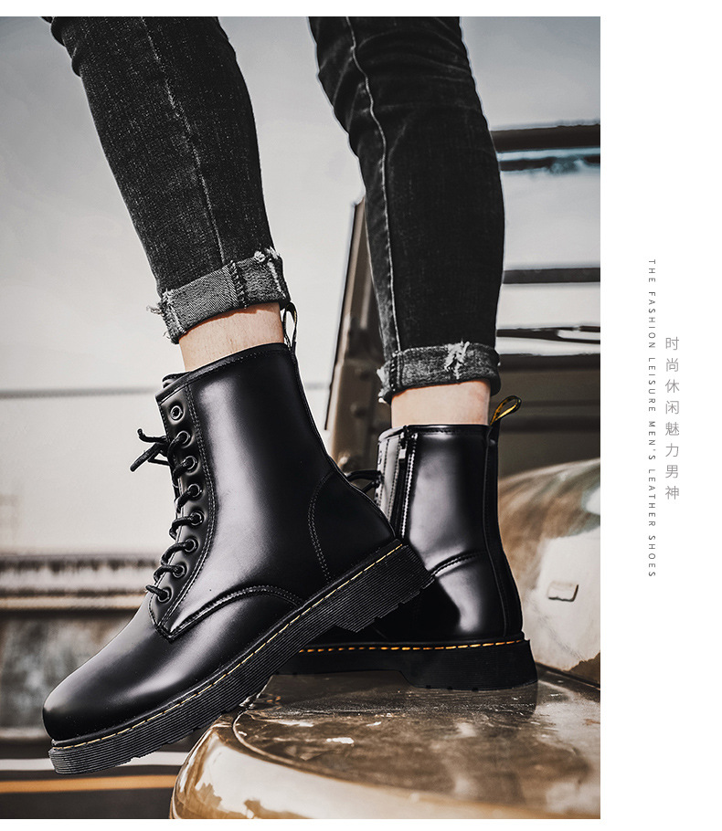 인터넷 연예인 폭발적인 남자의 푹신한 블랙 마틴 부츠 영국 하이 탑 오토바이 부츠 유행 사이드 지퍼 영국 유행 신발스토어 가기