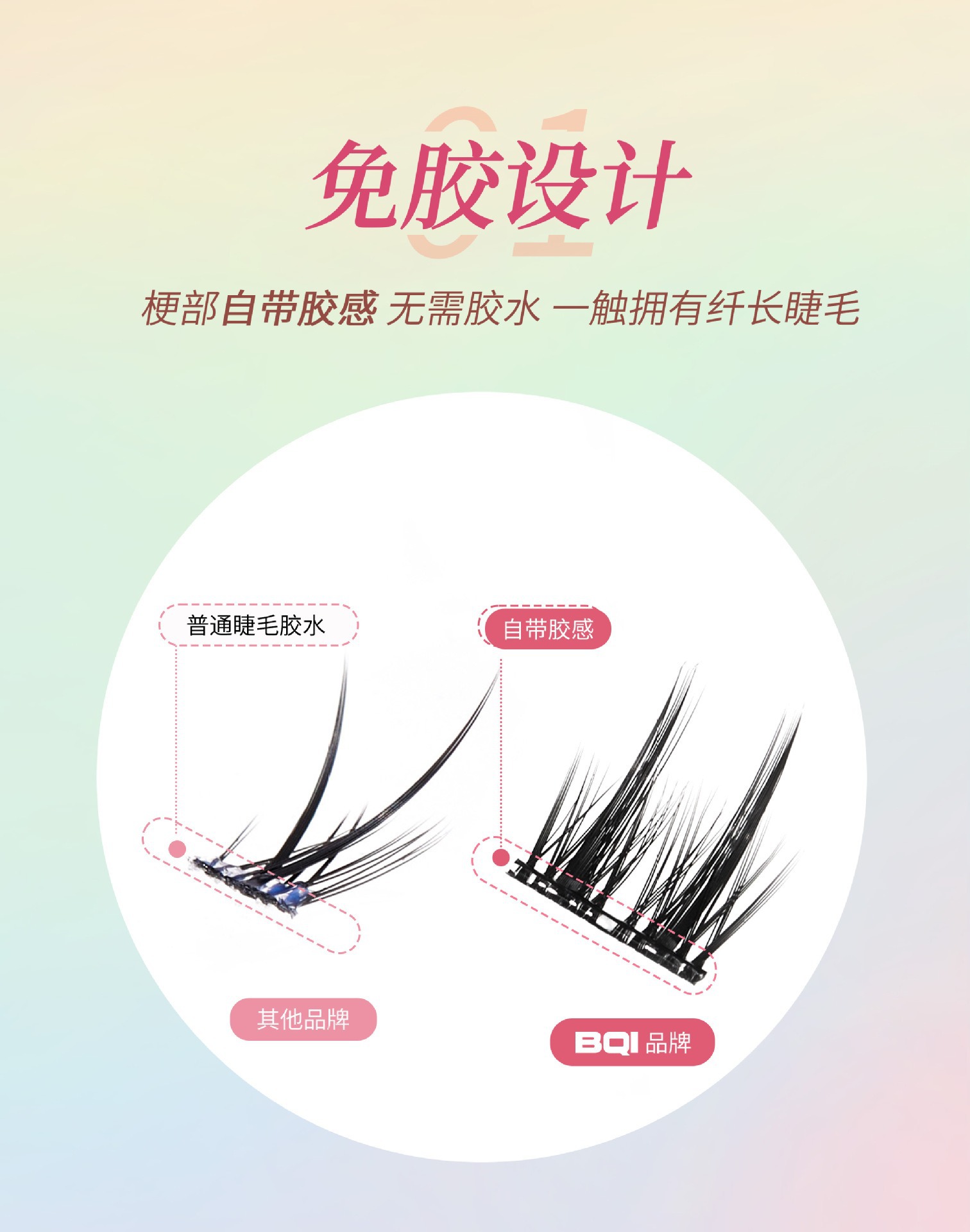Zhirui BQI 접착제가 필요없는 가짜 속눈썹 더블 타워 밀 귀 순수한 욕망 걸 그룹 속눈썹 자체 접착 접착제가 필요없는 가짜 속눈썹 제거