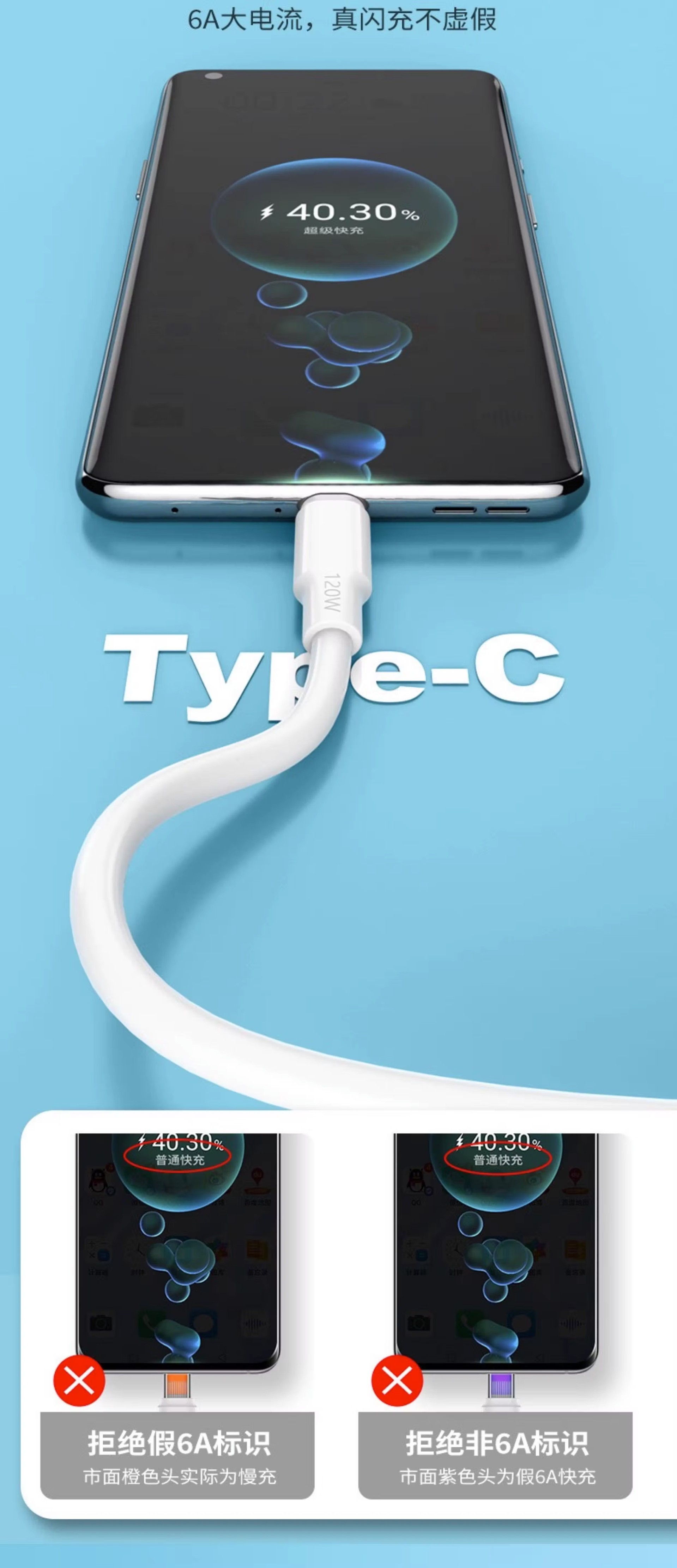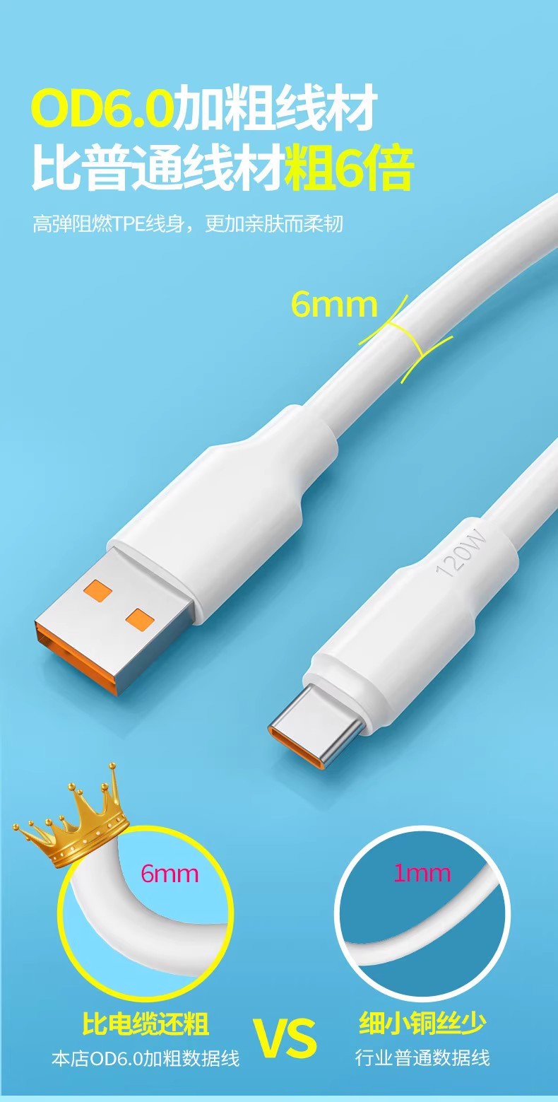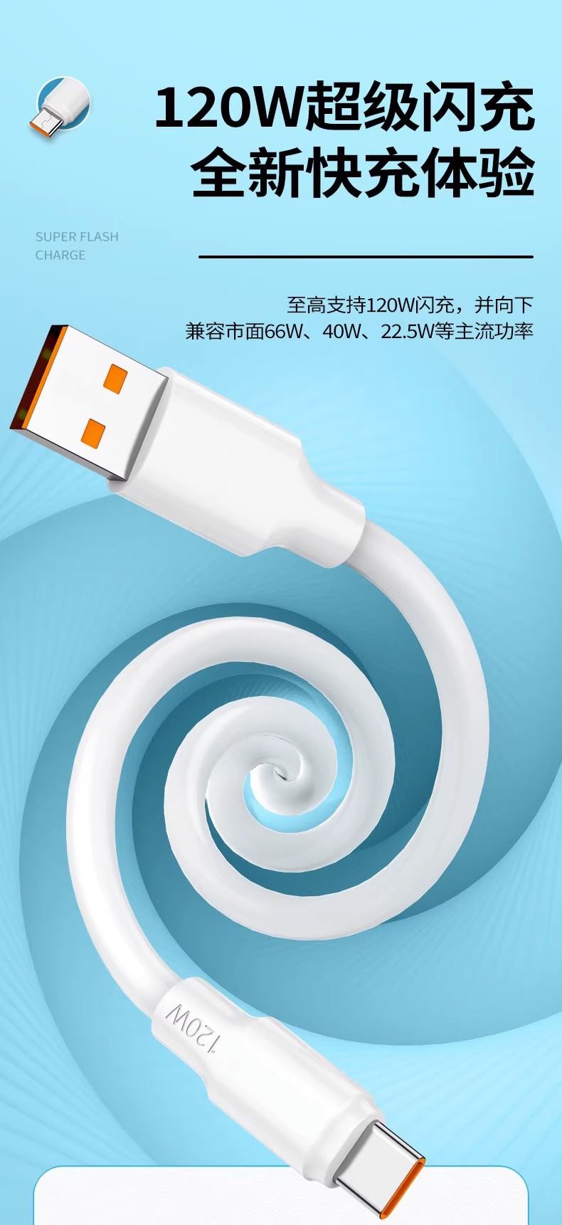 Apple Huawei Xiaomi Type-C Python Flash Shenlong 케이블에 적합한 Bold 120W 슈퍼 플래시 충전 케이블스토어 가기