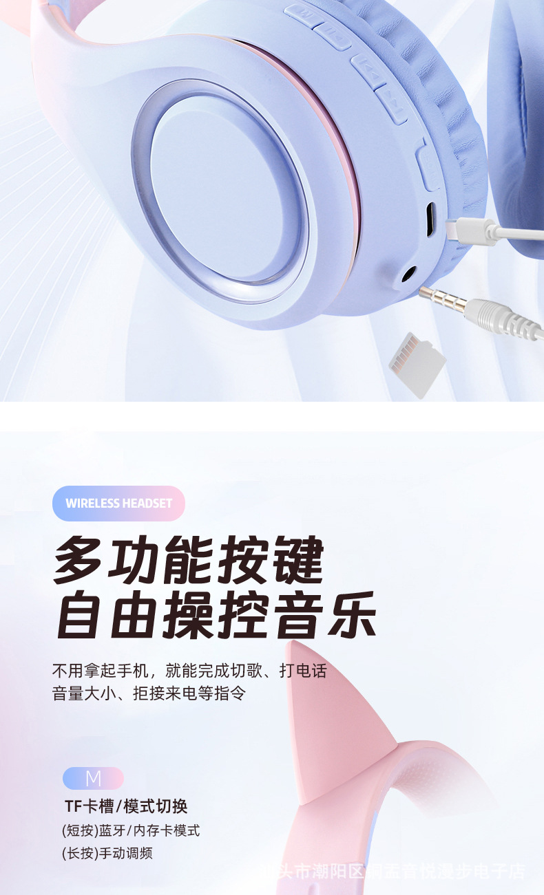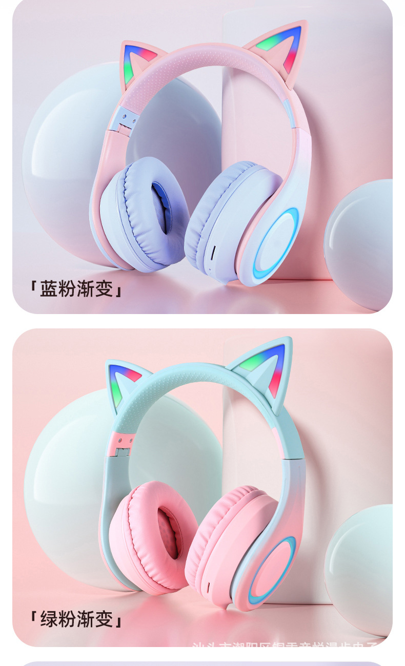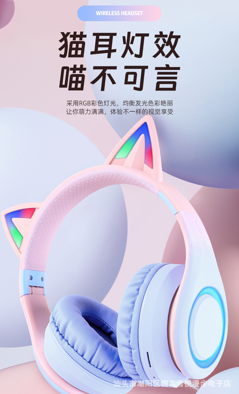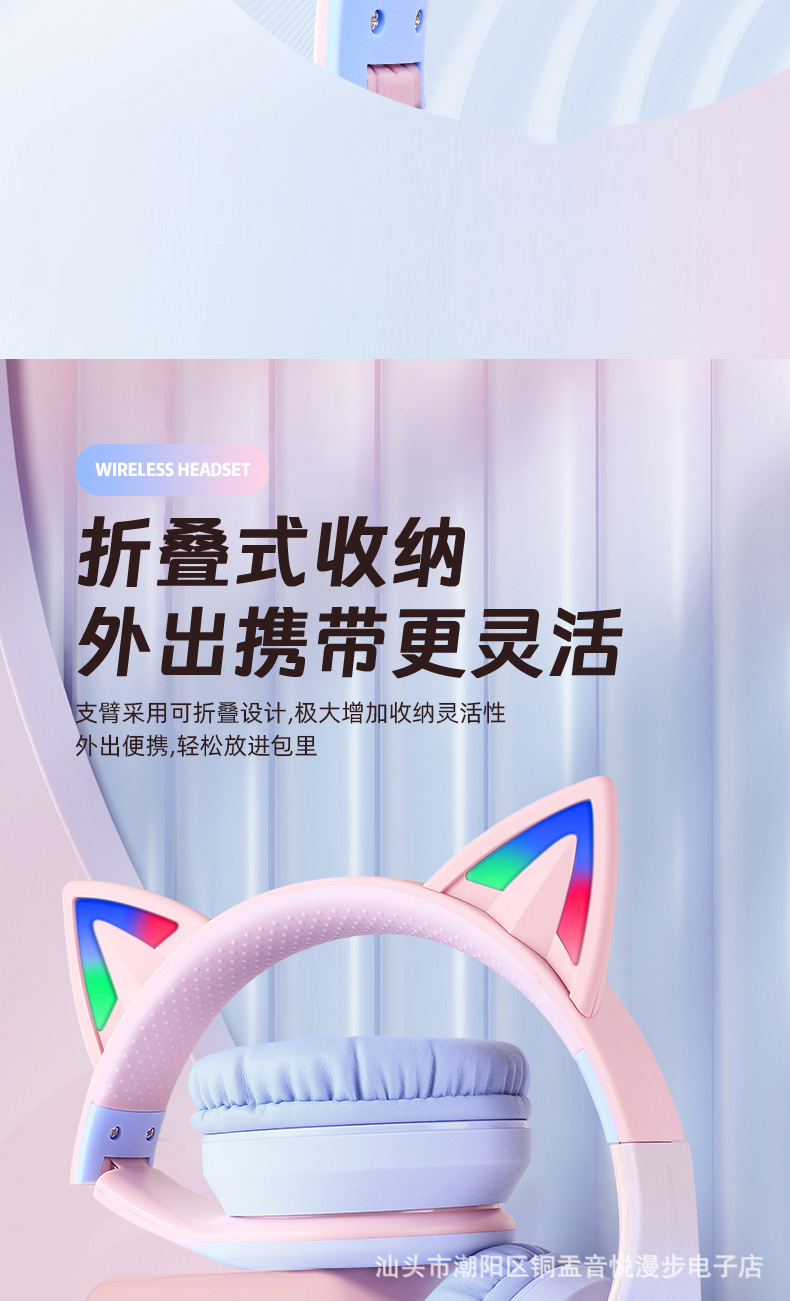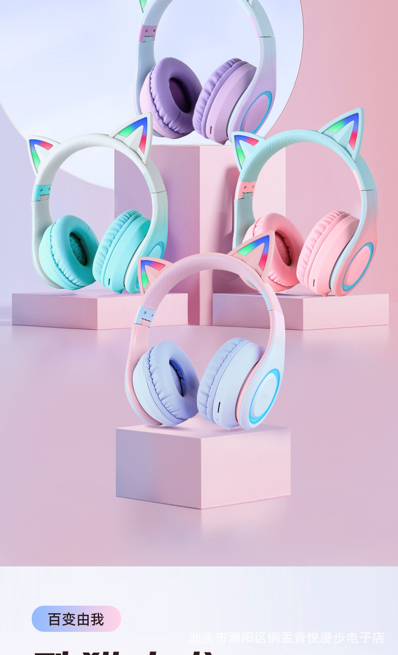 국경을 넘는 신제품 고양이 귀 모양 블루투스 헤드셋 어린이 온라인 수업용 이어폰 음악 라이브 방송 e스포츠 블루투스 5.3