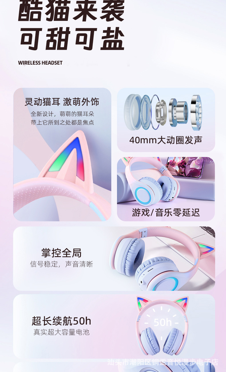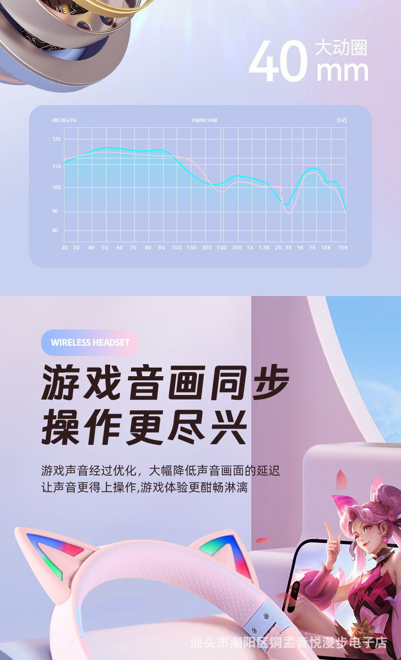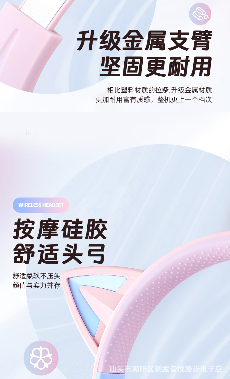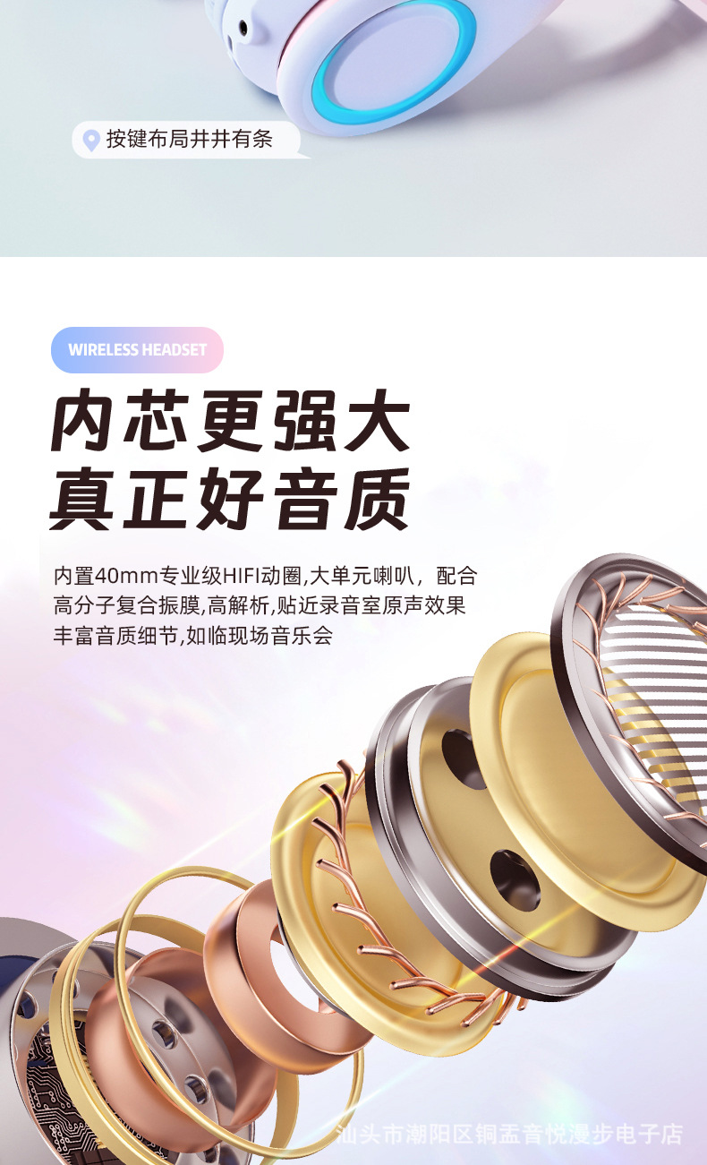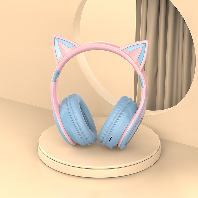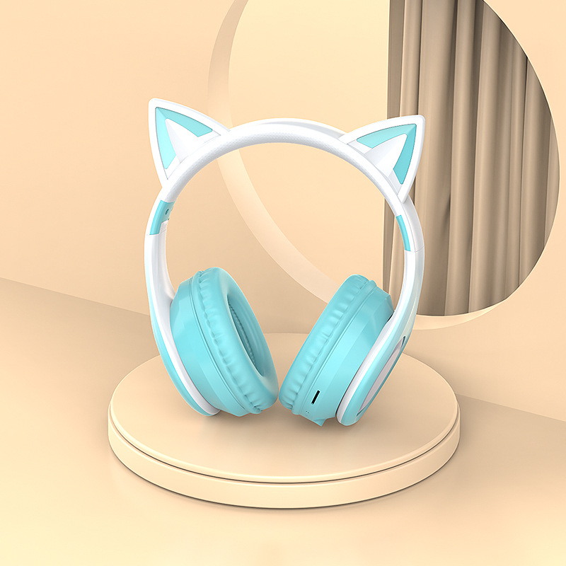 국경을 넘는 신제품 고양이 귀 모양 블루투스 헤드셋 어린이 온라인 수업용 이어폰 음악 라이브 방송 e스포츠 블루투스 5.3