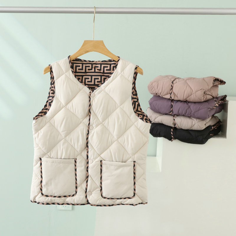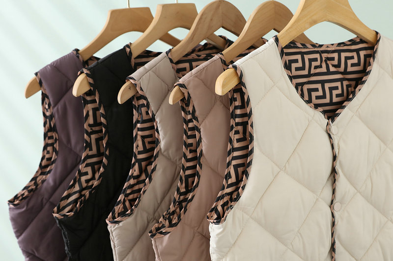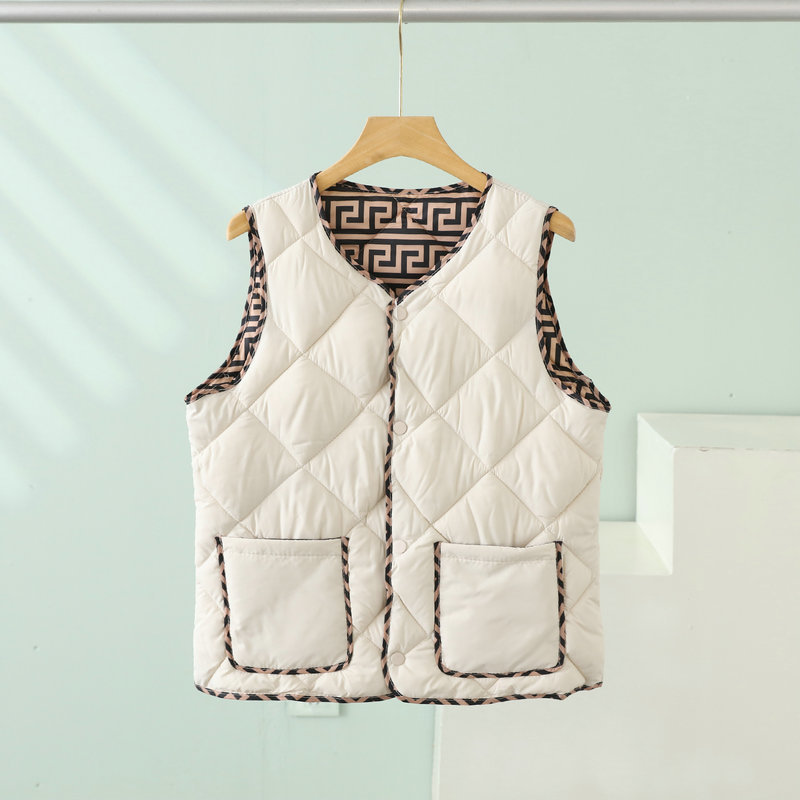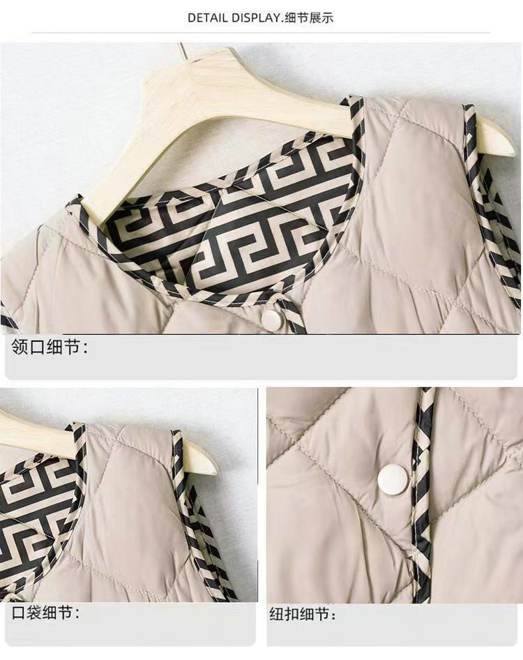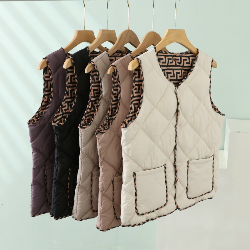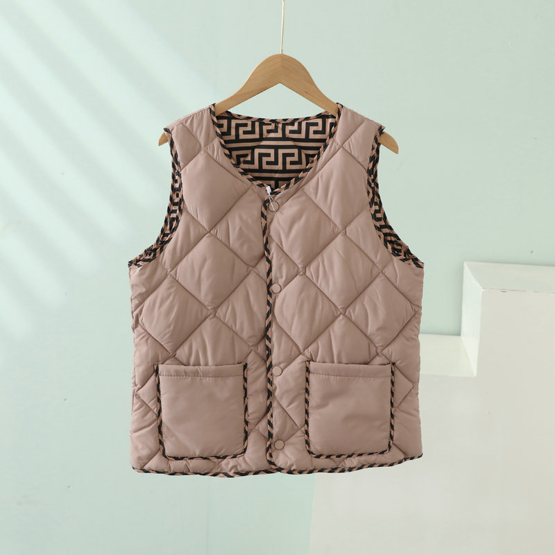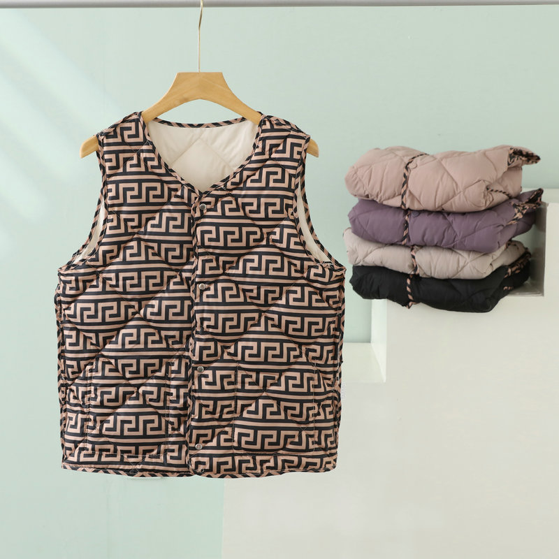 2023 경량 다운 코튼 조끼 여성 짧은 가을, 겨울 새로운 추상 패턴 조끼 라운드 넥 패션 조끼 여성스토어 가기