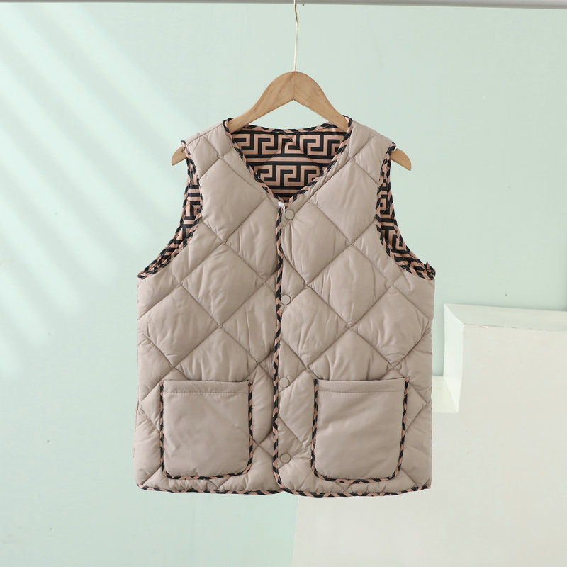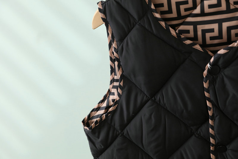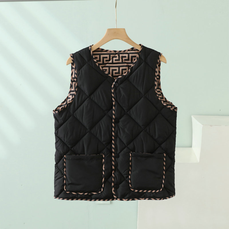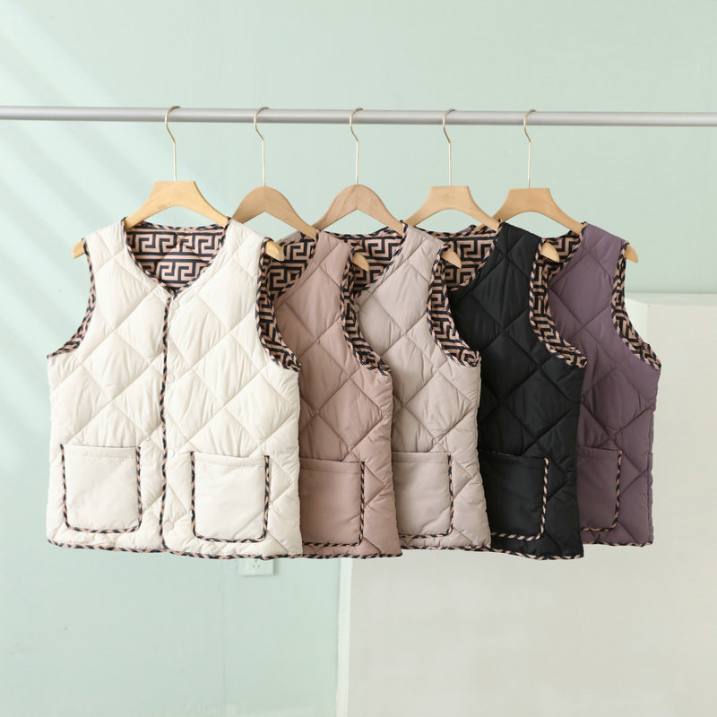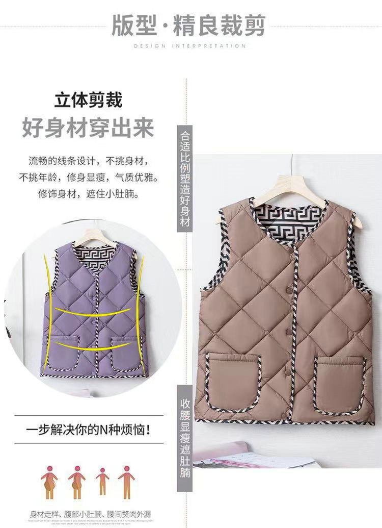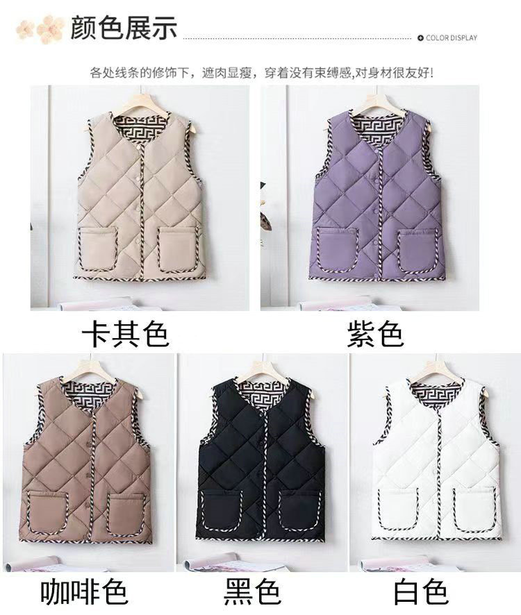 2023 경량 다운 코튼 조끼 여성 짧은 가을, 겨울 새로운 추상 패턴 조끼 라운드 넥 패션 조끼 여성스토어 가기