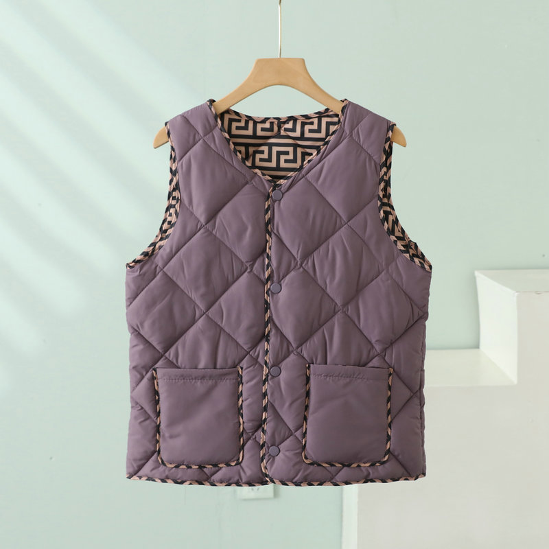 2023 경량 다운 코튼 조끼 여성 짧은 가을, 겨울 새로운 추상 패턴 조끼 라운드 넥 패션 조끼 여성