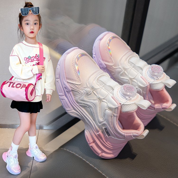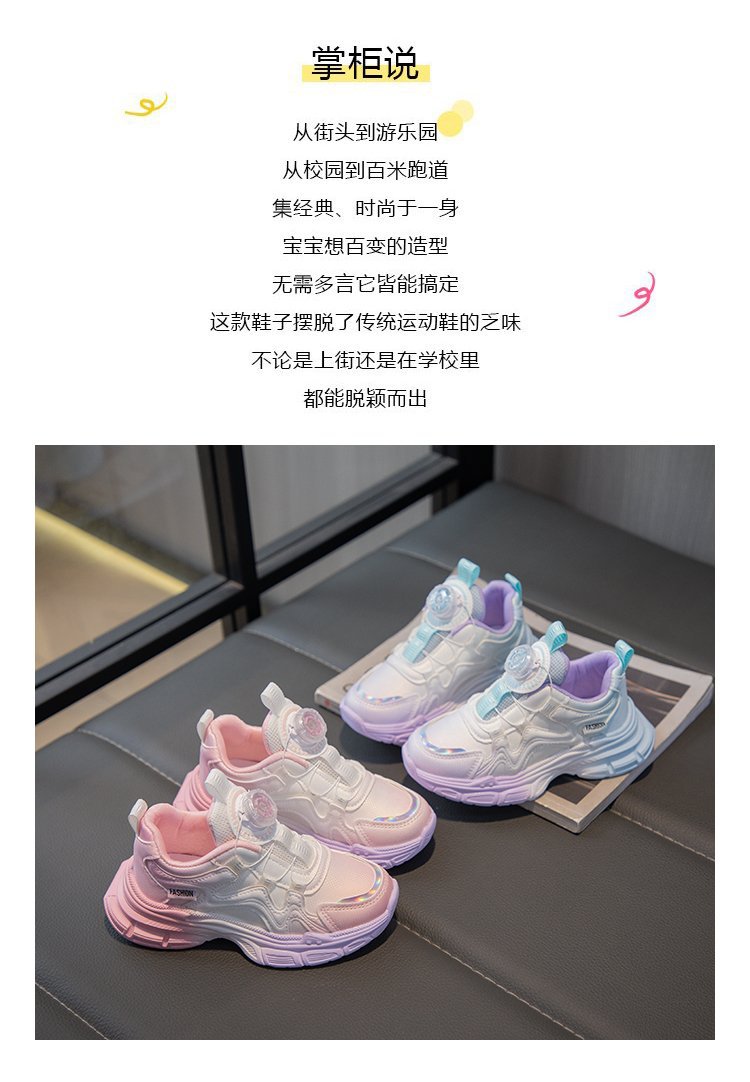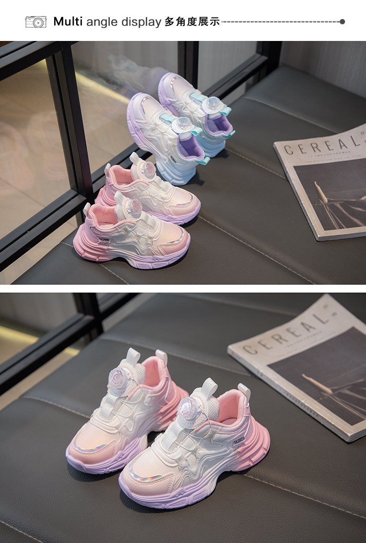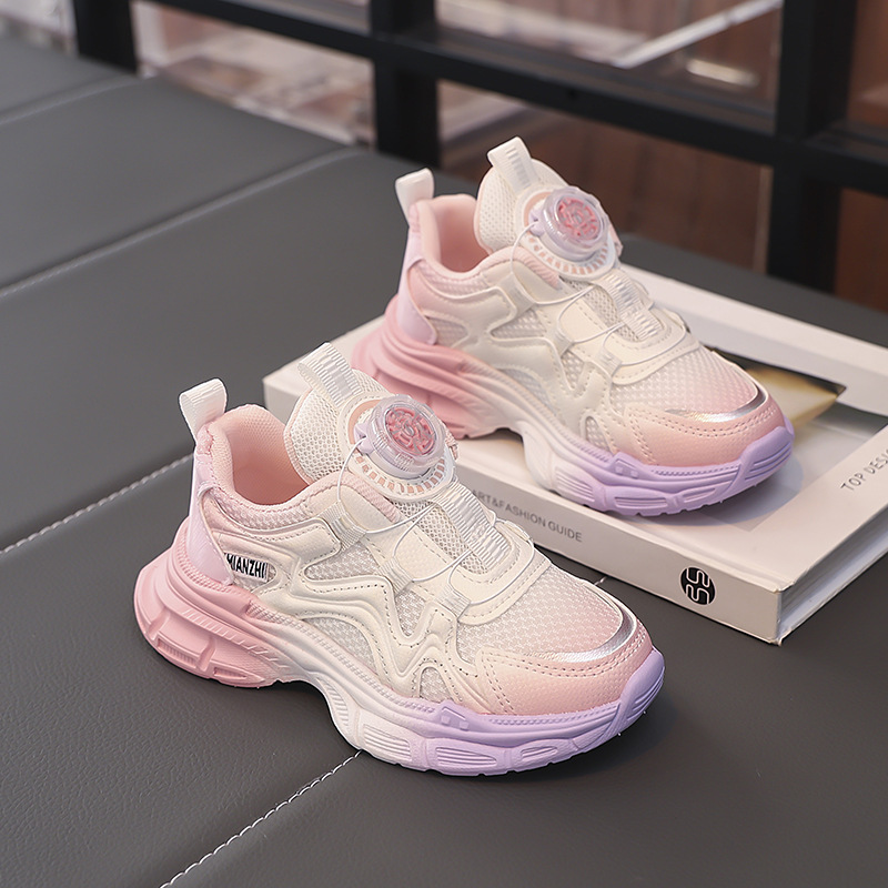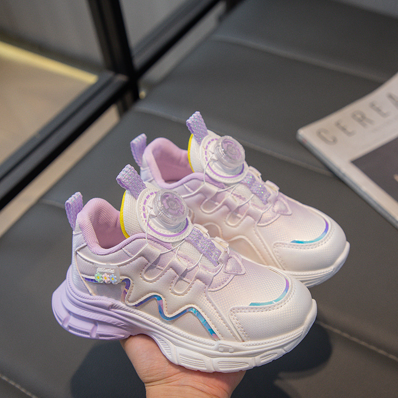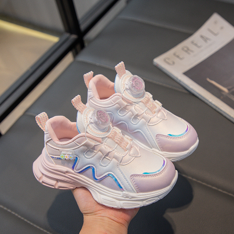 여아 운동화 2025 봄 회전 버튼 캐주얼 신발 어린이용 경량 미끄럼 방지 부드러운 밑창 아빠 신발 내구성