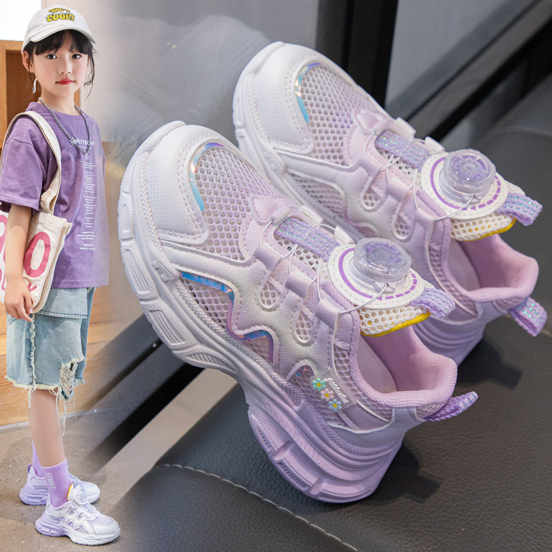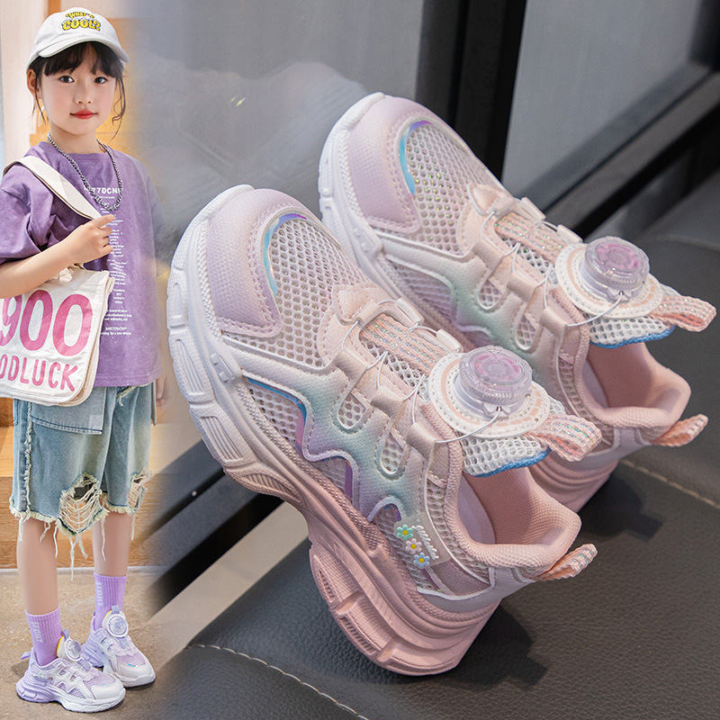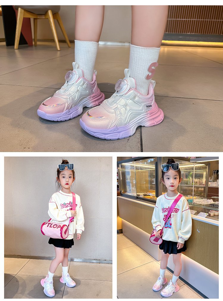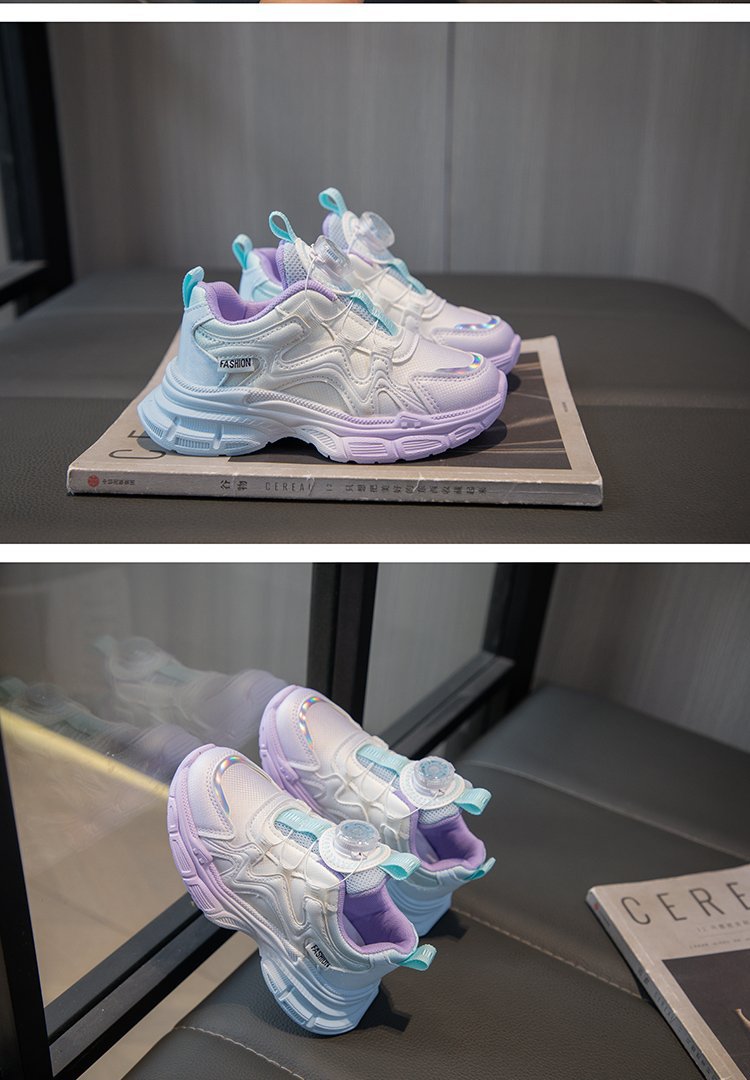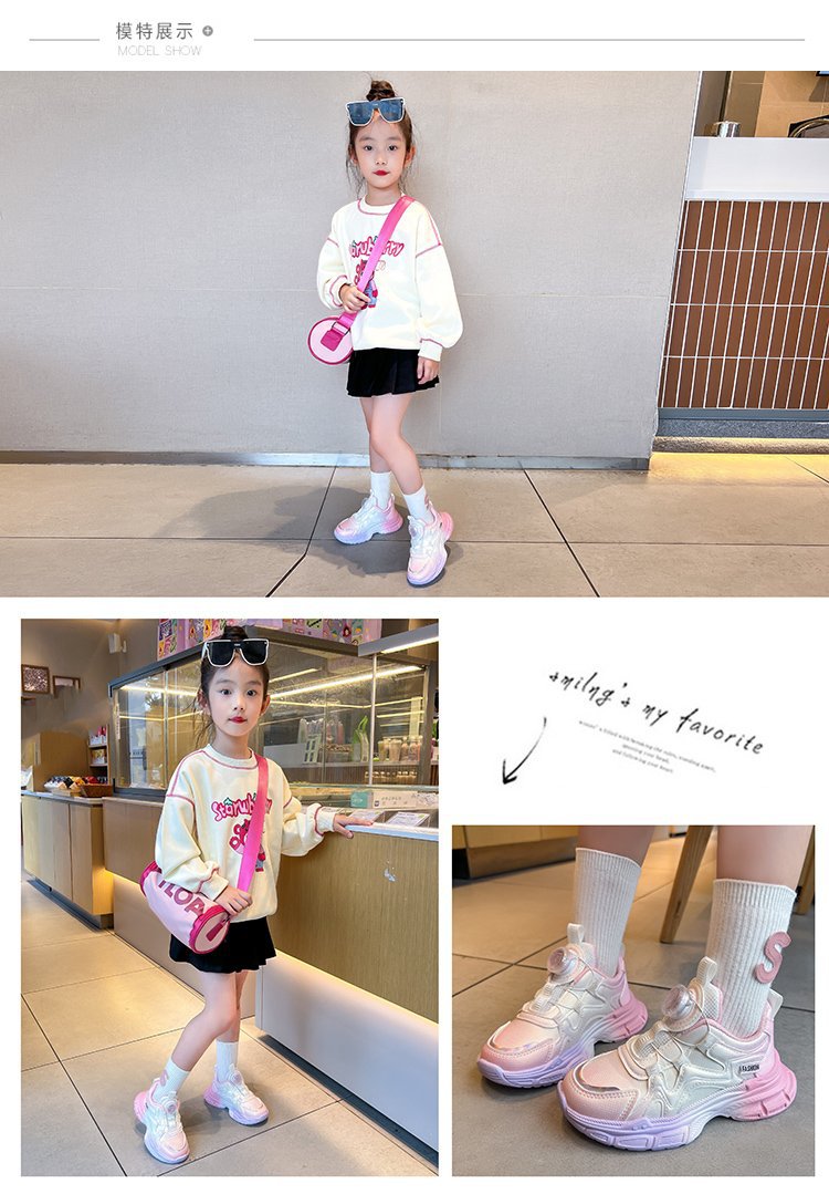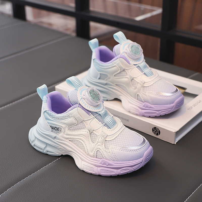 여아 운동화 2025 봄 회전 버튼 캐주얼 신발 어린이용 경량 미끄럼 방지 부드러운 밑창 아빠 신발 내구성