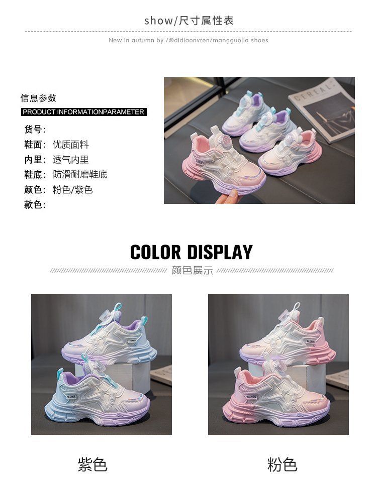 여아 운동화 2025 봄 회전 버튼 캐주얼 신발 어린이용 경량 미끄럼 방지 부드러운 밑창 아빠 신발 내구성스토어 가기