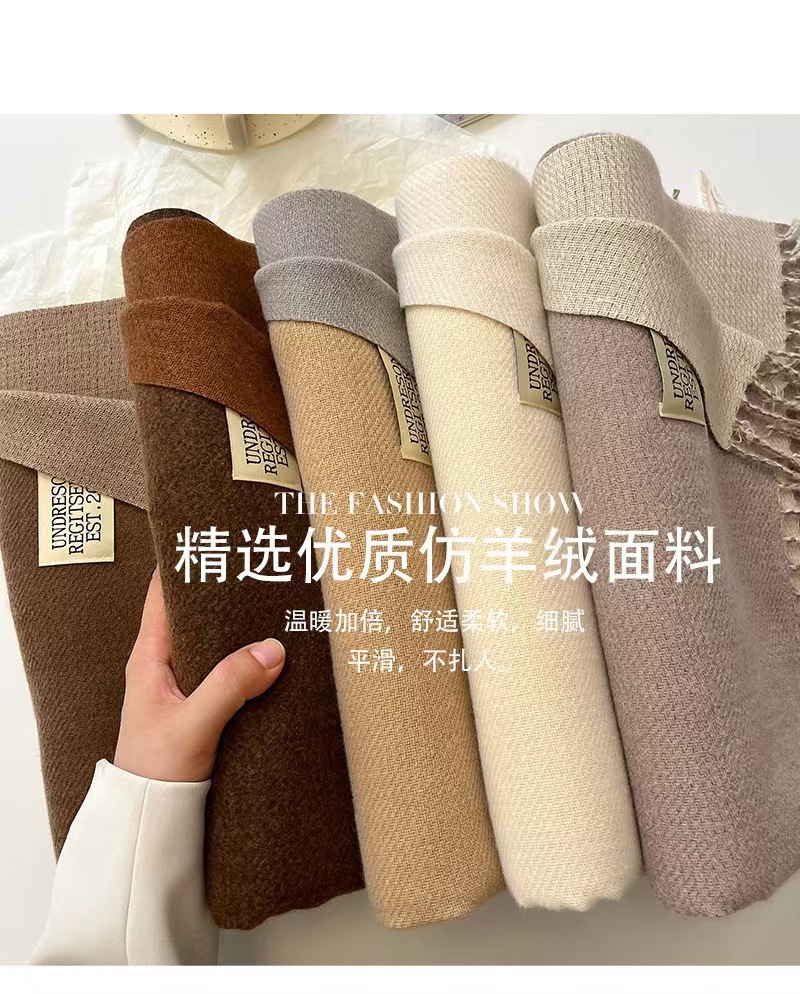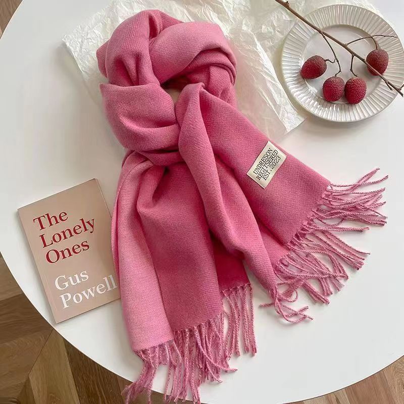 가을 겨울 따뜻한 롱 스카프, 신상 무지 캐시미어 느낌 양면 프린지 스카프, 여성용 두꺼운 학생 겸용 숄스토어 가기