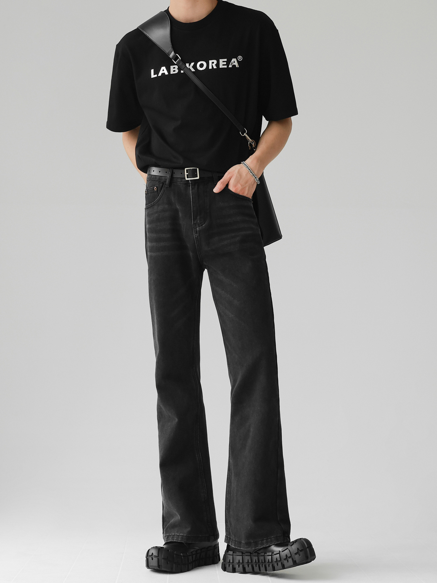 새로운 아메리칸 스타일 레트로 루즈 클린 핏 마이크로 라지 남성 하이 스트리트 올 매치 슬림 룩 스트레이트 팬츠 트렌디스토어 가기
