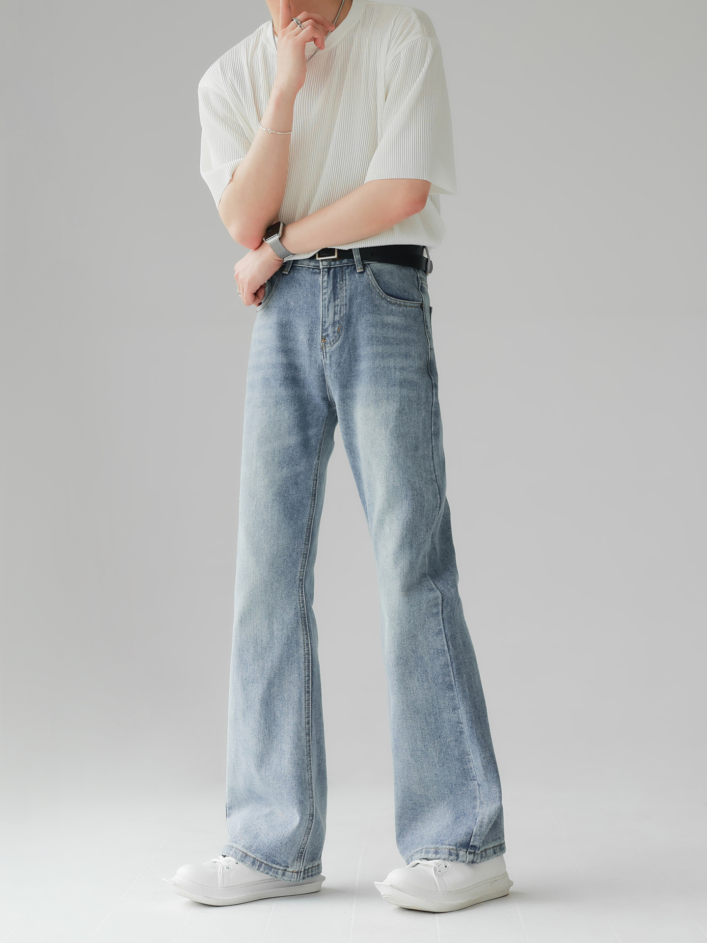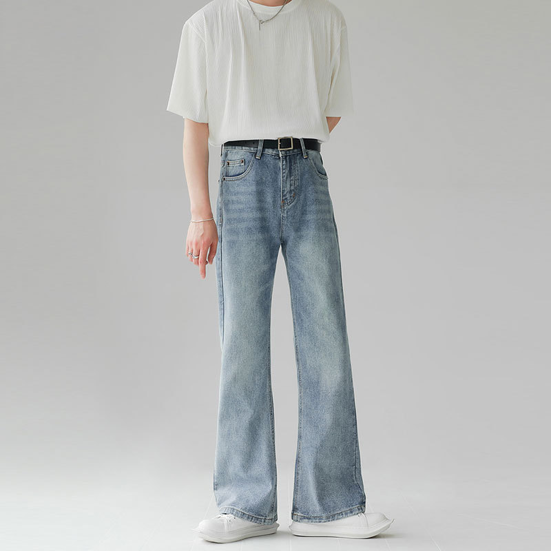 새로운 아메리칸 스타일 레트로 루즈 클린 핏 마이크로 라지 남성 하이 스트리트 올 매치 슬림 룩 스트레이트 팬츠 트렌디