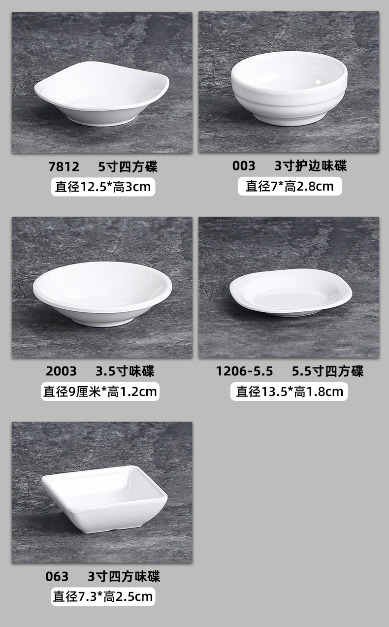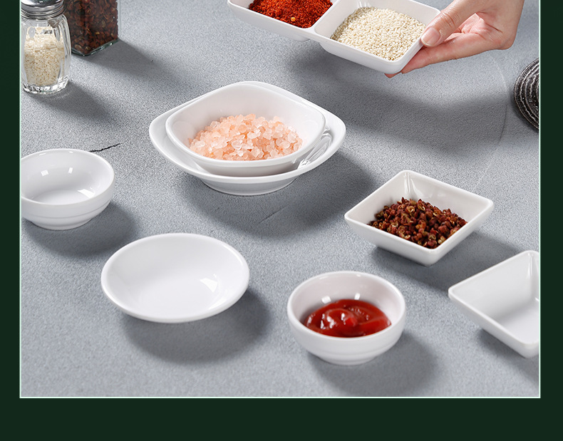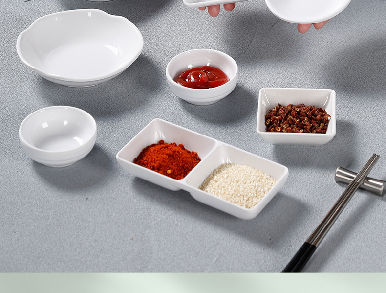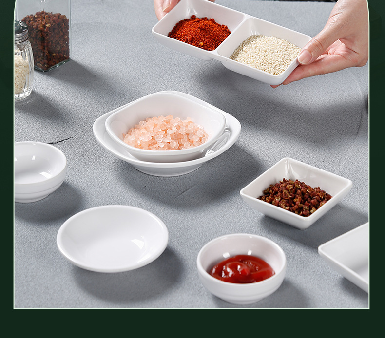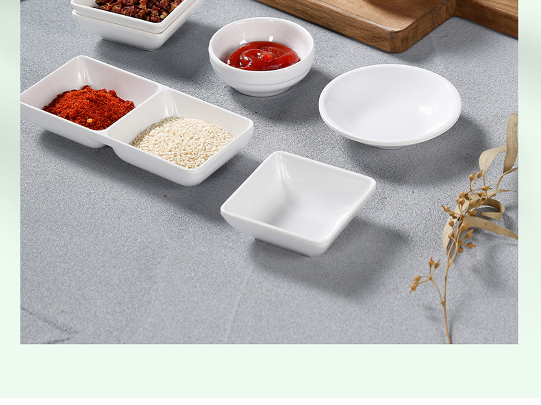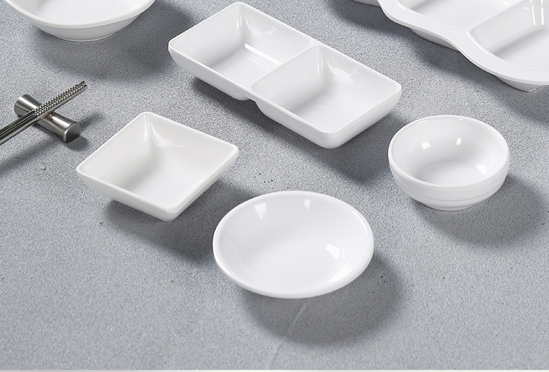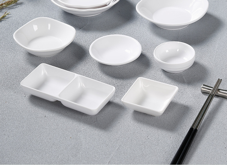 A5 멜라민 화이트 모조 도자기 딥 요리 레스토랑 레스토랑 상업 라운드 플라스틱 식초 나비 드레싱 접시 도매스토어 가기
