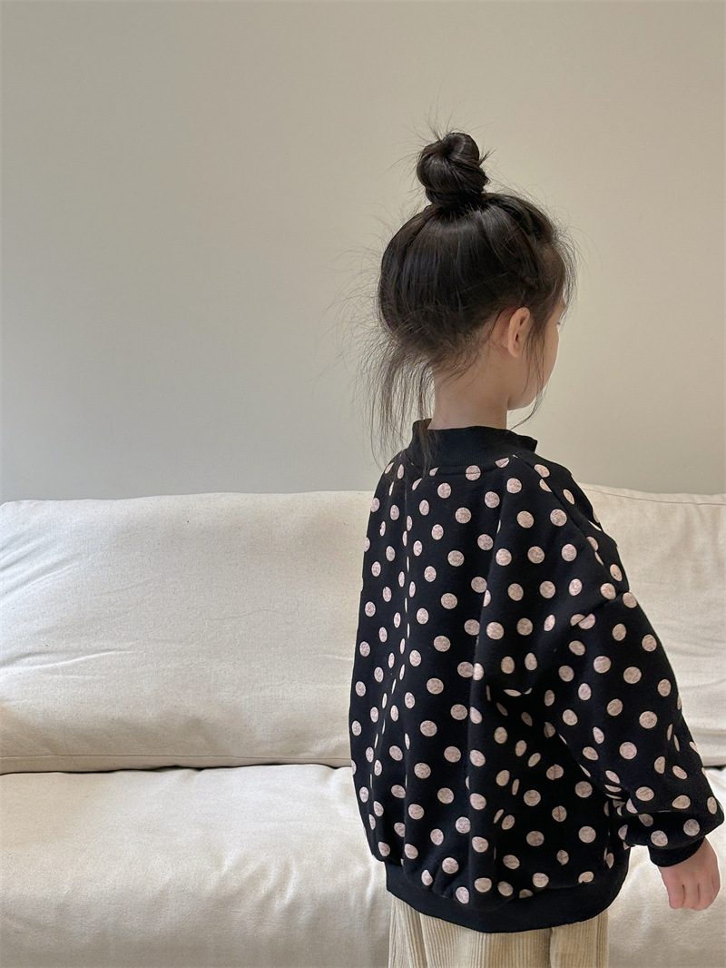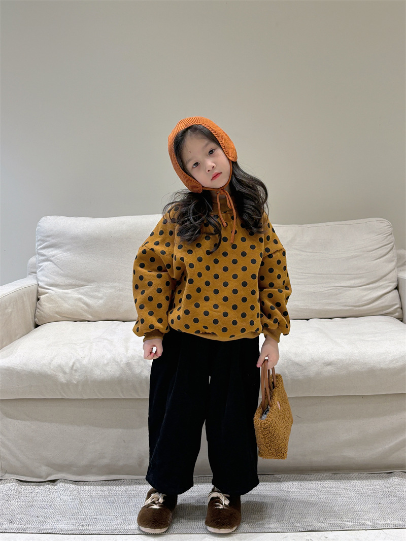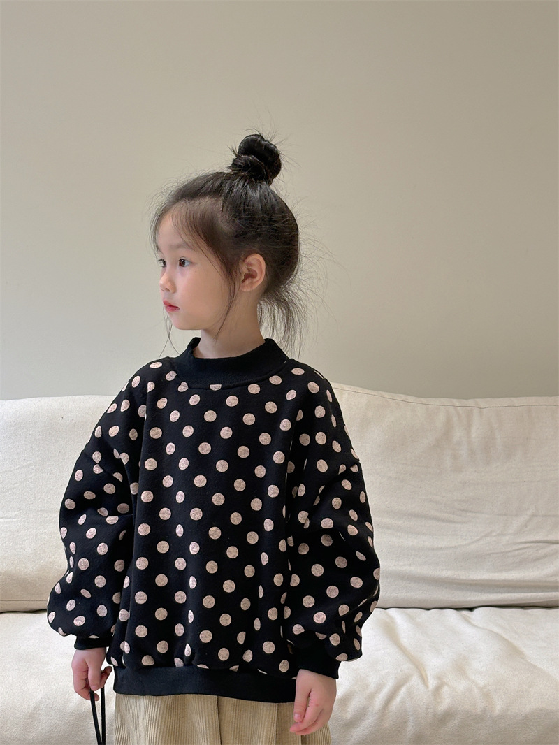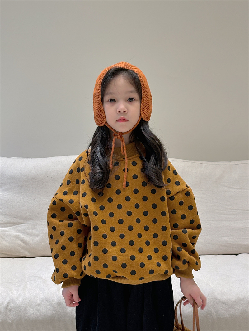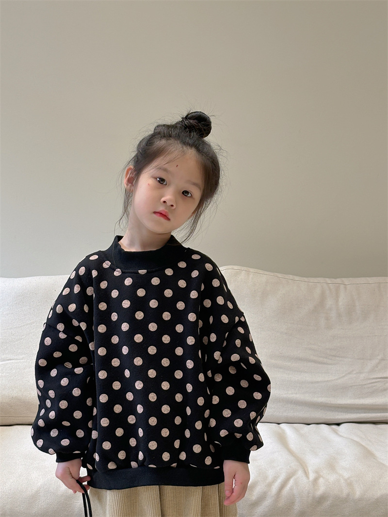 소년과 소녀를위한 아동복 기모 웨이브 도트 프린트 스웨터 2023 겨울 새로운 어린이 두꺼운 따뜻한 탑 A452스토어 가기