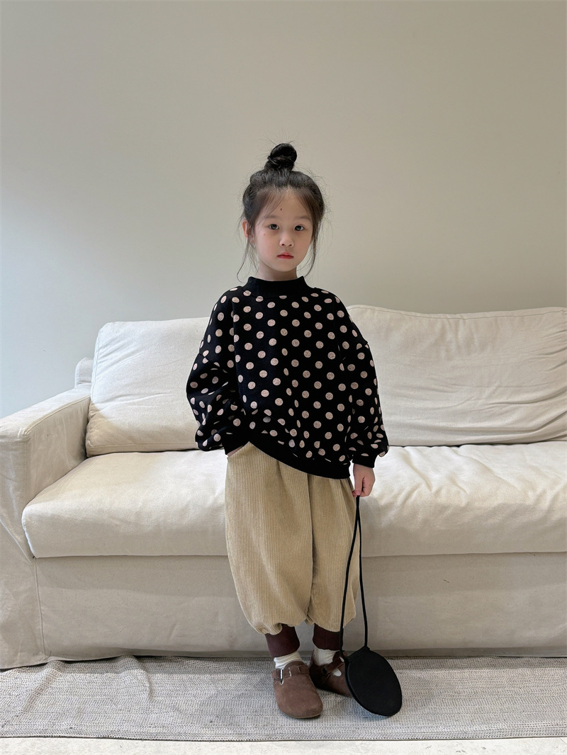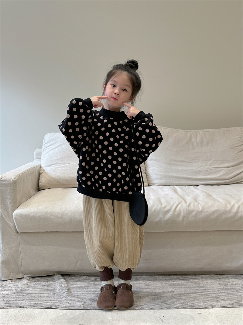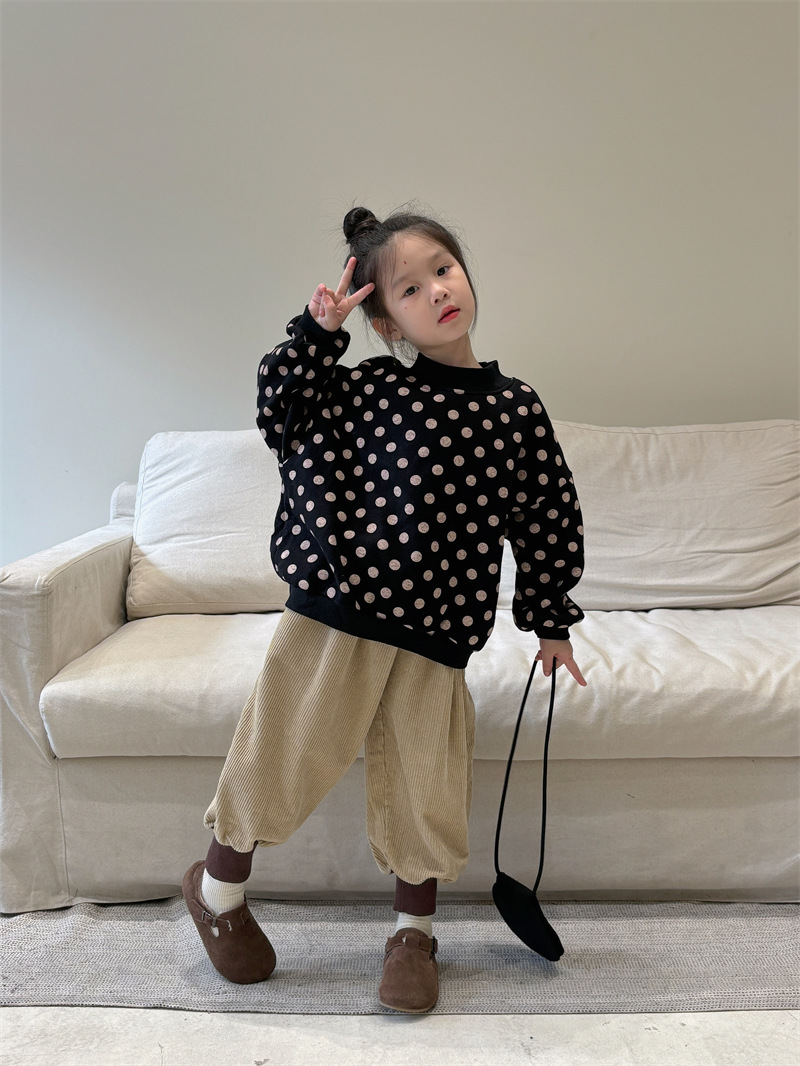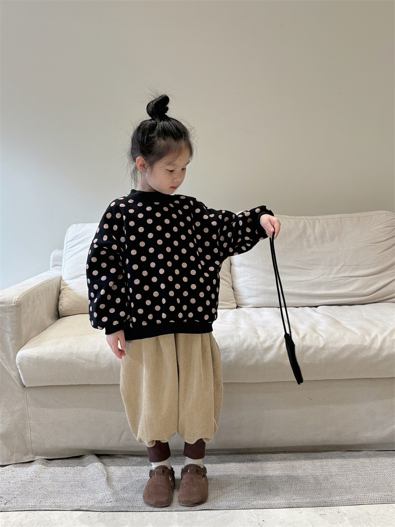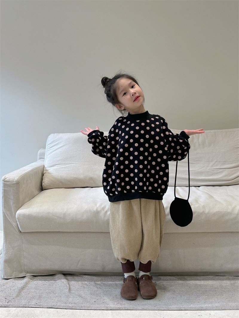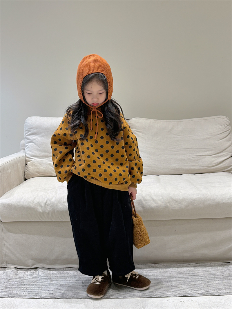 소년과 소녀를위한 아동복 기모 웨이브 도트 프린트 스웨터 2023 겨울 새로운 어린이 두꺼운 따뜻한 탑 A452스토어 가기