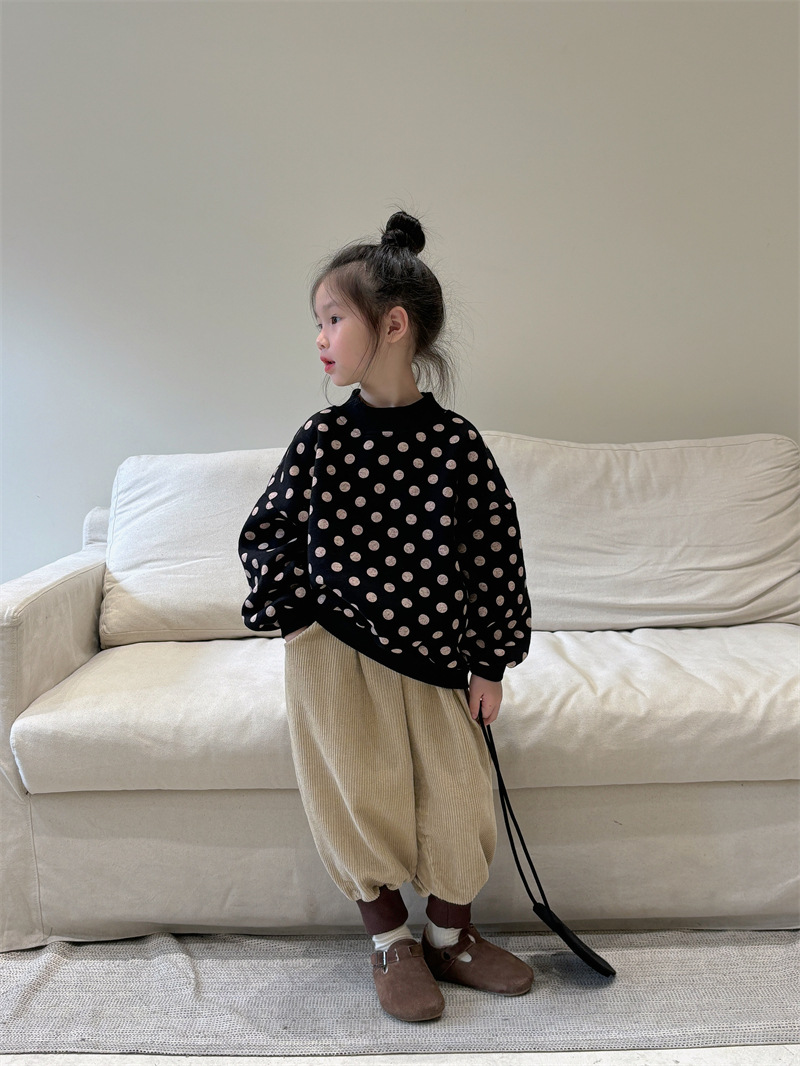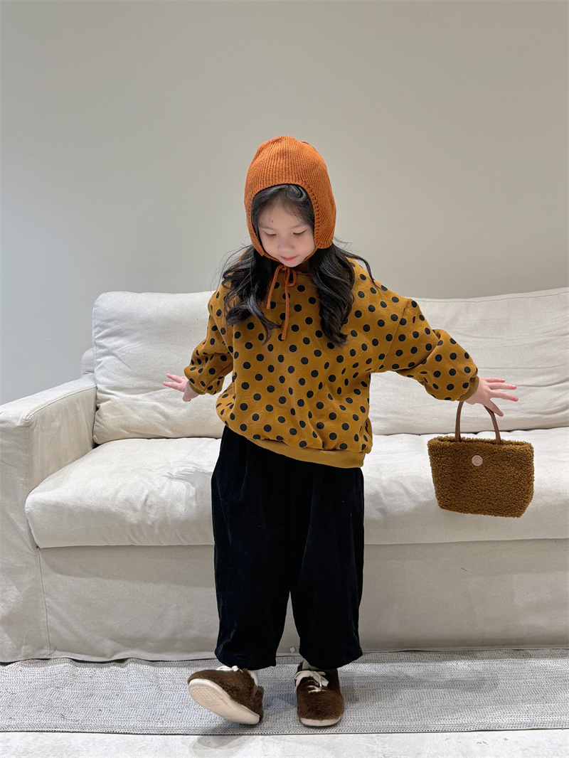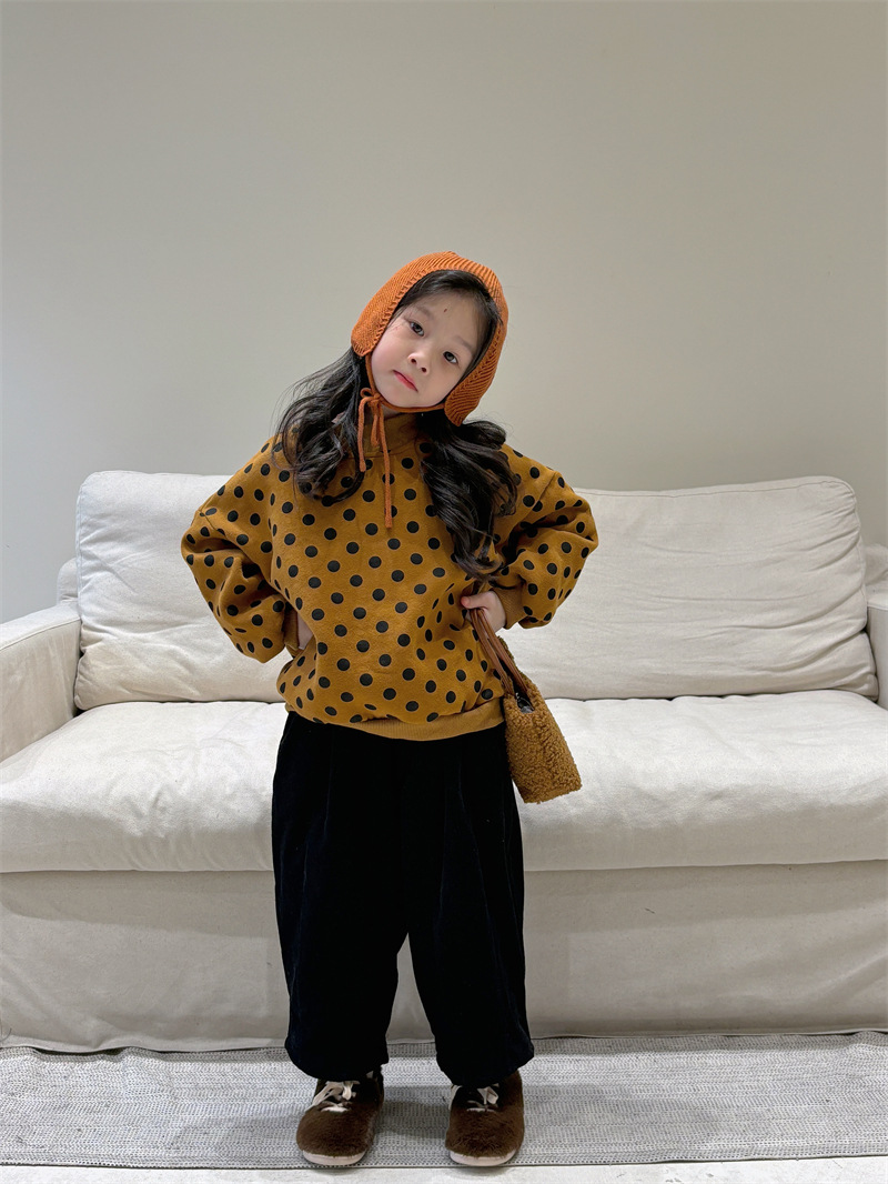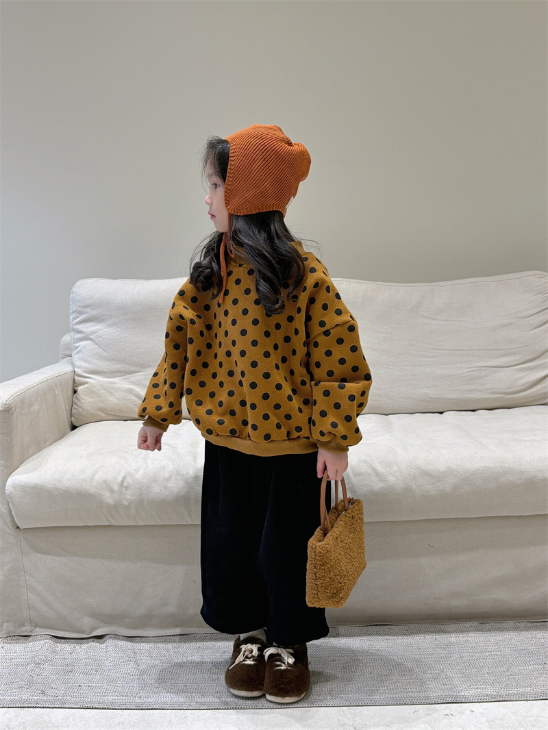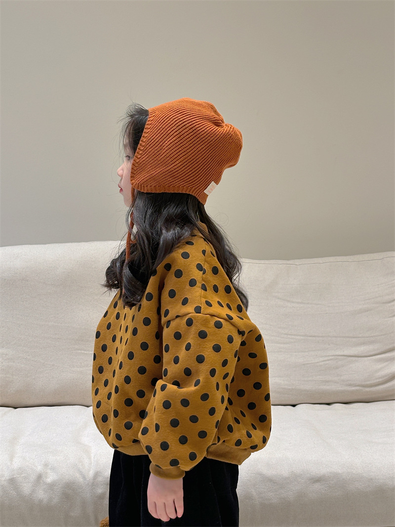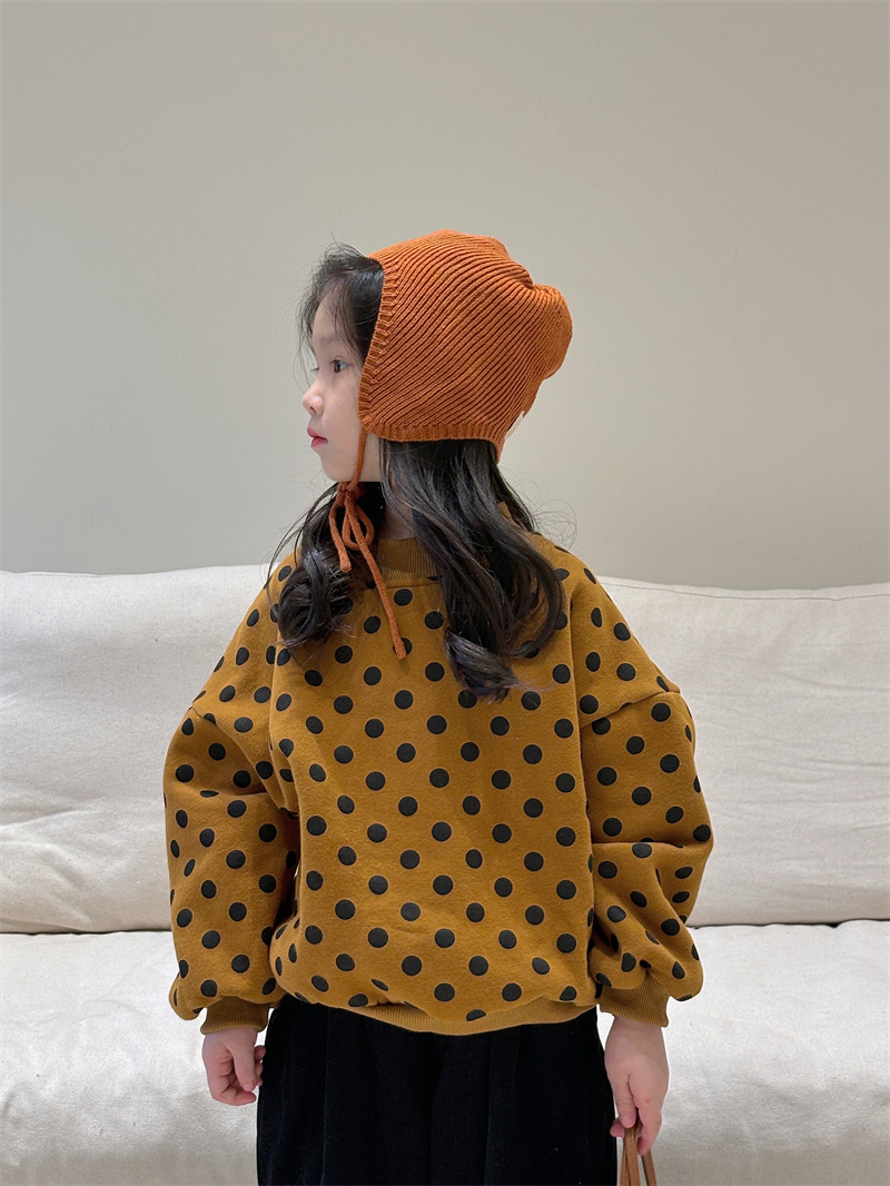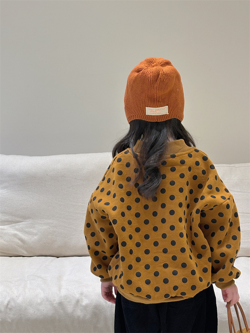 소년과 소녀를위한 아동복 기모 웨이브 도트 프린트 스웨터 2023 겨울 새로운 어린이 두꺼운 따뜻한 탑 A452