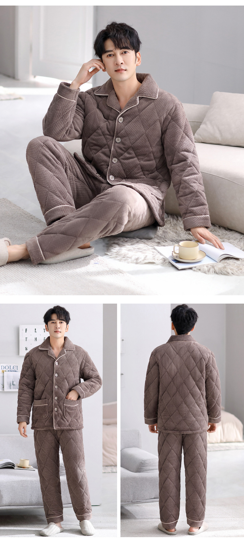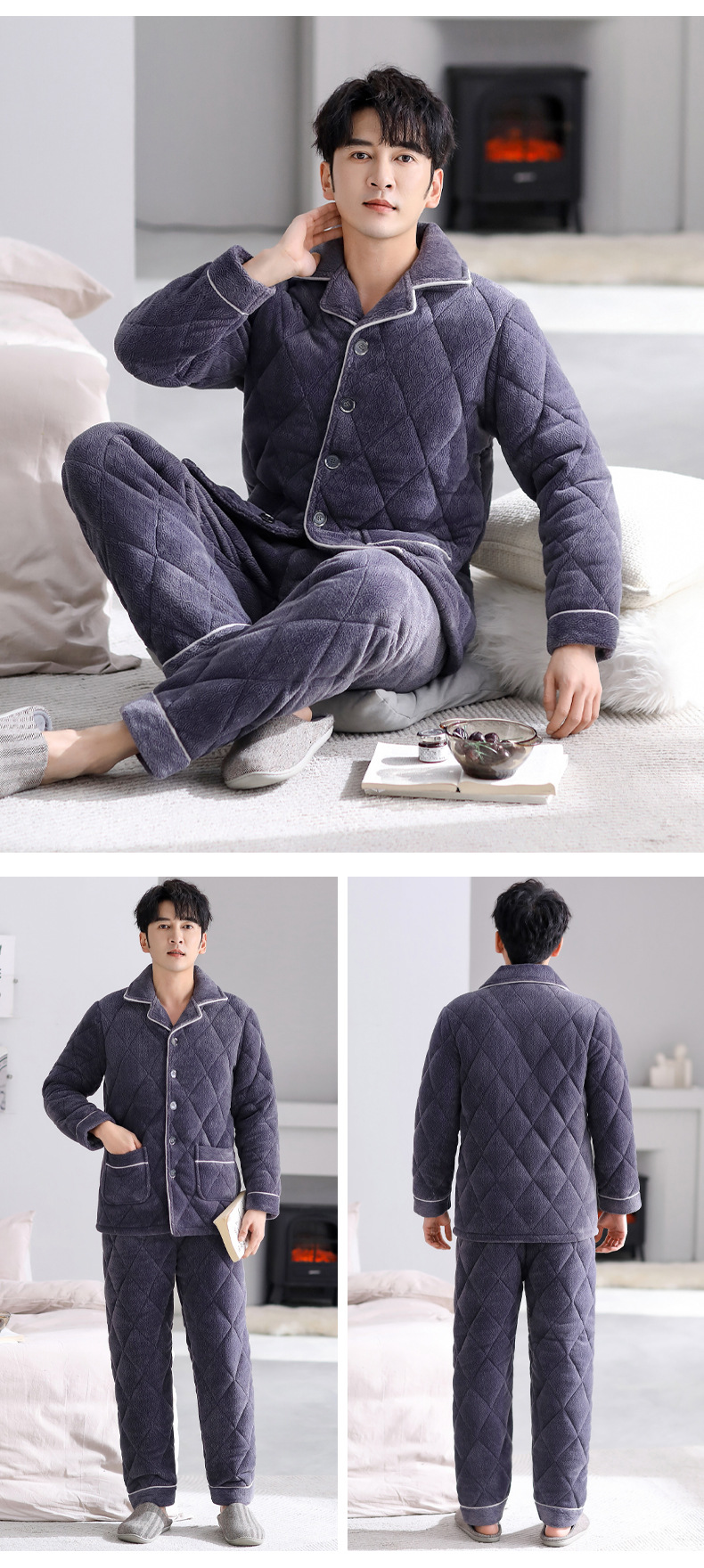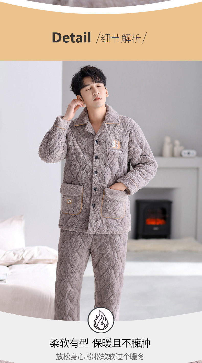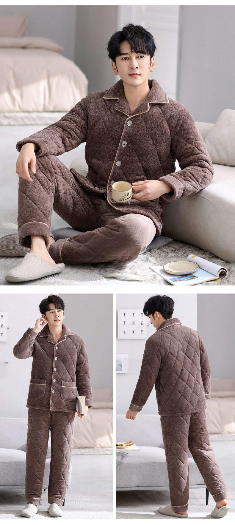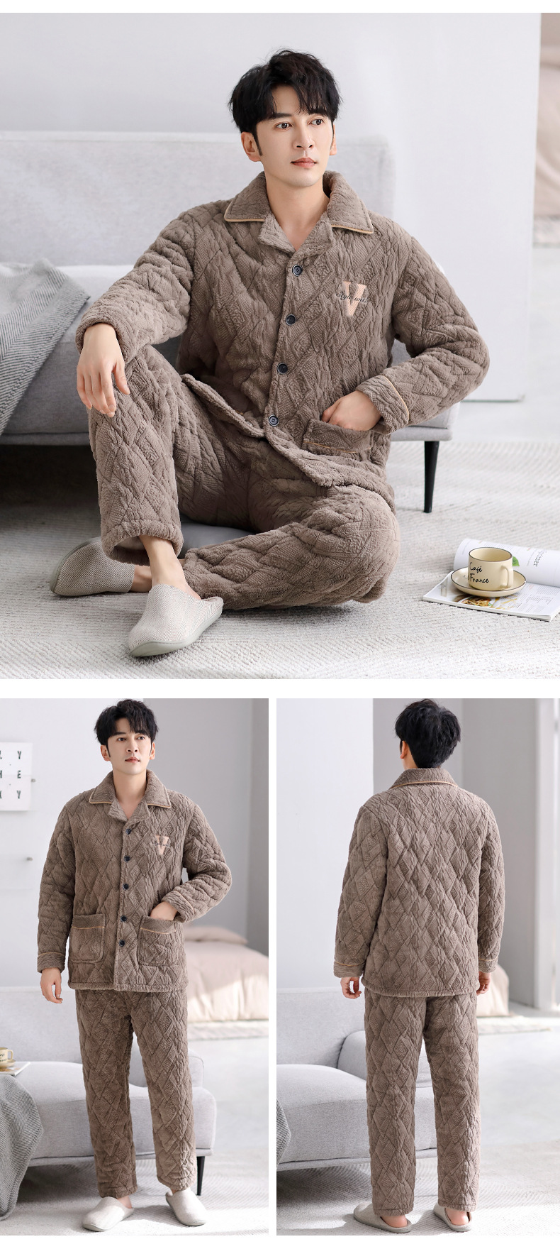 Mulong 귀족 가족 잠옷 남자의 겨울 산호 양털 3 층 두꺼운 기모 면 패딩 재킷 플란넬 가정 의류 가을과 겨울