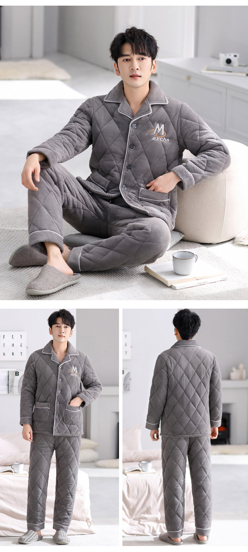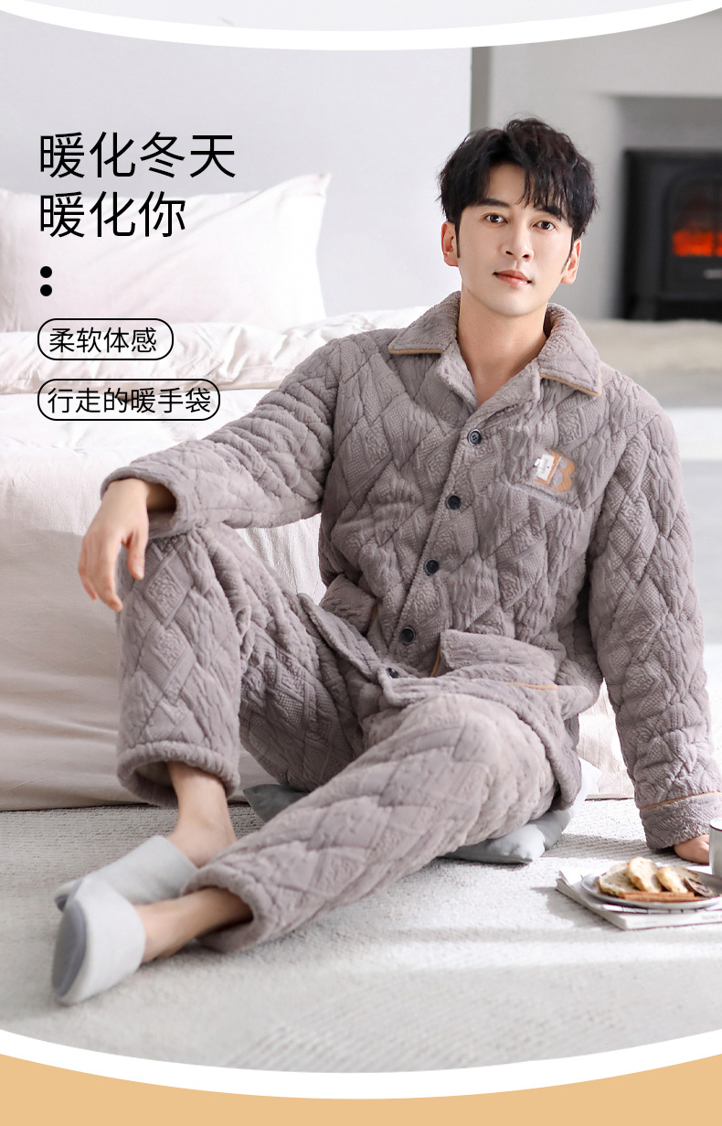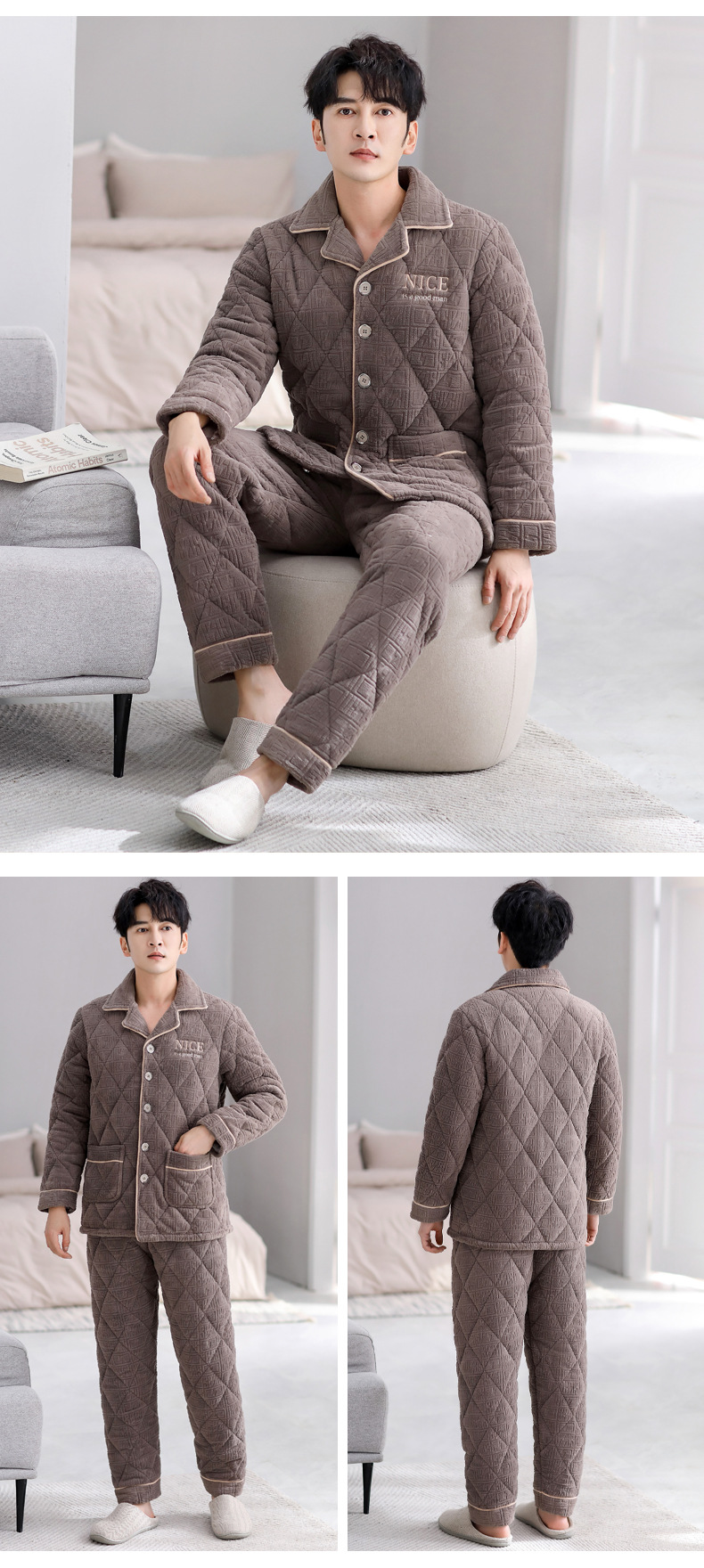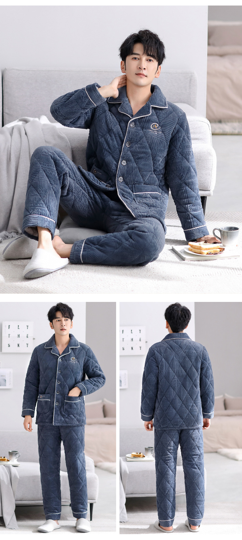 Mulong 귀족 가족 잠옷 남자의 겨울 산호 양털 3 층 두꺼운 기모 면 패딩 재킷 플란넬 가정 의류 가을과 겨울