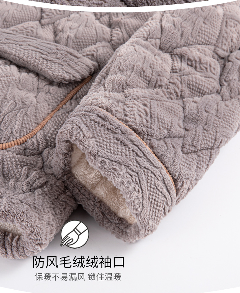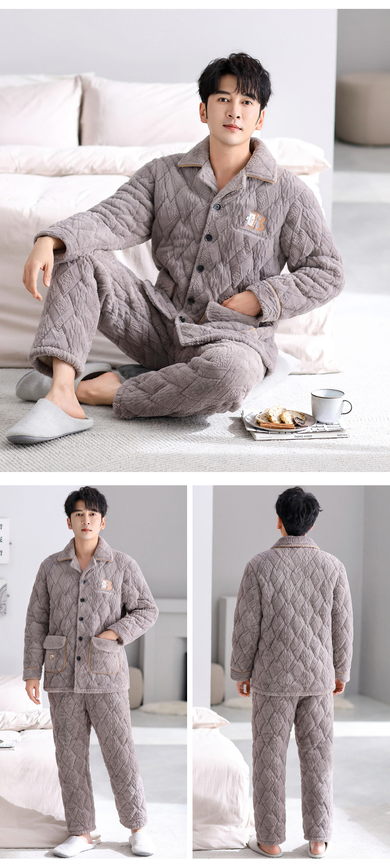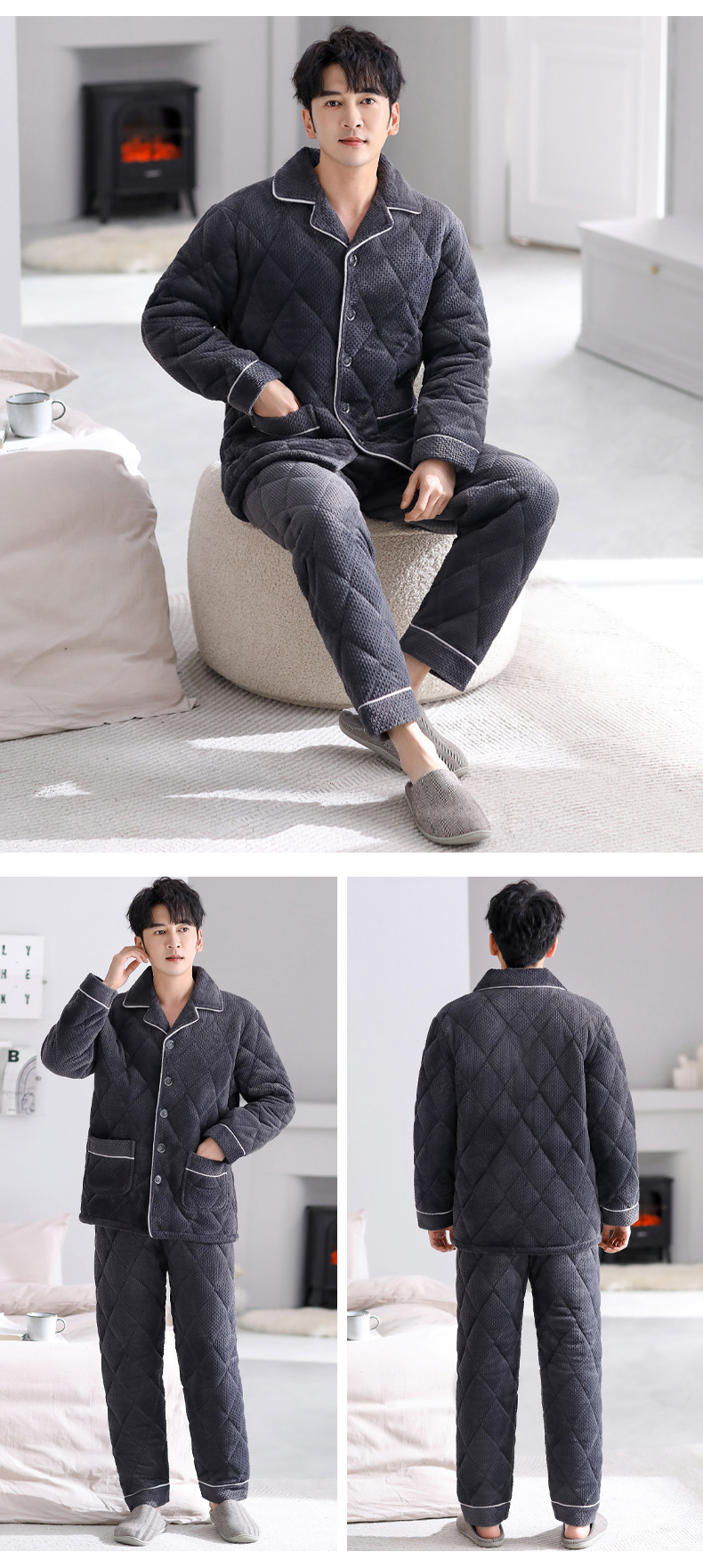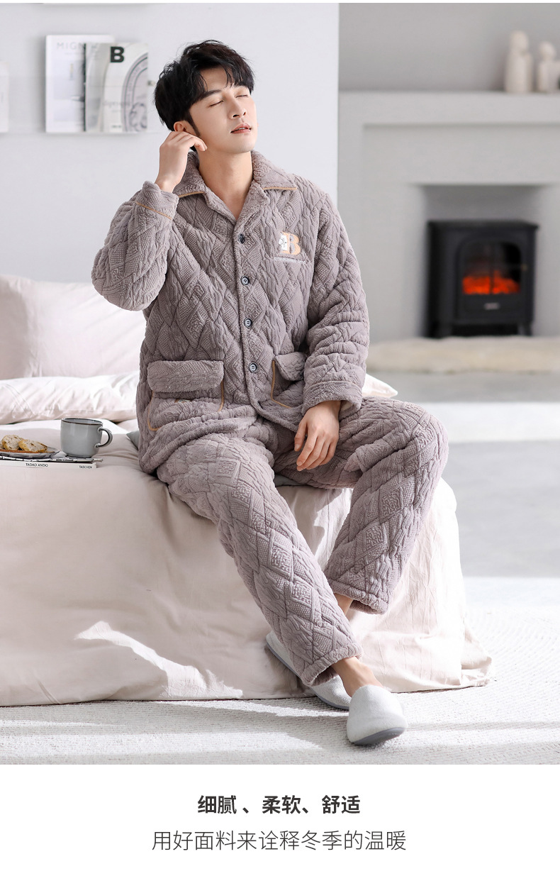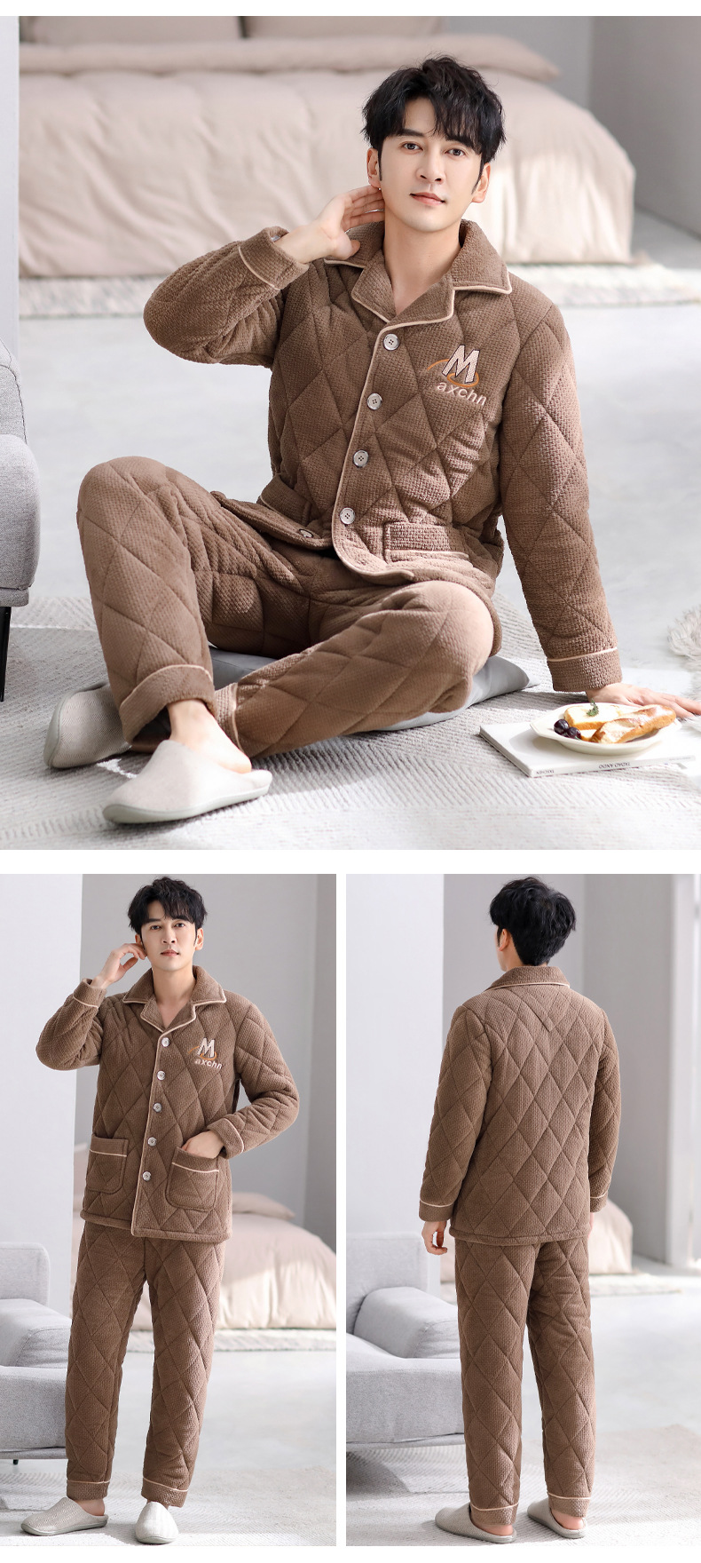 Mulong 귀족 가족 잠옷 남자의 겨울 산호 양털 3 층 두꺼운 기모 면 패딩 재킷 플란넬 가정 의류 가을과 겨울