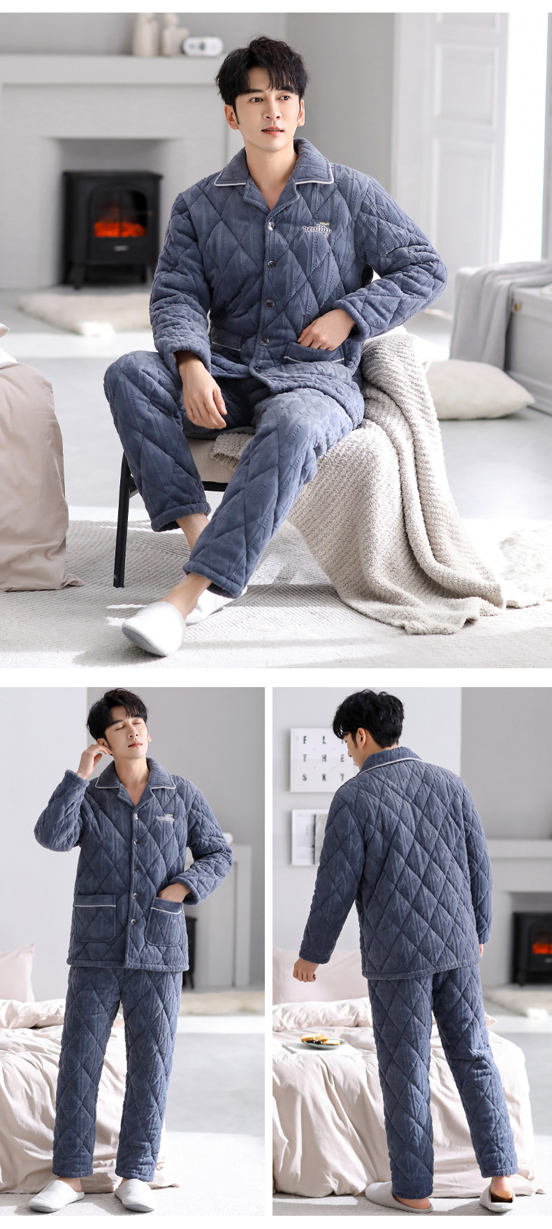 Mulong 귀족 가족 잠옷 남자의 겨울 산호 양털 3 층 두꺼운 기모 면 패딩 재킷 플란넬 가정 의류 가을과 겨울스토어 가기