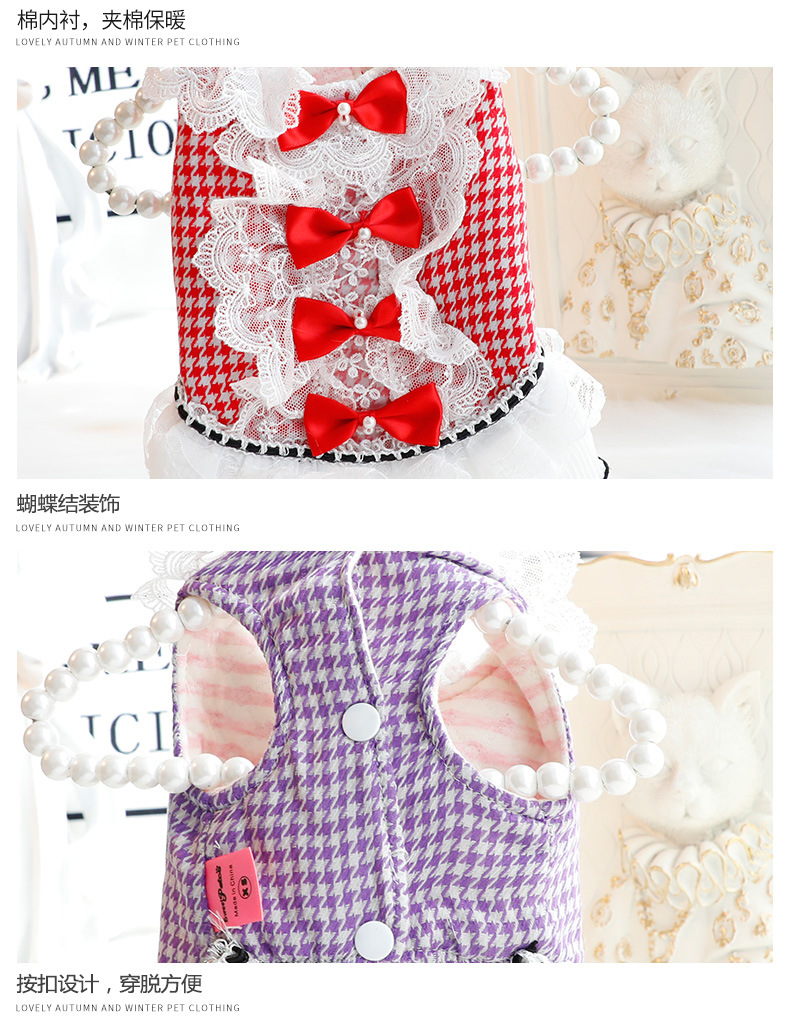 개 옷 가을과 겨울 옷 두꺼운 고양이 공주 원피스 찬디 버드 스타일 향기로운 스타일 겨울 원피스 작은 개 테디 애완 동물 5457