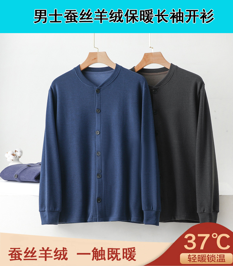 남자의 캐시미어 따뜻한 옷 가을과 겨울 비즈니스 겨울 옷 내부 착용 겉옷 긴 소매 카디건 코트 기모 두꺼운 탑