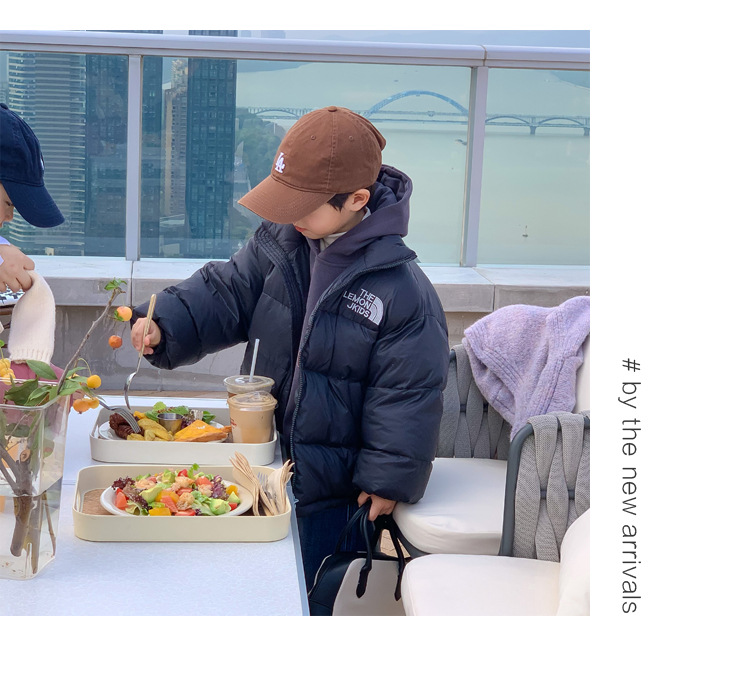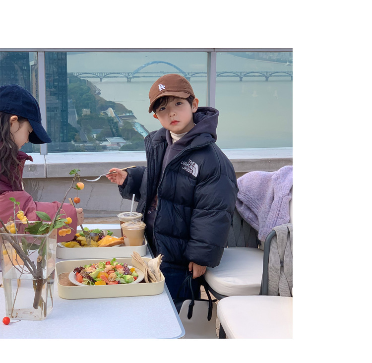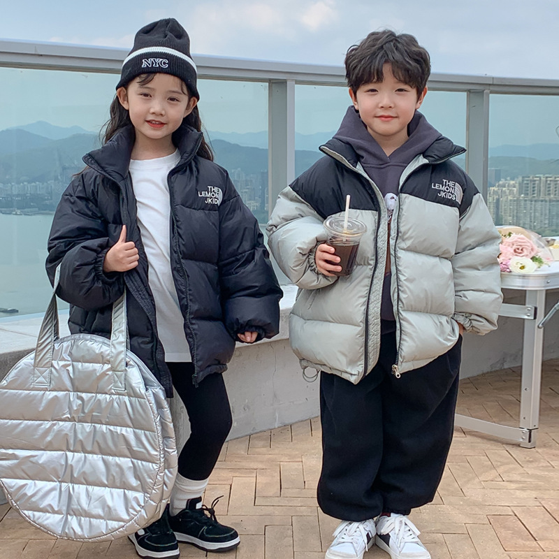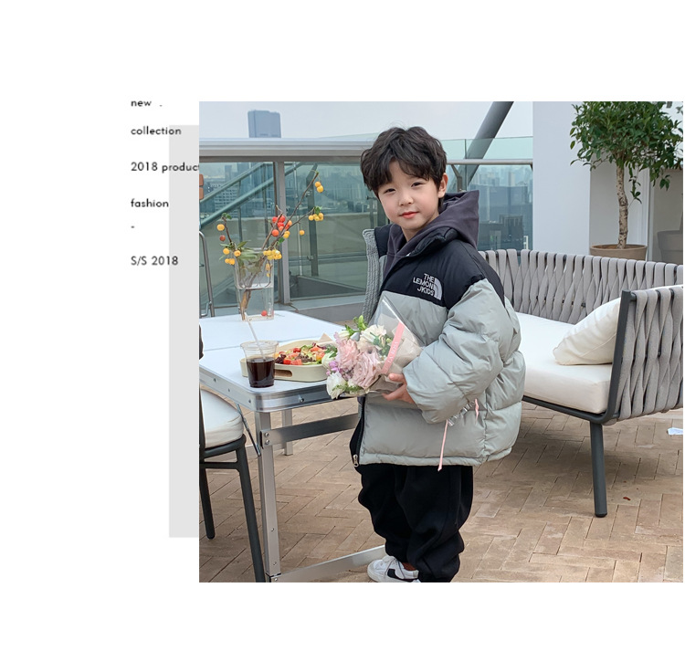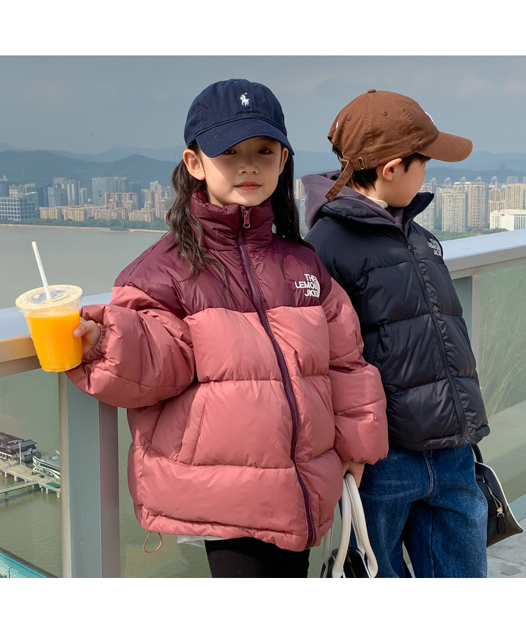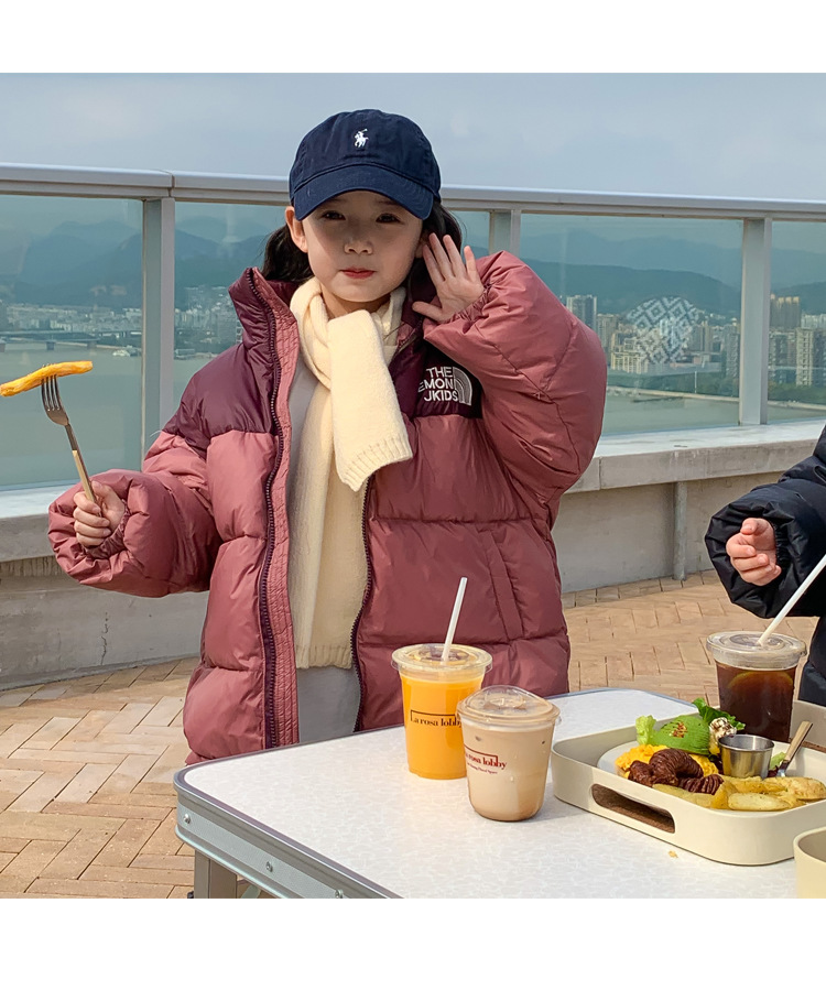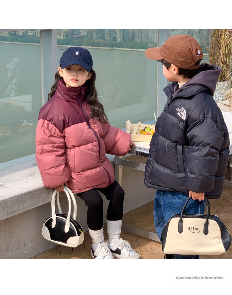 어린이 다운 재킷 2023 겨울 새로운 소년 소녀 서양 스타일 한국어 컬러 블록 화이트 덕 다운 따뜻한 재킷 트렌디스토어 가기
