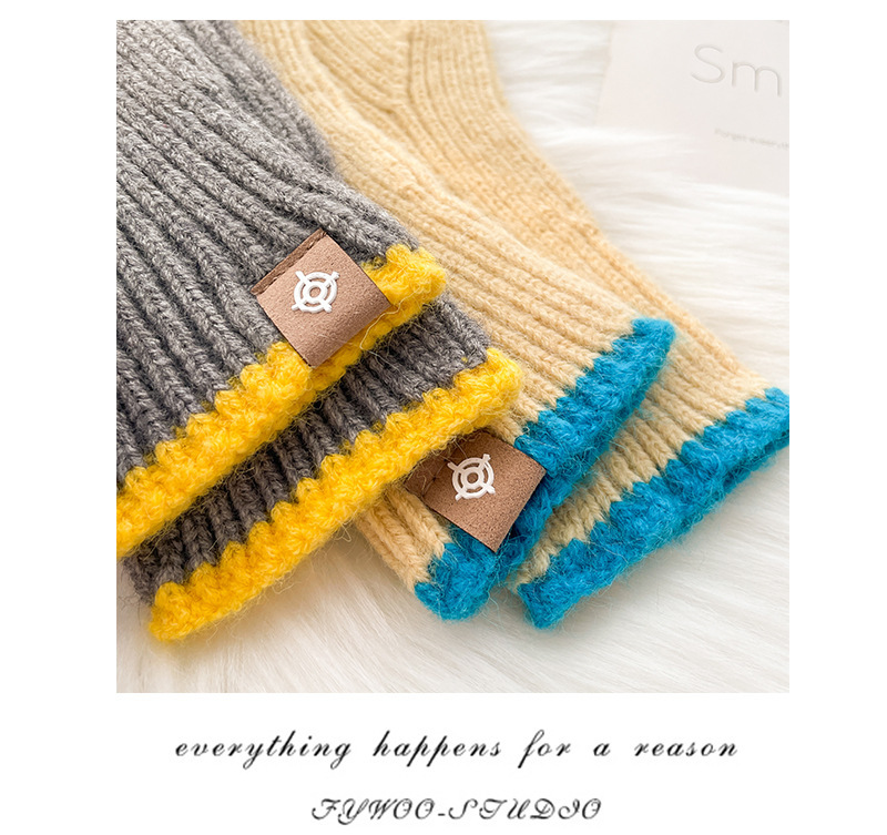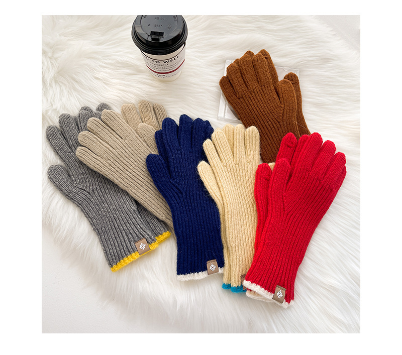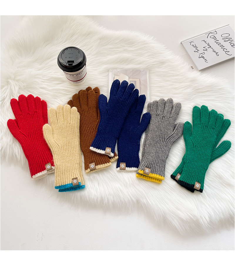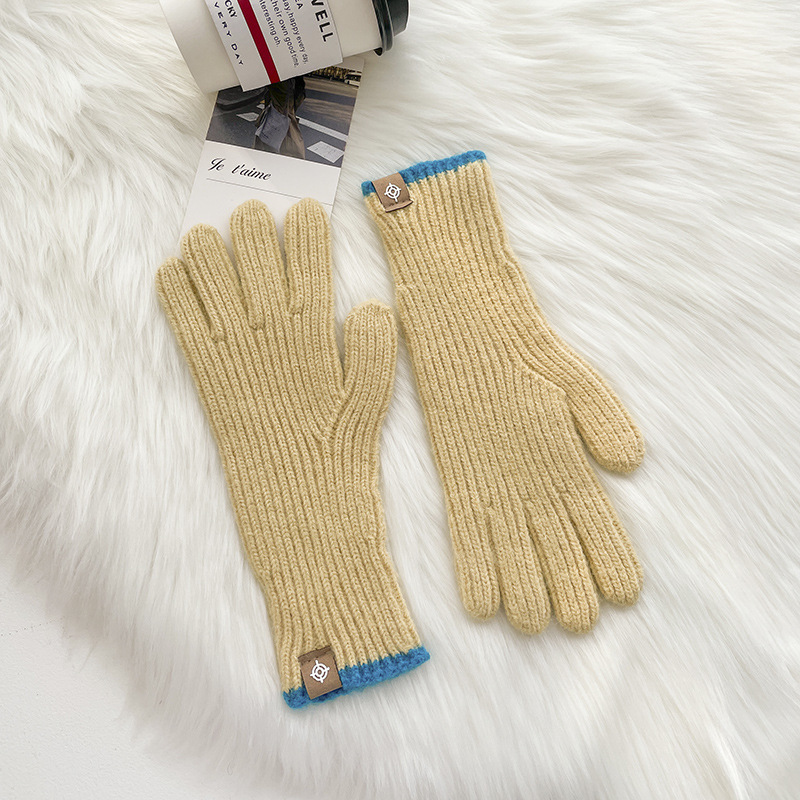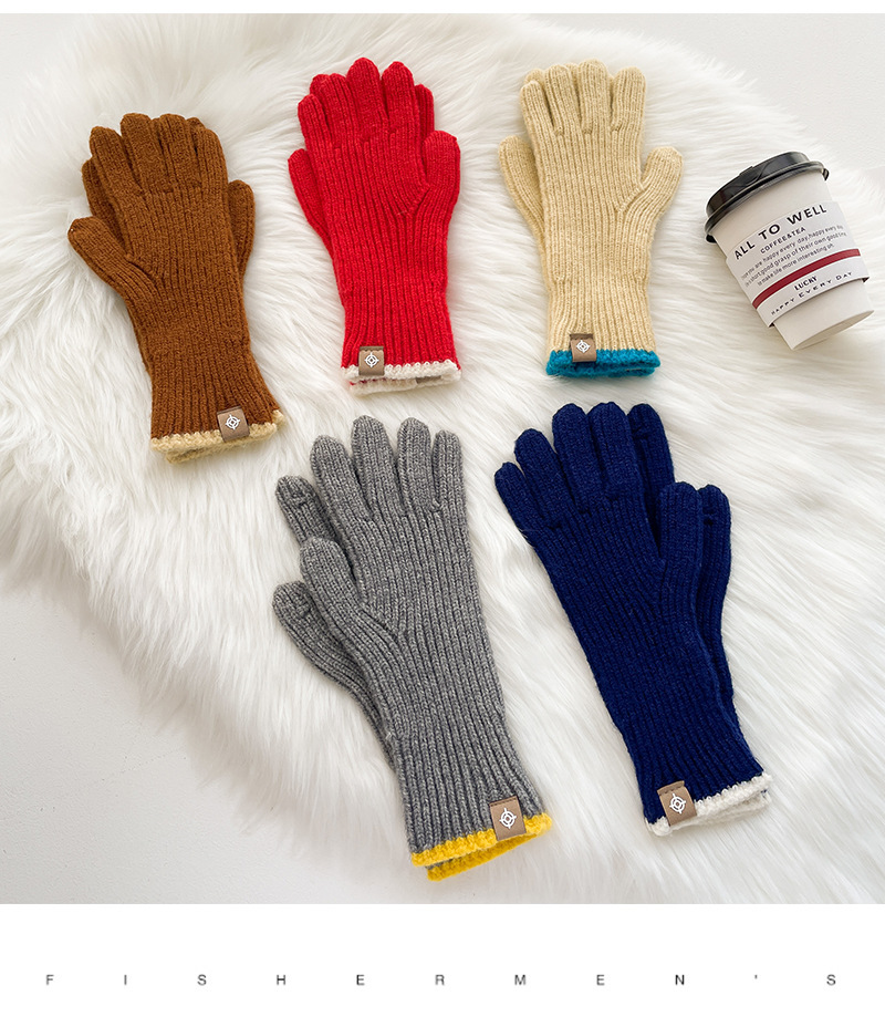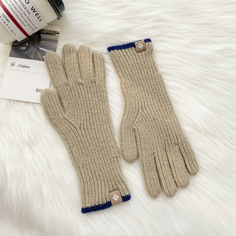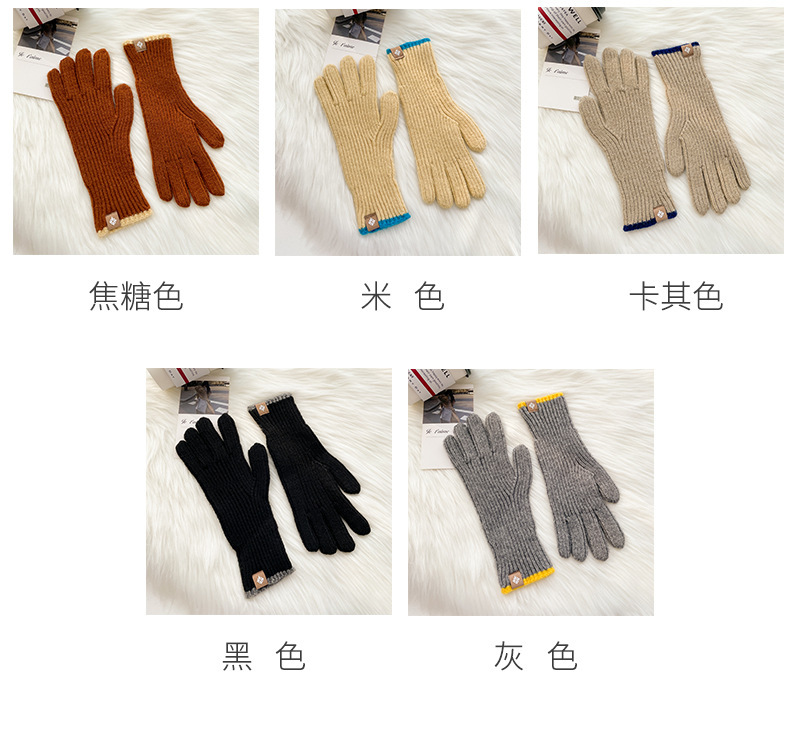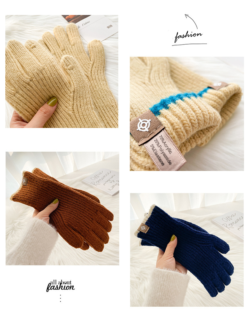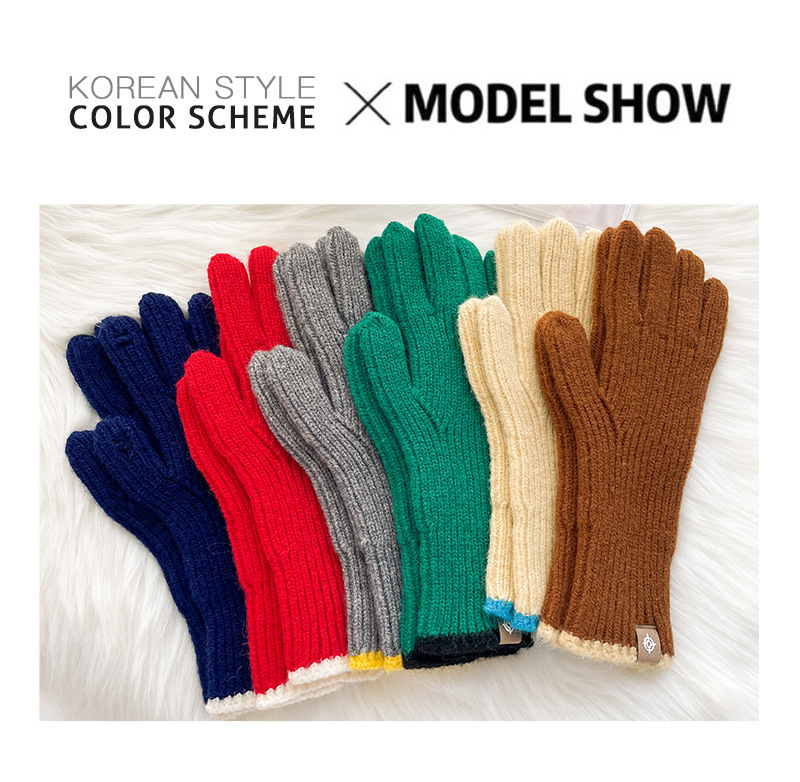 스티칭 스트라이프 울 니트 단색 장갑 가을과 겨울 따뜻한 라이딩을 수집 한 후 손가락 노출 손가락 터치 스크린 라벨스토어 가기