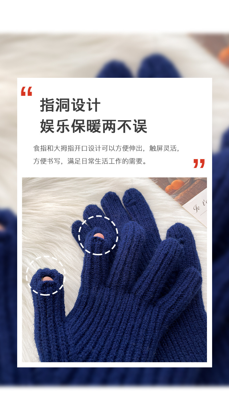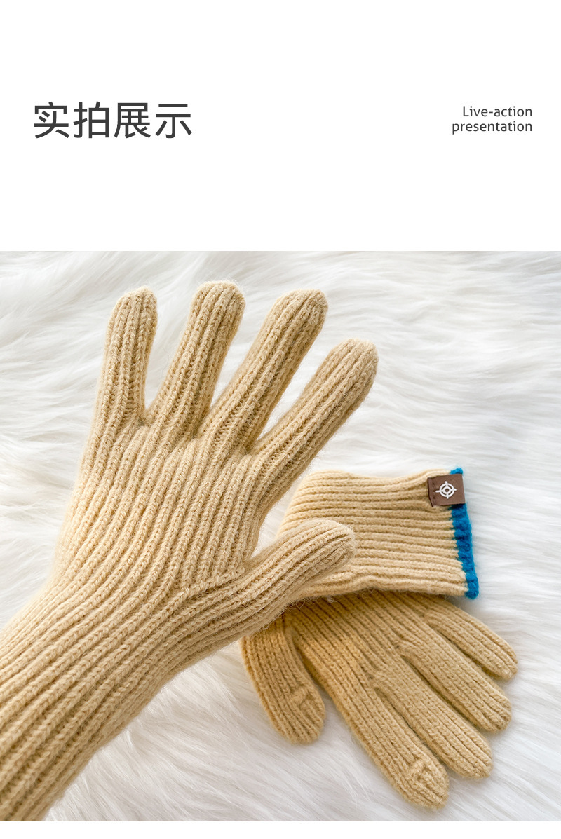 스티칭 스트라이프 울 니트 단색 장갑 가을과 겨울 따뜻한 라이딩을 수집 한 후 손가락 노출 손가락 터치 스크린 라벨