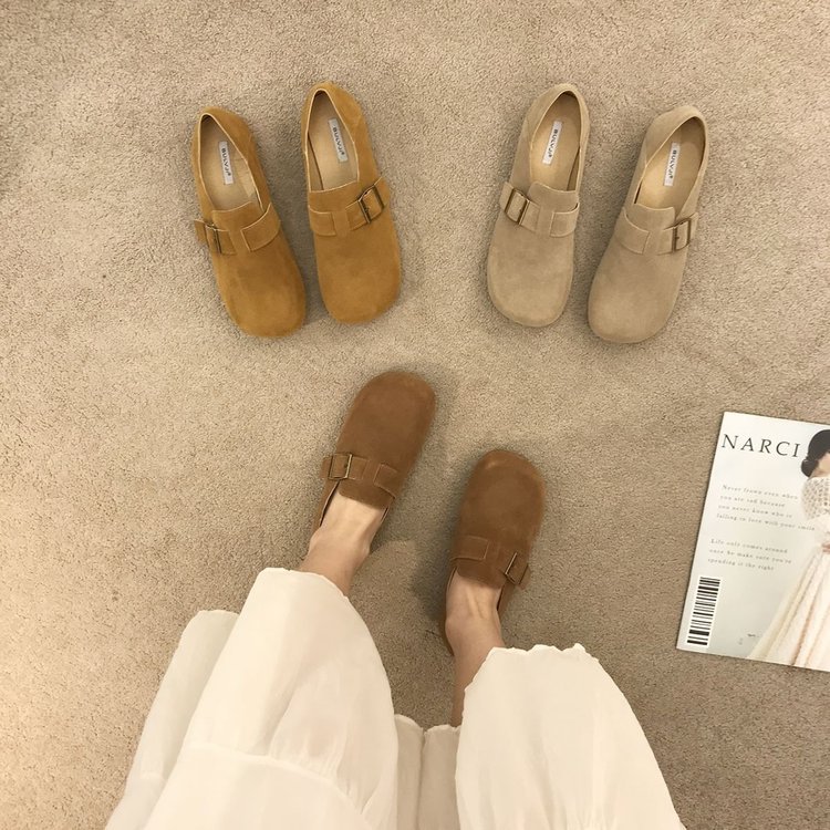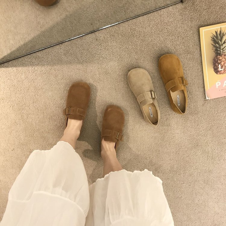 산시 같은 스타일 Birkan 신발 여성의 기모 부드러운 밑창 단일 레이어 신발 2023 가을 새로운 한 단계 Birkan 할머니 빈 신발