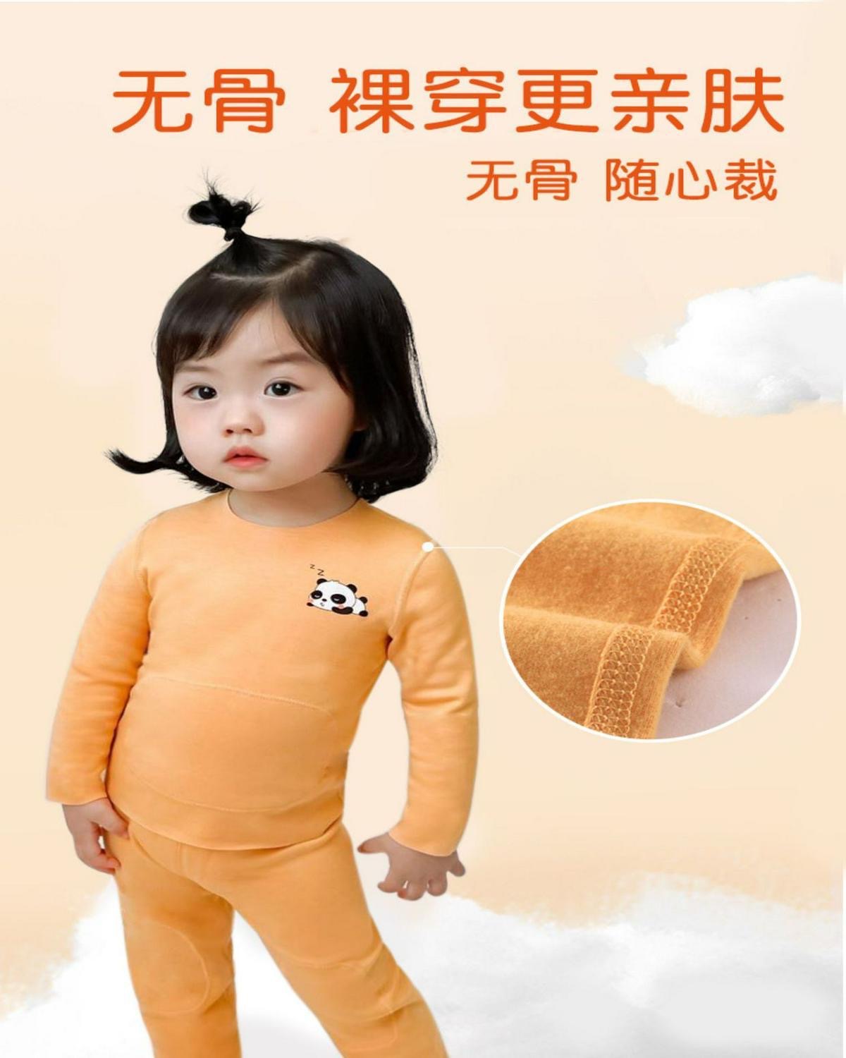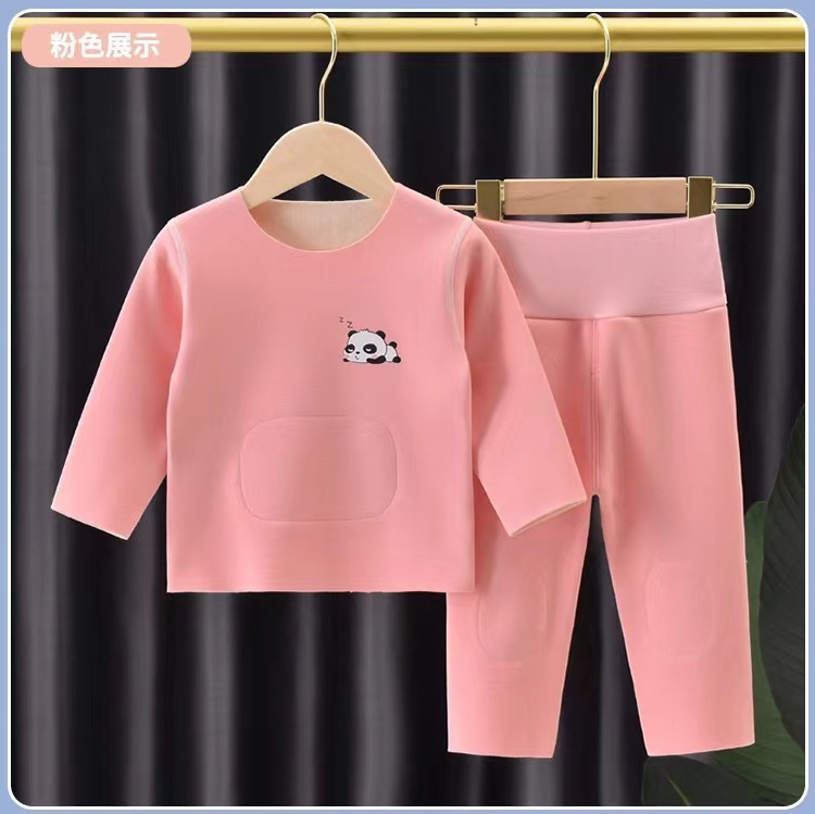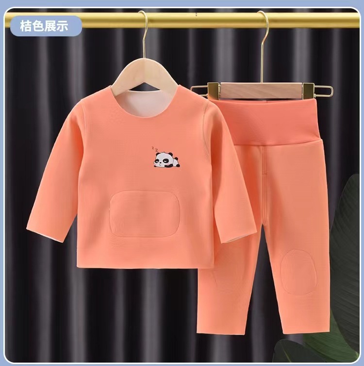 DeRong 아기 가을 옷 세트 아기 따뜻한 속옷 가을 옷 가을 남성 배꼽 보호 여성 플러스 벨벳 어린이 가을 옷과 가을 바지
