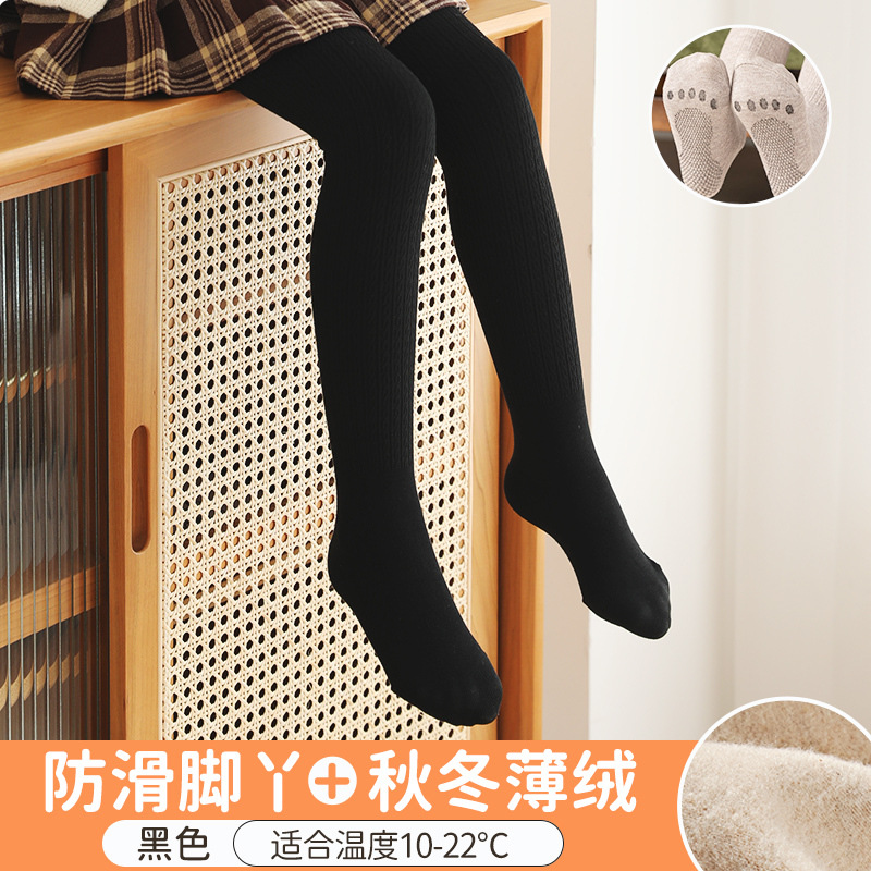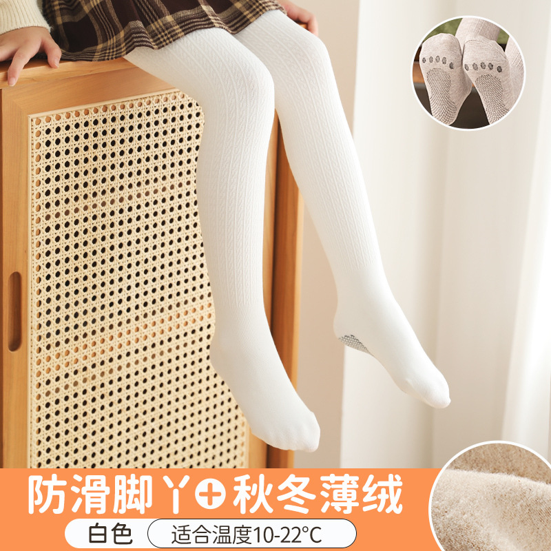 여아베이스 양말 봄과 가을 얇은 팬티 스타킹 아기 중간 두꺼운 얇은 벨벳 가을과 겨울 기모 흰색 어린이 댄스 양말