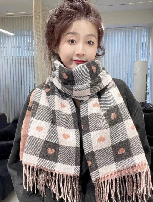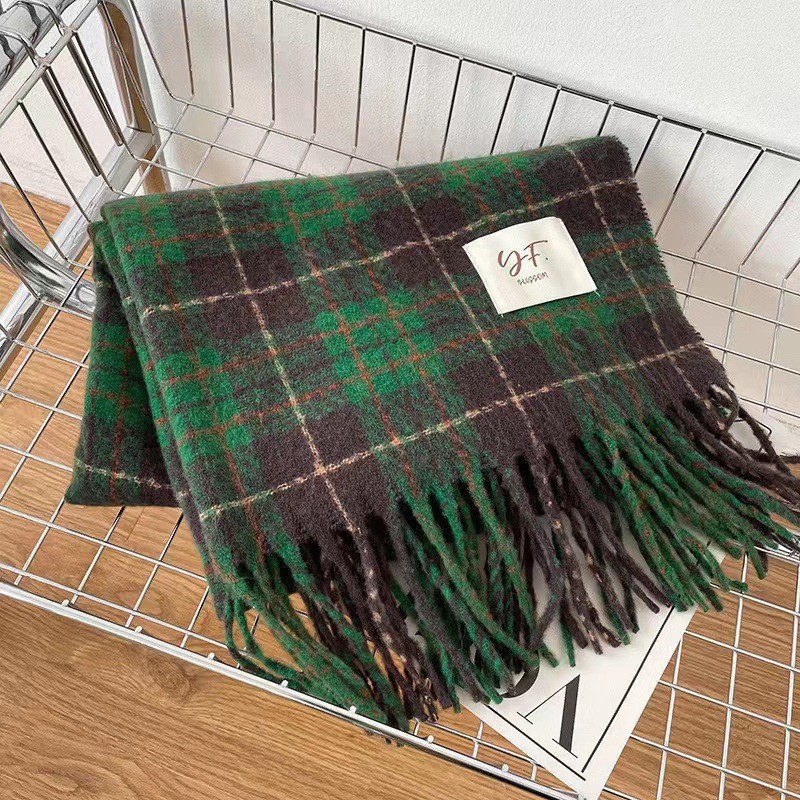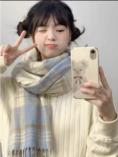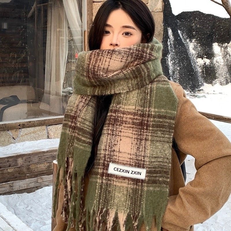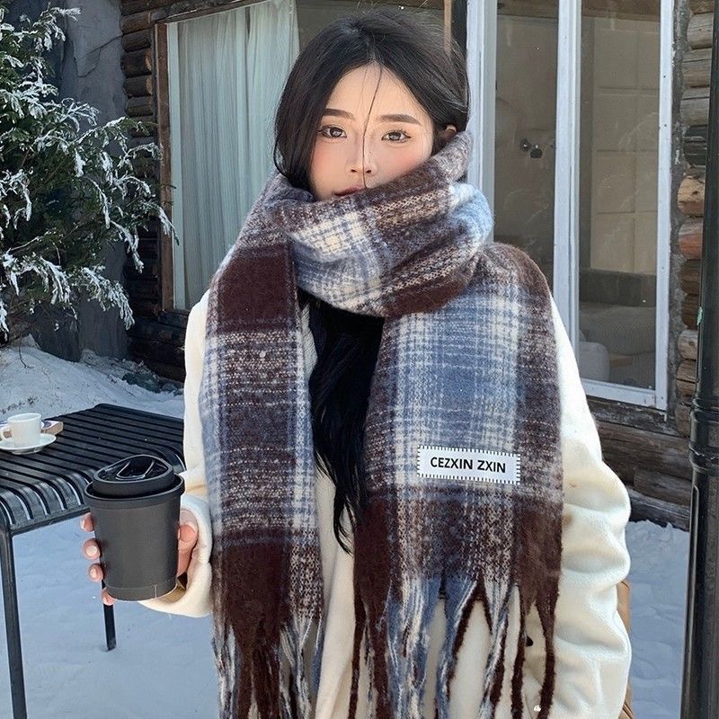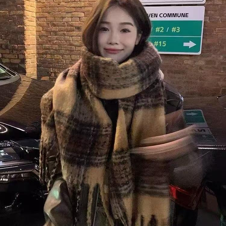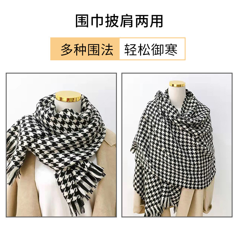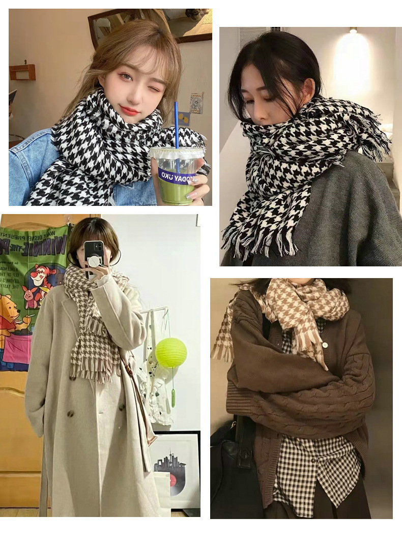 새로운 가을과 겨울 Houndstooth 스카프 여성용 한국식 두꺼운 따뜻한 모든 매치 격자 무늬 니트 술 스카프스토어 가기