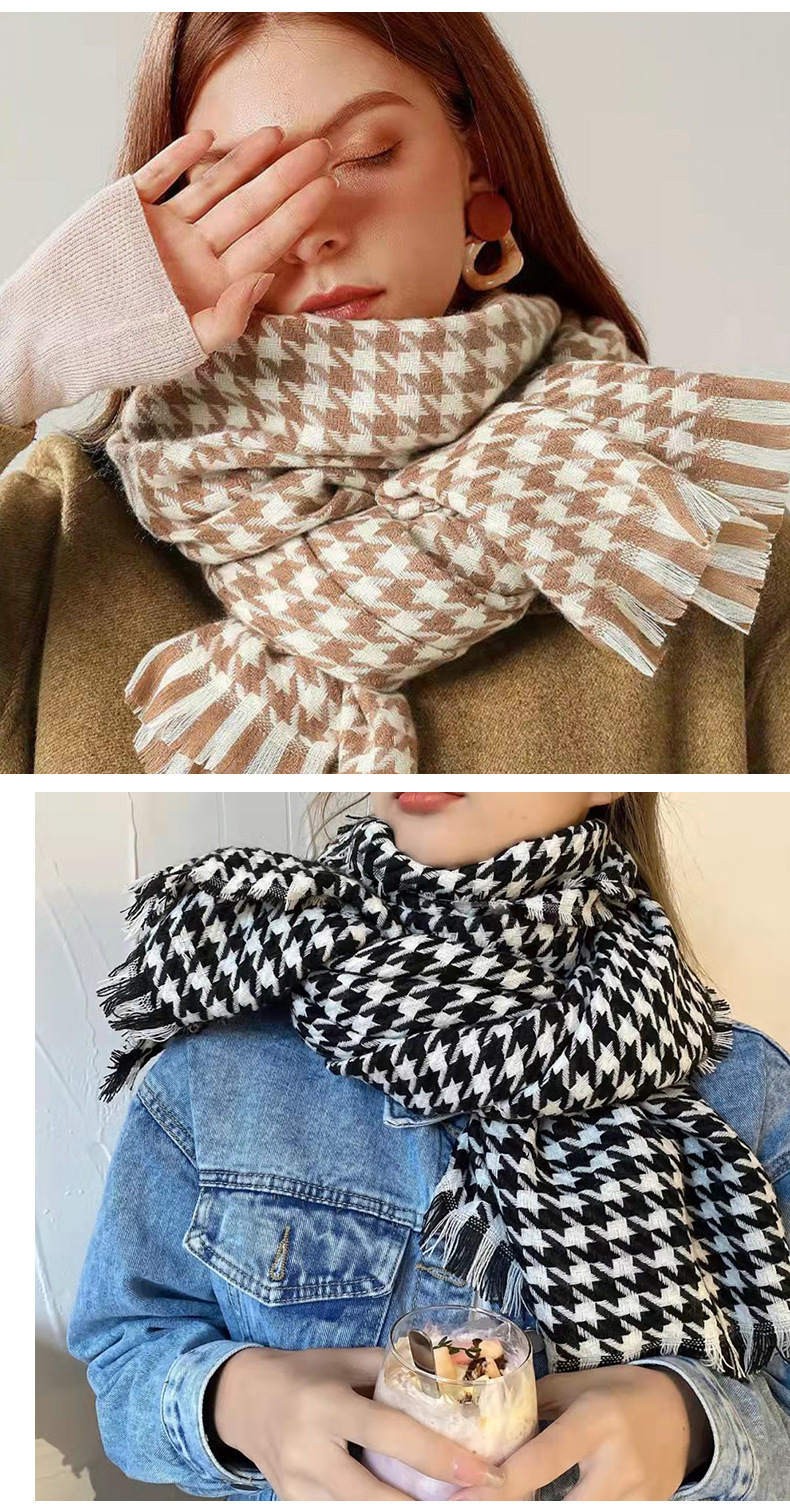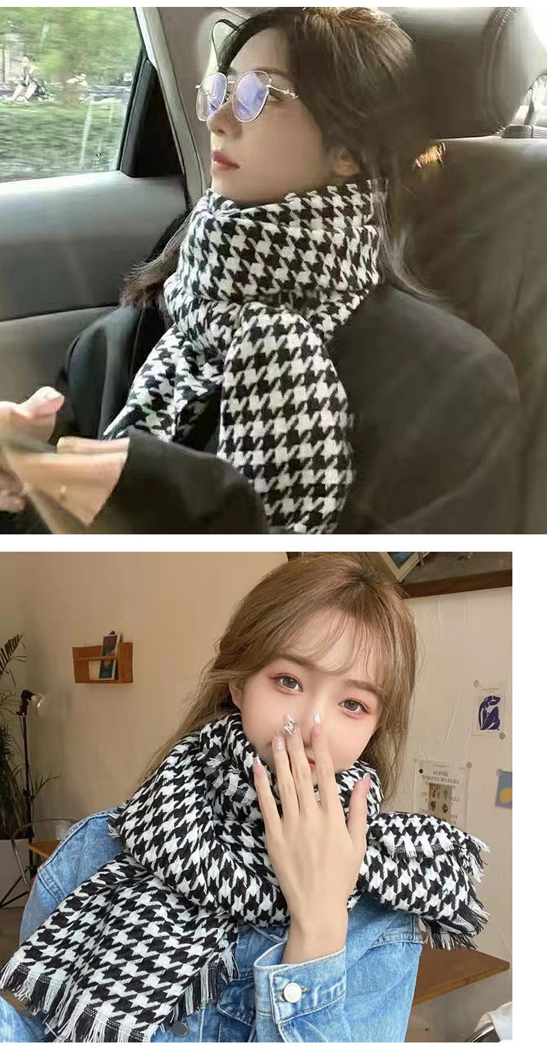 새로운 가을과 겨울 Houndstooth 스카프 여성용 한국식 두꺼운 따뜻한 모든 매치 격자 무늬 니트 술 스카프