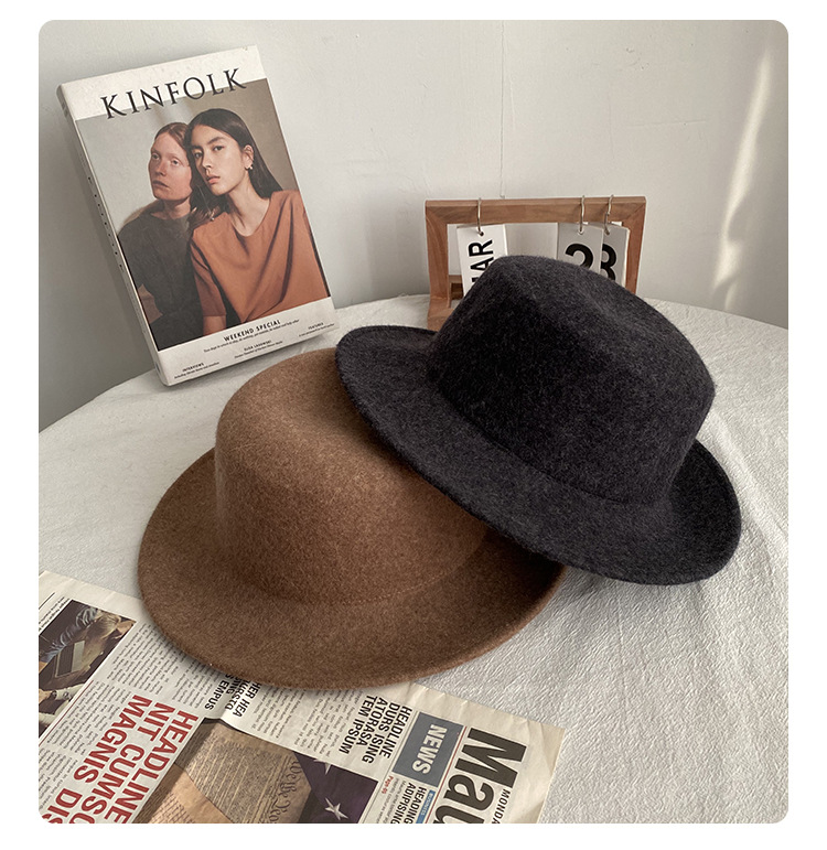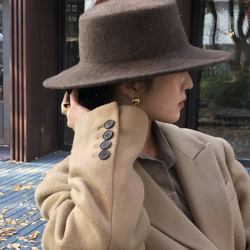 울 프렌치 탑 햇 여성의 가을과 겨울 2023 새로운 영국 사교계 플랫 모자 레트로 햅번 플랫 엣지 펠트 모자스토어 가기