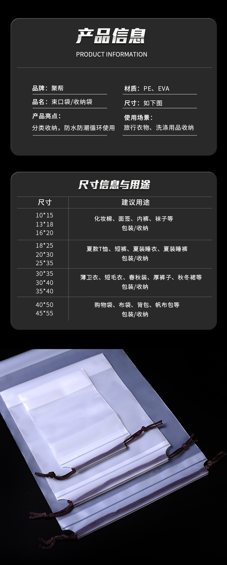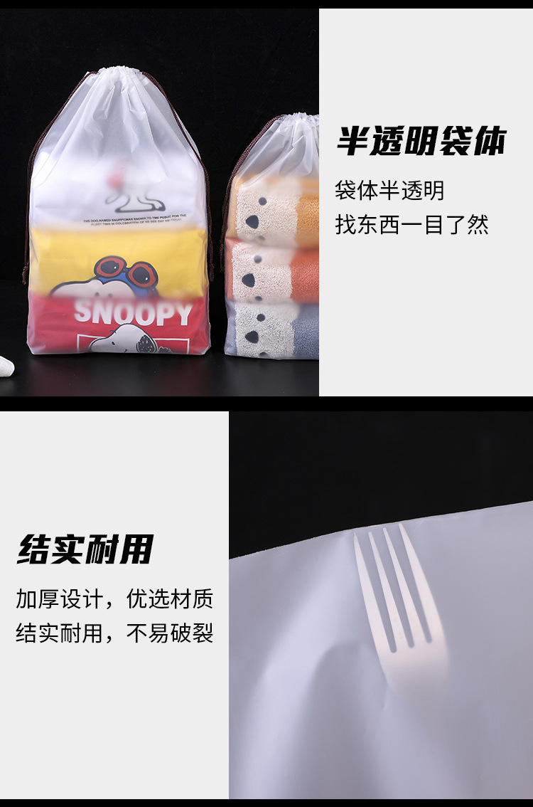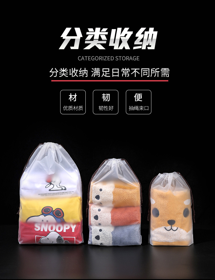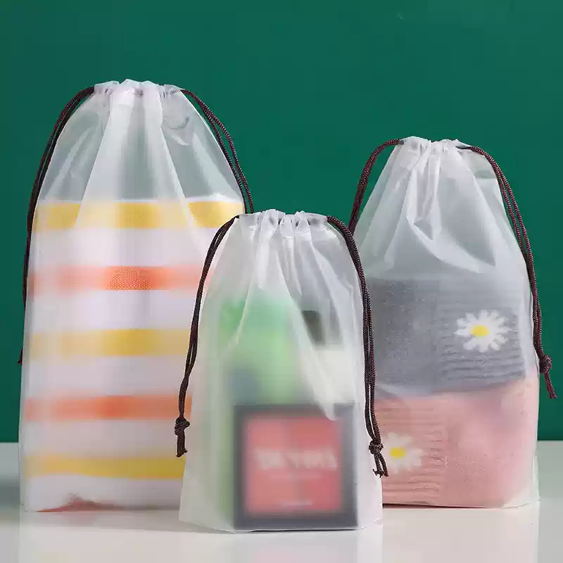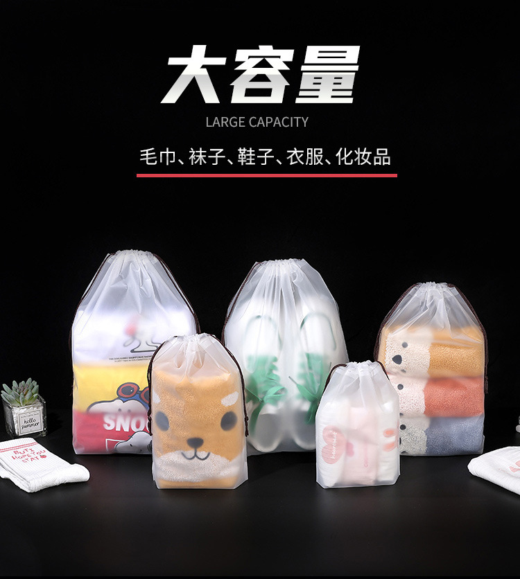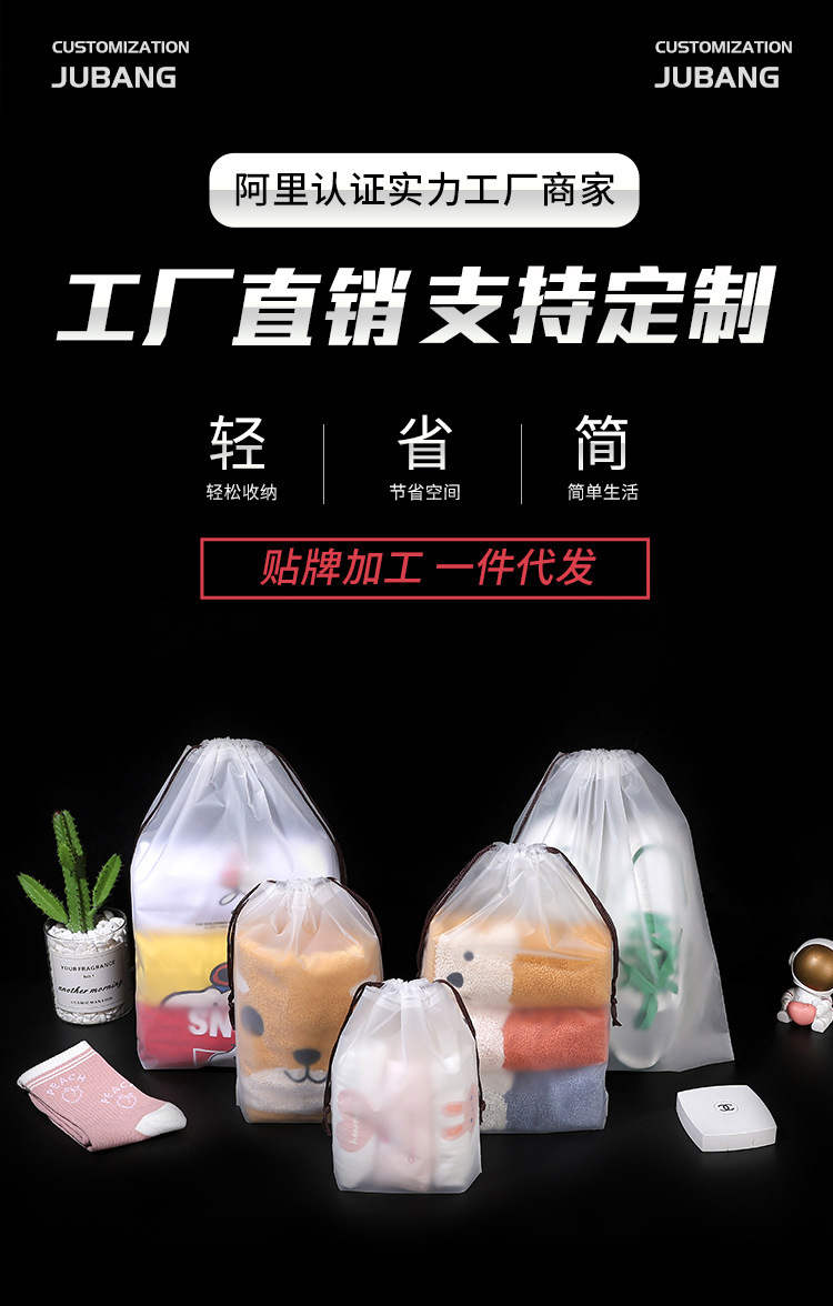 프로스트 번들 포켓 PE 어린이 착용 플라스틱 끈 양말 투명 이동 가방 옷 방진 여행 보관 가방
