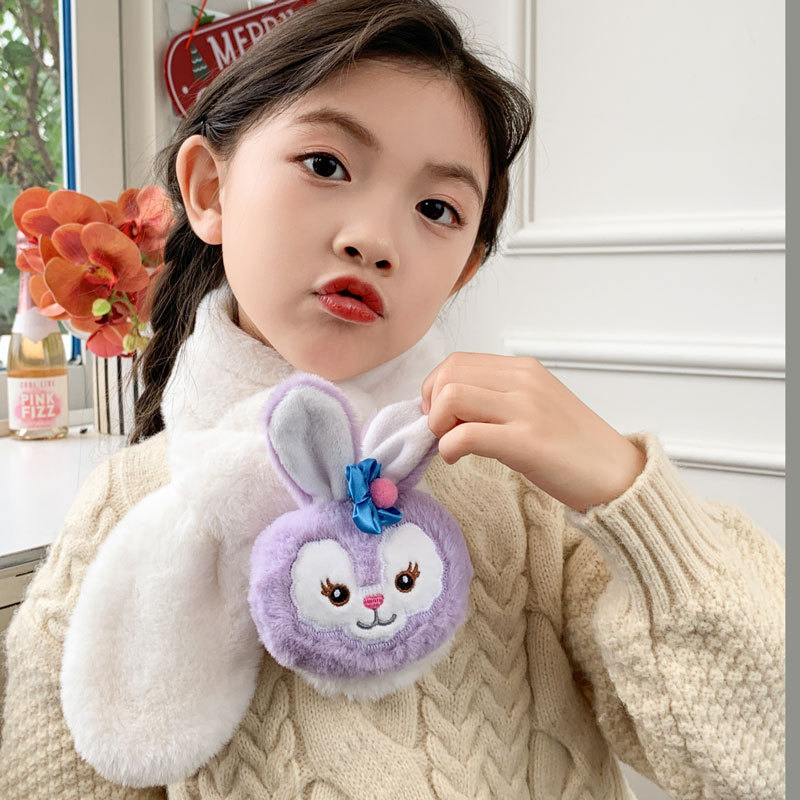 어린이 스카프 새로운 소년과 소녀 따뜻한 봉제 귀여운 학생 두꺼운 만화 스카프 모조 토끼 모피 아기 칼라