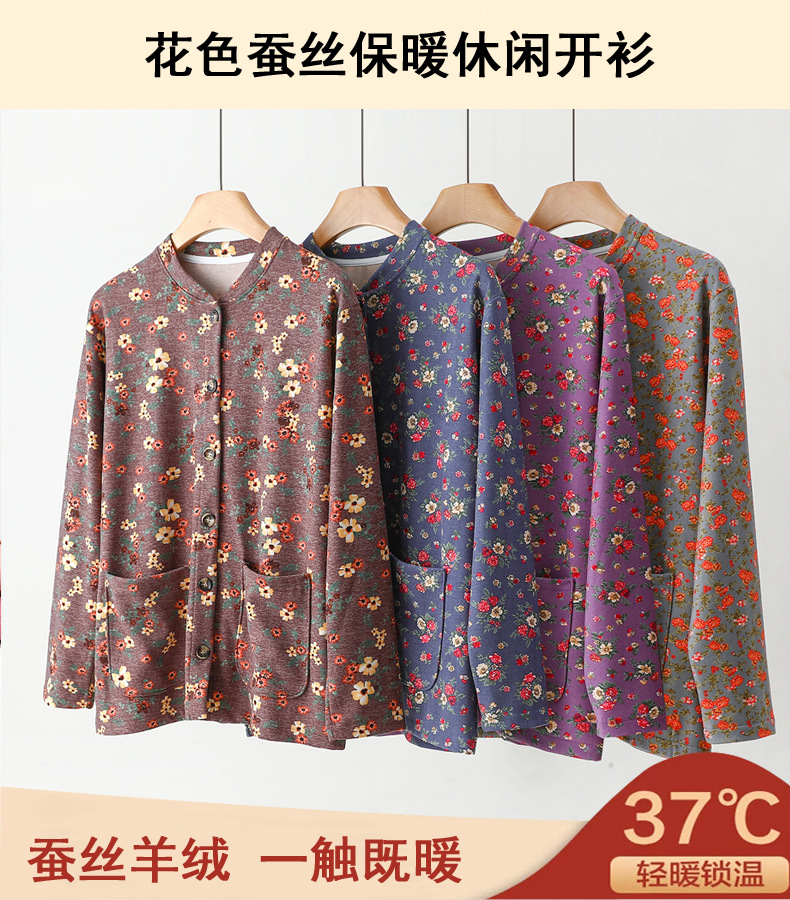 가을과 겨울 뉴 컬러 쇼트 코트 싱글 브레스트 웨스턴 스타일 플러스 사이즈 실크 캐시미어 탑 여성용 플로럴 긴팔 트렌디 가디건스토어 가기