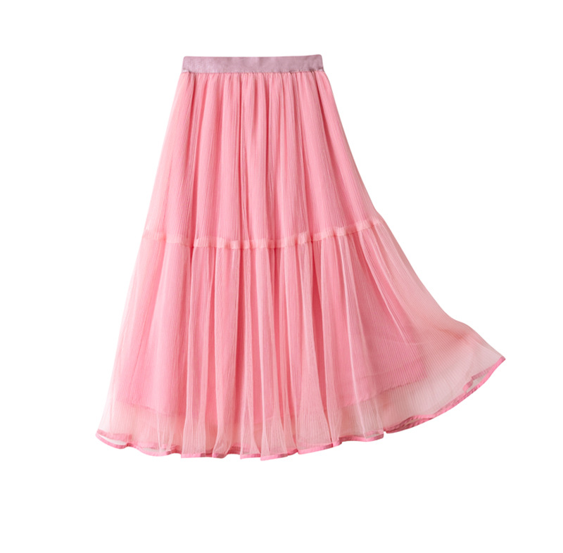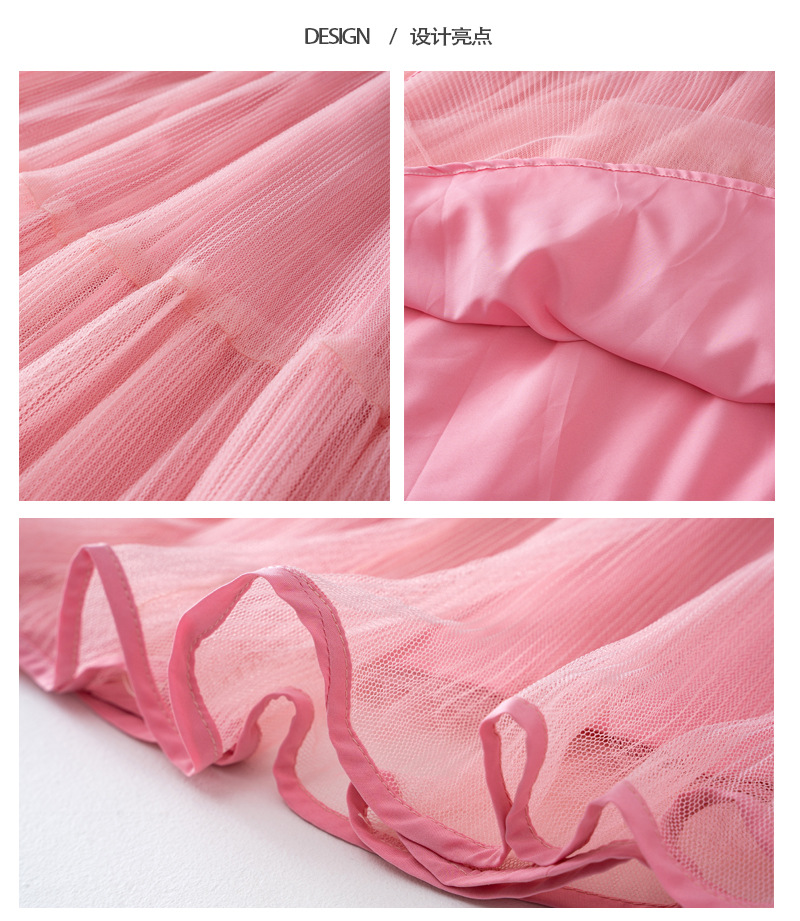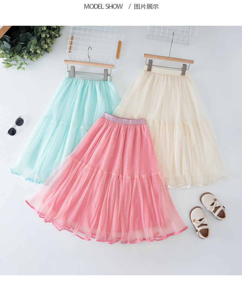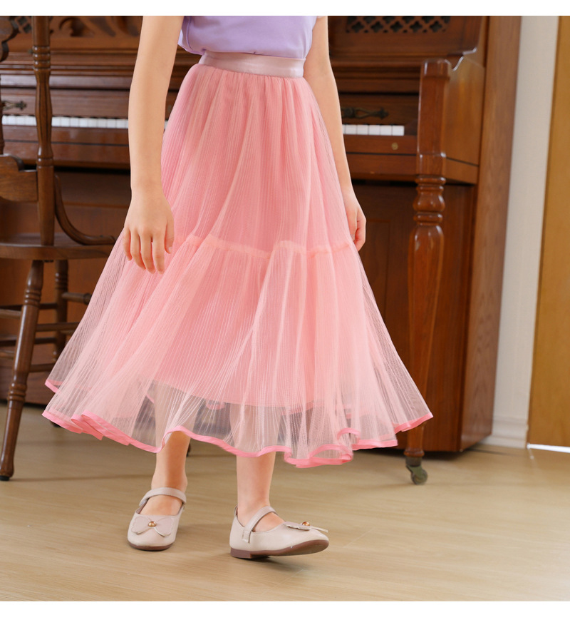 여아 스커트 2023 새로운 한국 스타일 봄과 가을 공주 스커트 큰 어린이 메쉬 모든 매치 달콤한 롱 스커트 큰 스커트